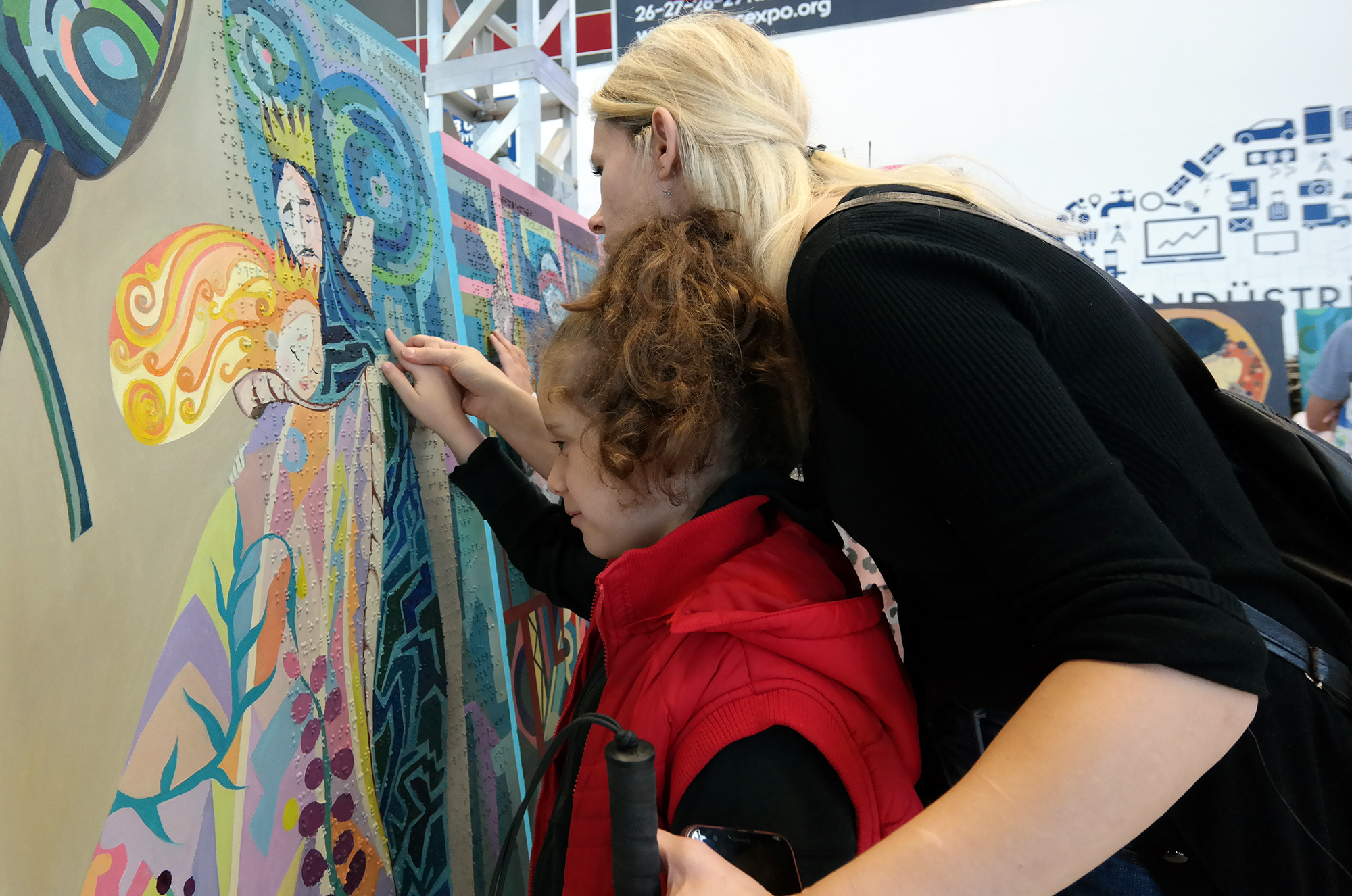 Eserlerini sergileyen Resim Öğretmeni Renziye İsmihan ve arkadaşı Özel Eğitim Öğretmenliği son sınıf öğrencisi Büşra Altun, Bursalıların sergiye gösterdiği ilgiden oldukça memnun. Resimlerini daha erişilebilir kılmak için böyle bir çalışmayı hayata geçirdiğini belirten Renziye İsmihan, “Yaptığım resimleri anlayamayan tek kitle görme engellilerdi. Ben de onlar için tuvale Braille alfabesi işledim. Bunu yardım amaçlı değil, tamamen onların hakkı olduğunu düşündüğüm için yaptım. Bu sayede onlar da resmi okuma imkanı buluyorlar. Resimdeki objenin duruşundan rengine her şey betimleme olarak yer alıyor” dedi.