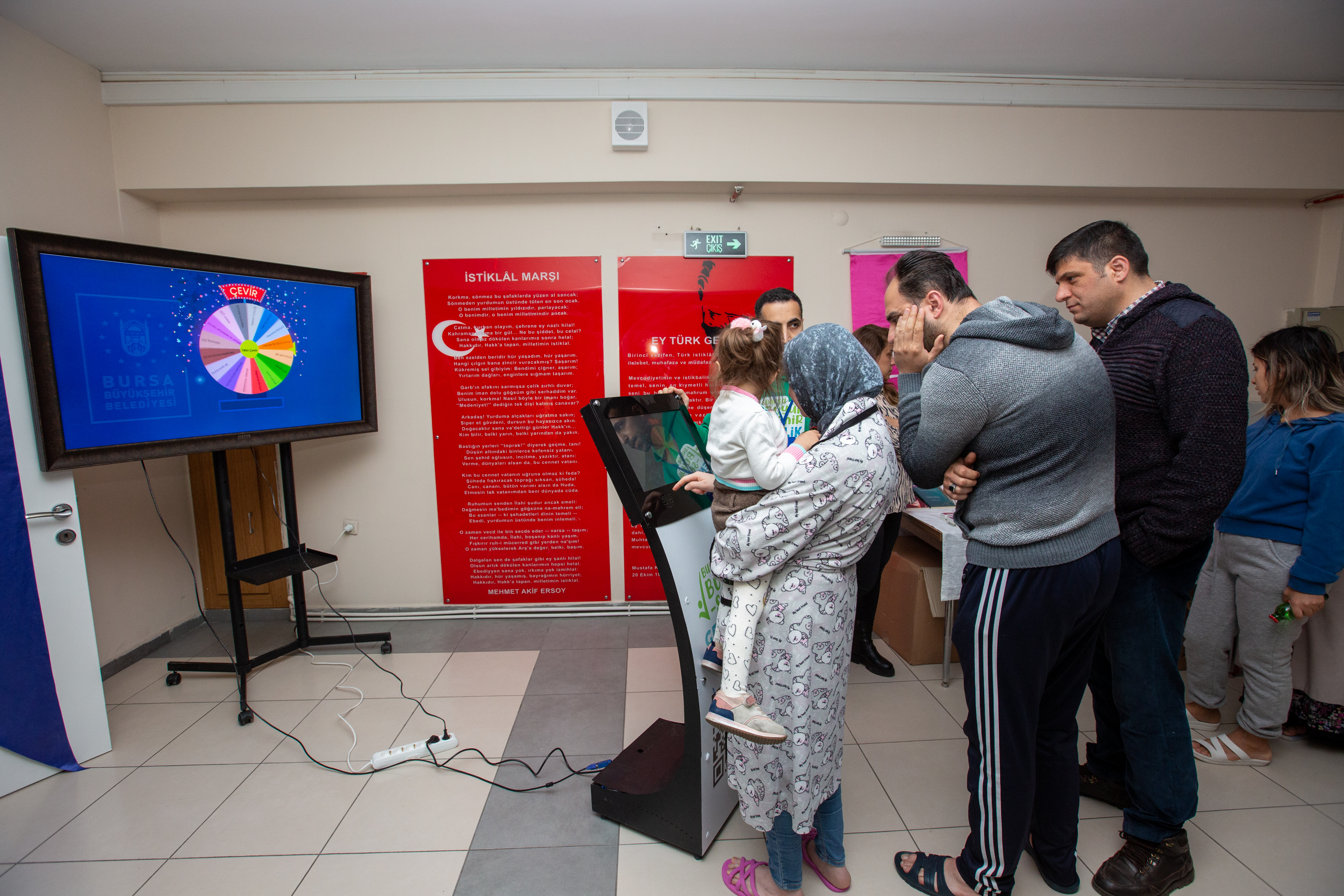 Başvuru sırasında afetzedeler çarkıfelek bilgi yarışması ile hem keyifli zaman geçirdi hem de Bursa’yı daha yakında tanıma imkanı buldu. BUSMEK tarafından kurulan ebru sanatı stantı da özellikle küçük depremzedelerin ilgi odağı oldu. Afetzede çocuklar hocaları ile birlikte ebru sanatı çalışmalarına katıldı. Ebru çalışmalarını kurutmaya alırken fotoğraflanan çocukların bir nebze de olsa yüzleri güldü.