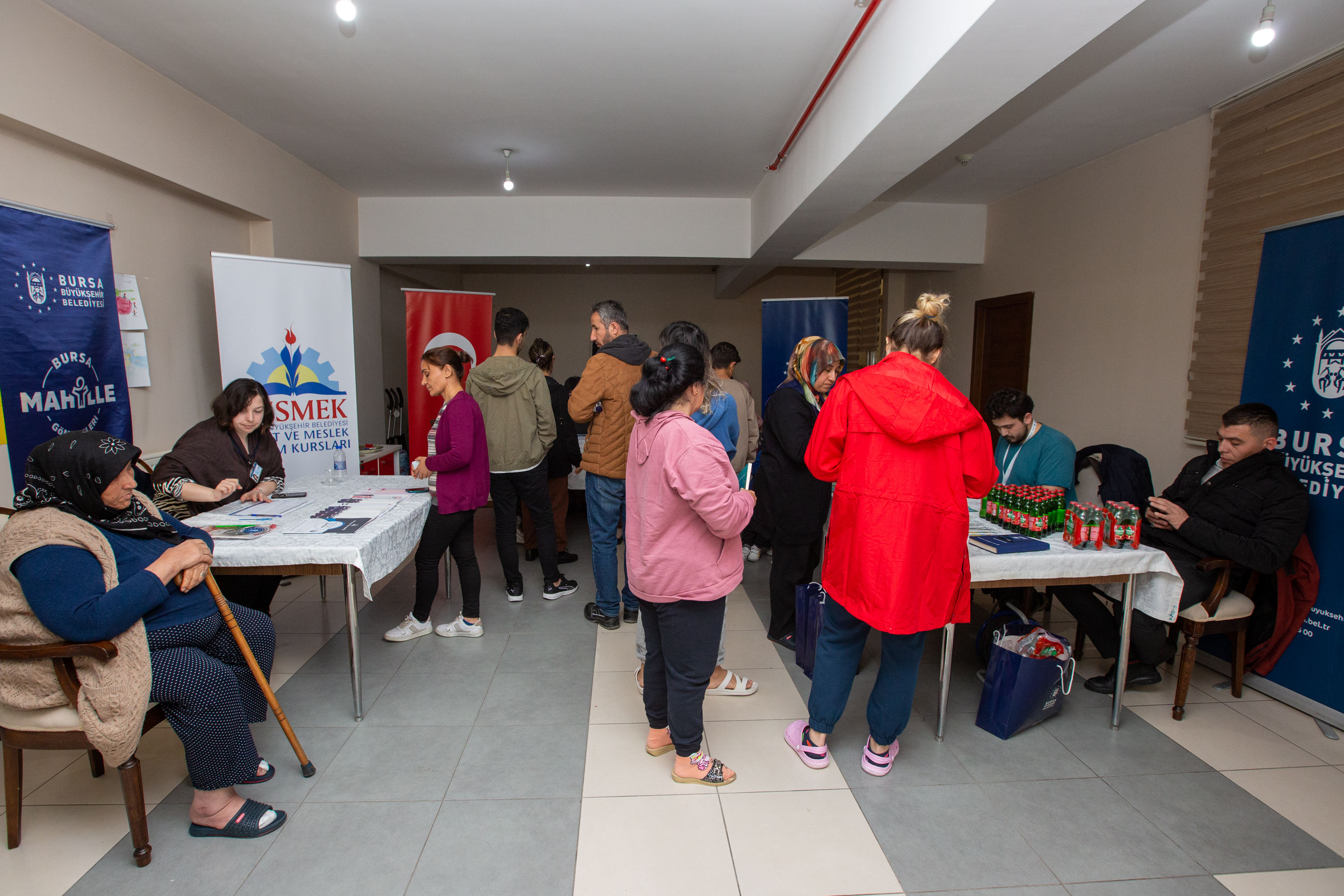 Nilüfer Hatun Kız Öğrenci Yurdu’nda kurulan stantlara da depremzedeler büyük ilgi gösterdi. Geçici de olsa Bursa’ya yeni bir yaşama başlayan afetzedeler, yararlanmak isterikleri tüm hizmetler için kolaylıkla başvurularını yaptı.