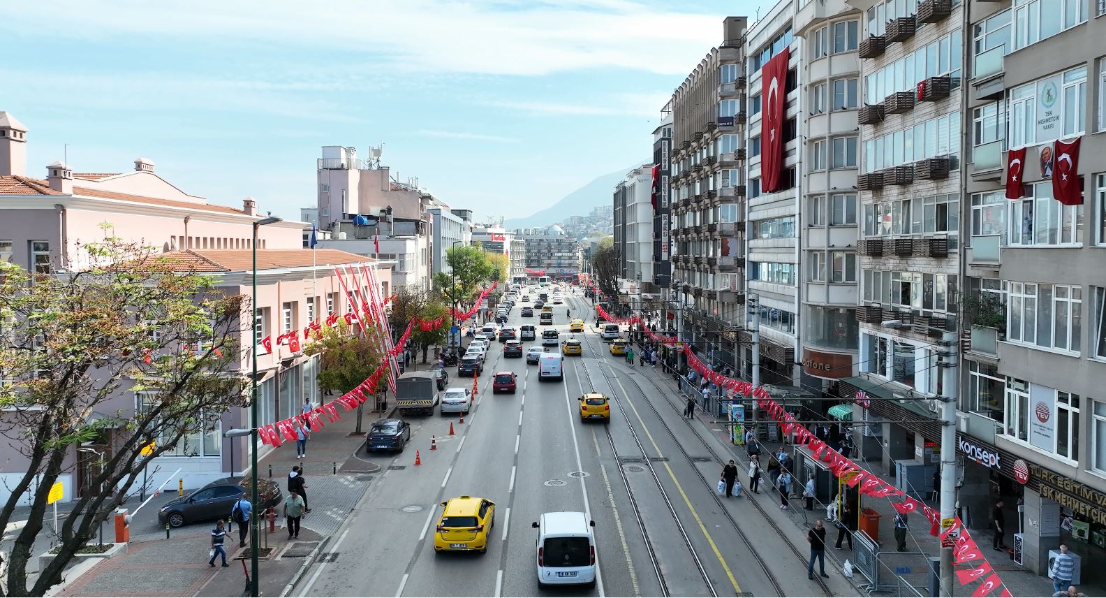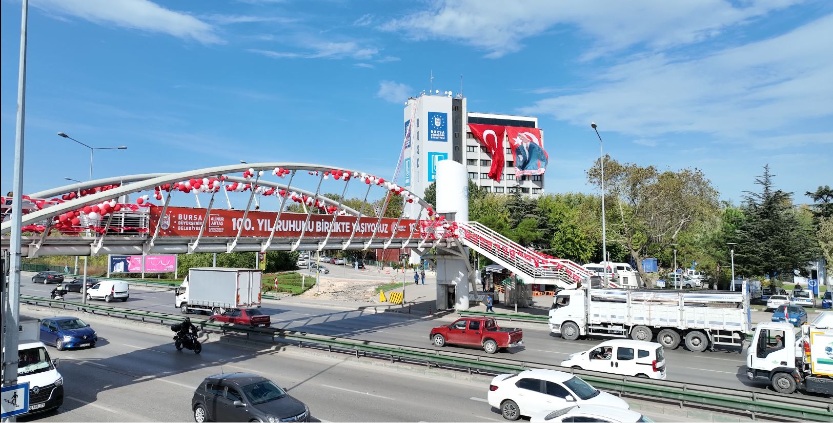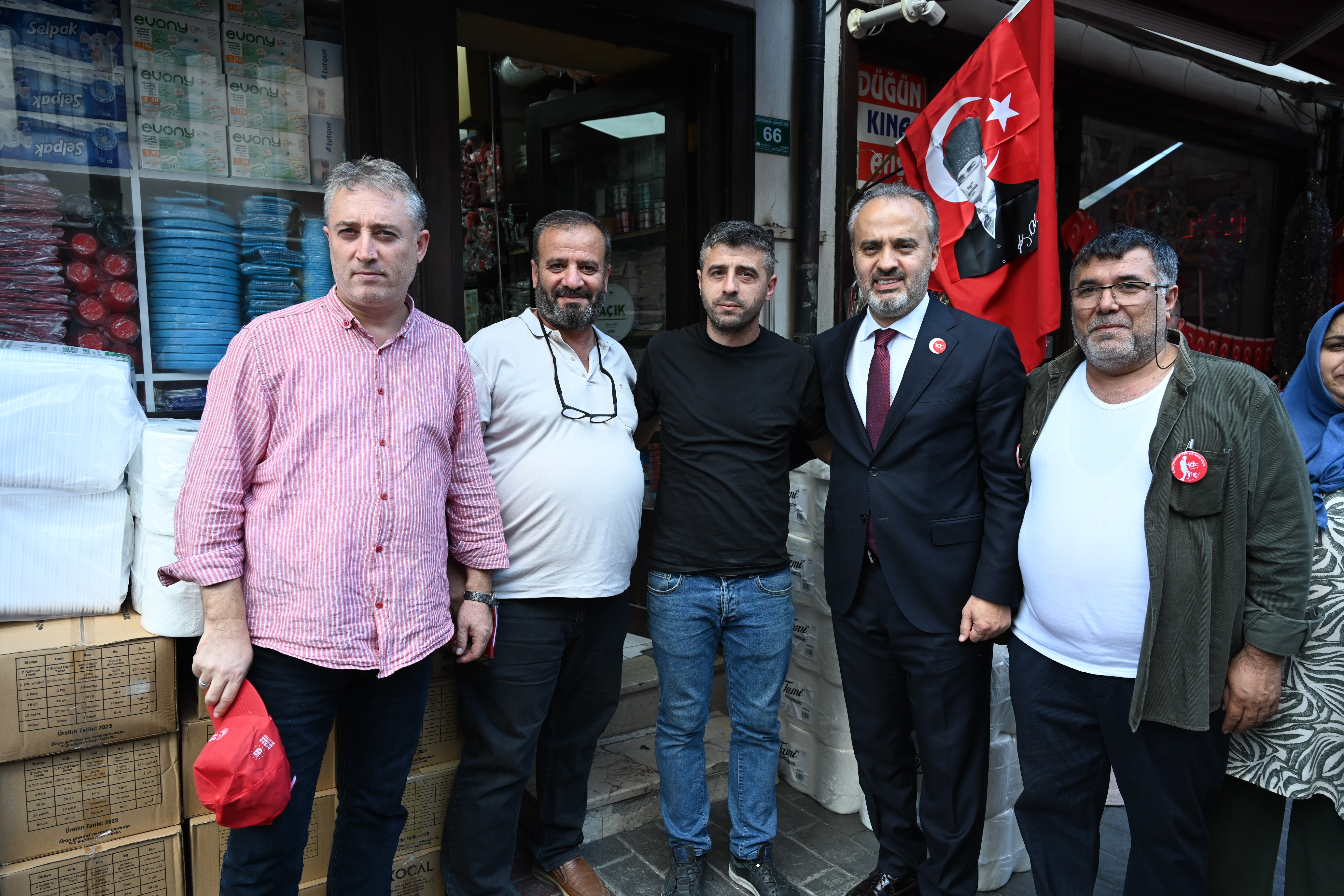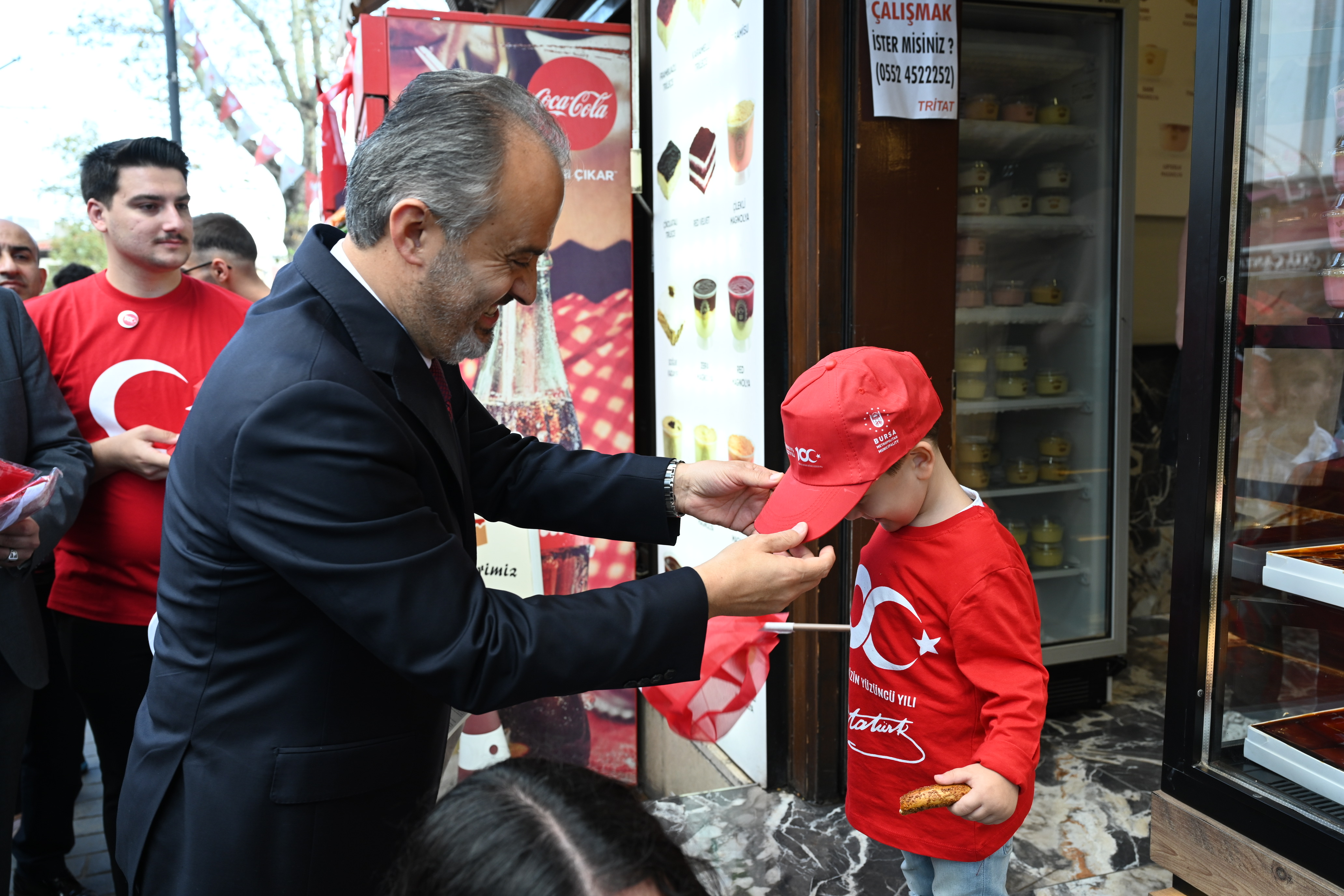 BURSA – Bursa Büyükşehir Belediyesi, Cumhuriyet’in 100’üncü kuruluş yıldönümü nedeniyle şehrin tüm ana arterlerini Türk Bayrakları ile donatırken, Başkan Alinur Aktaş da çarşı esnafına Türk Bayrağı ve ay-yıldızlı şapkalar hediye etti.