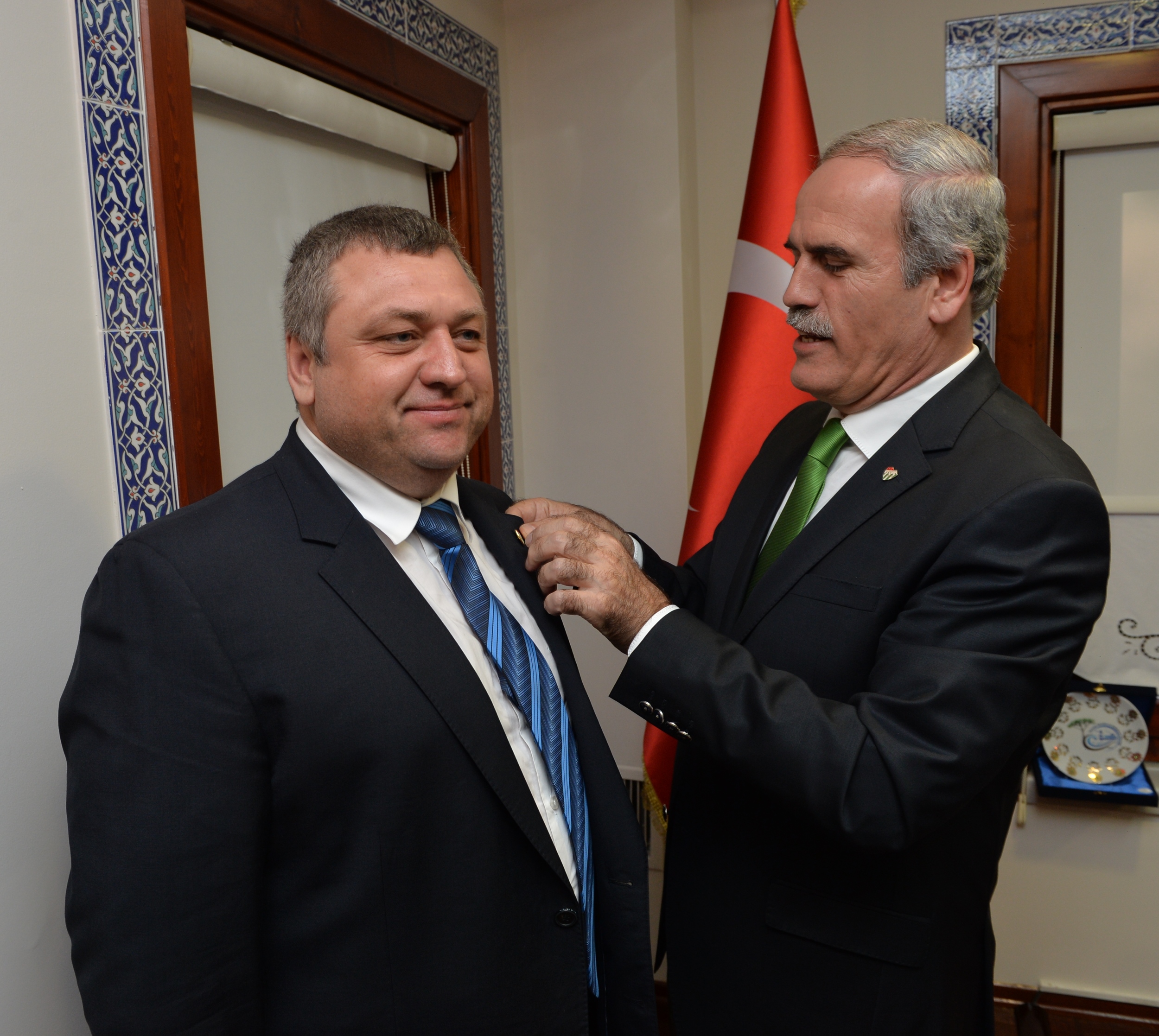 BURSA – Büyükşehir Belediye Başkanı Recep Altepe, ‘Bursa Dostu’ diye hitap ettiği Varna Milletvekili Ercan Sabahattin’e Bursaspor rozeti taktı.