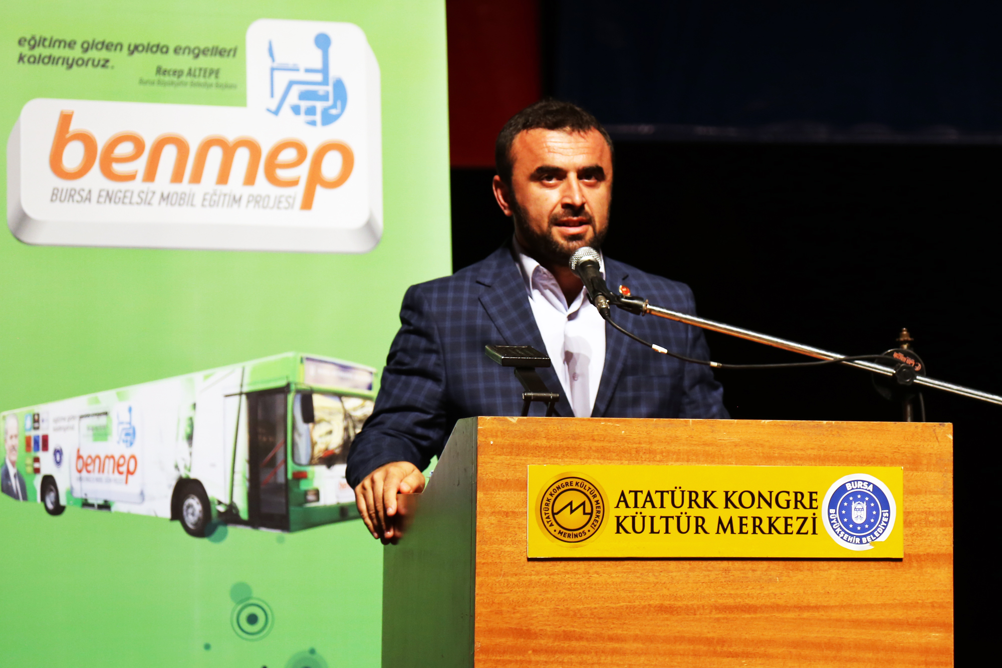 Bugün 2801 kursiyerin daha sertifika aldığı BUMEP ile halen 10 mahallede 800 kursiyerle eğitime devam edildiğini da sözlerine ekleyen Başkan Altepe, “Büyükşehir Belediyesi olarak engelli vatandaşlarımızın eğitim engellerini kaldırmayı amaçladığımız proje Bursa Engelsiz Mobil Eğitim Projesi (BENMEP) kursiyerlerinden 67 kursiyer de bugün katılım belgesini alıyor” dedi.