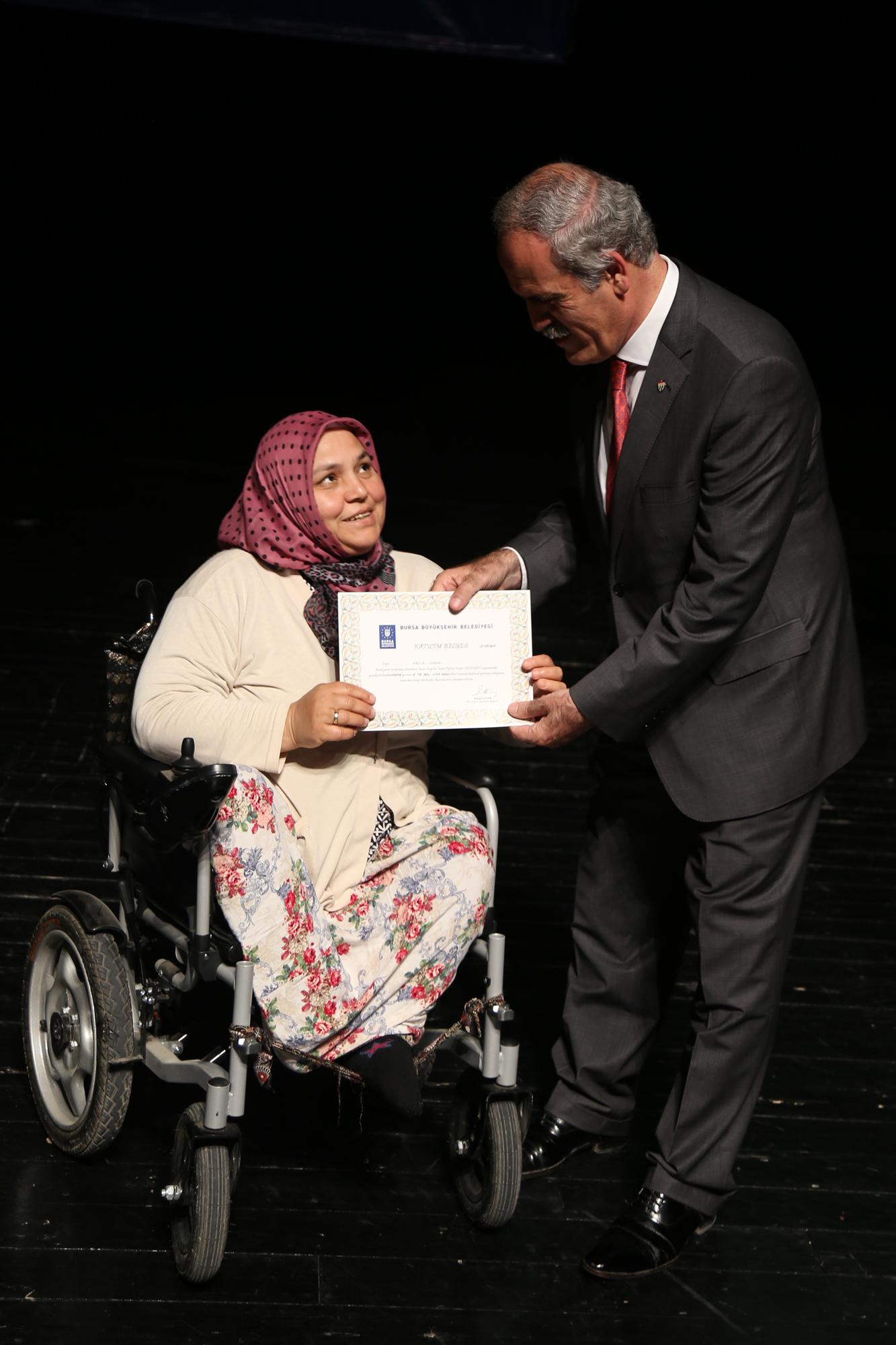 - Bursa Büyükşehir Belediye Başkanı Recep Altepe, kursları başarıyla tamamlayan kursiyerlere sertifikalarını verdi.