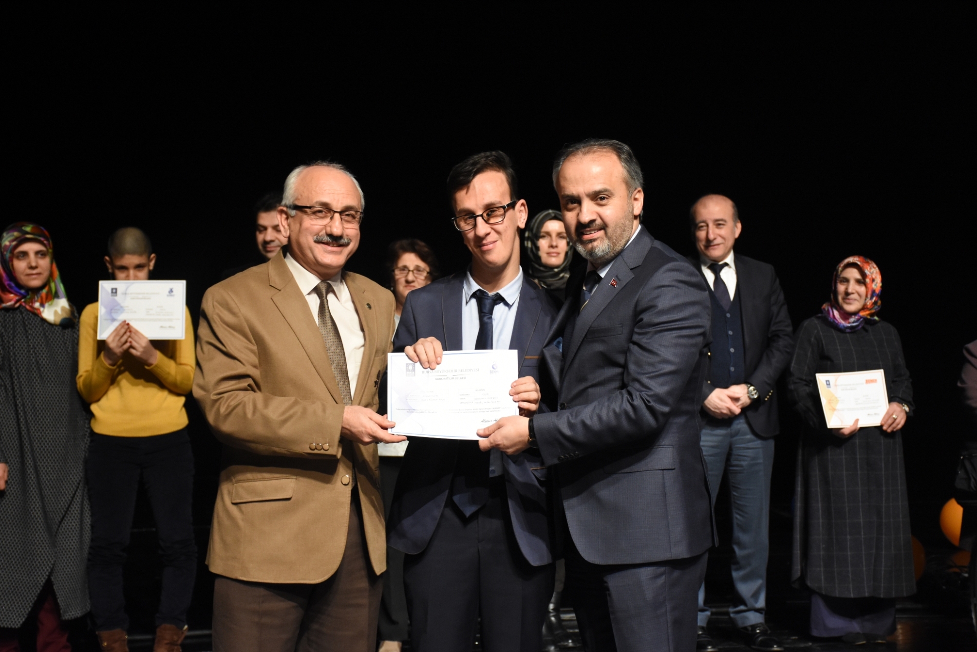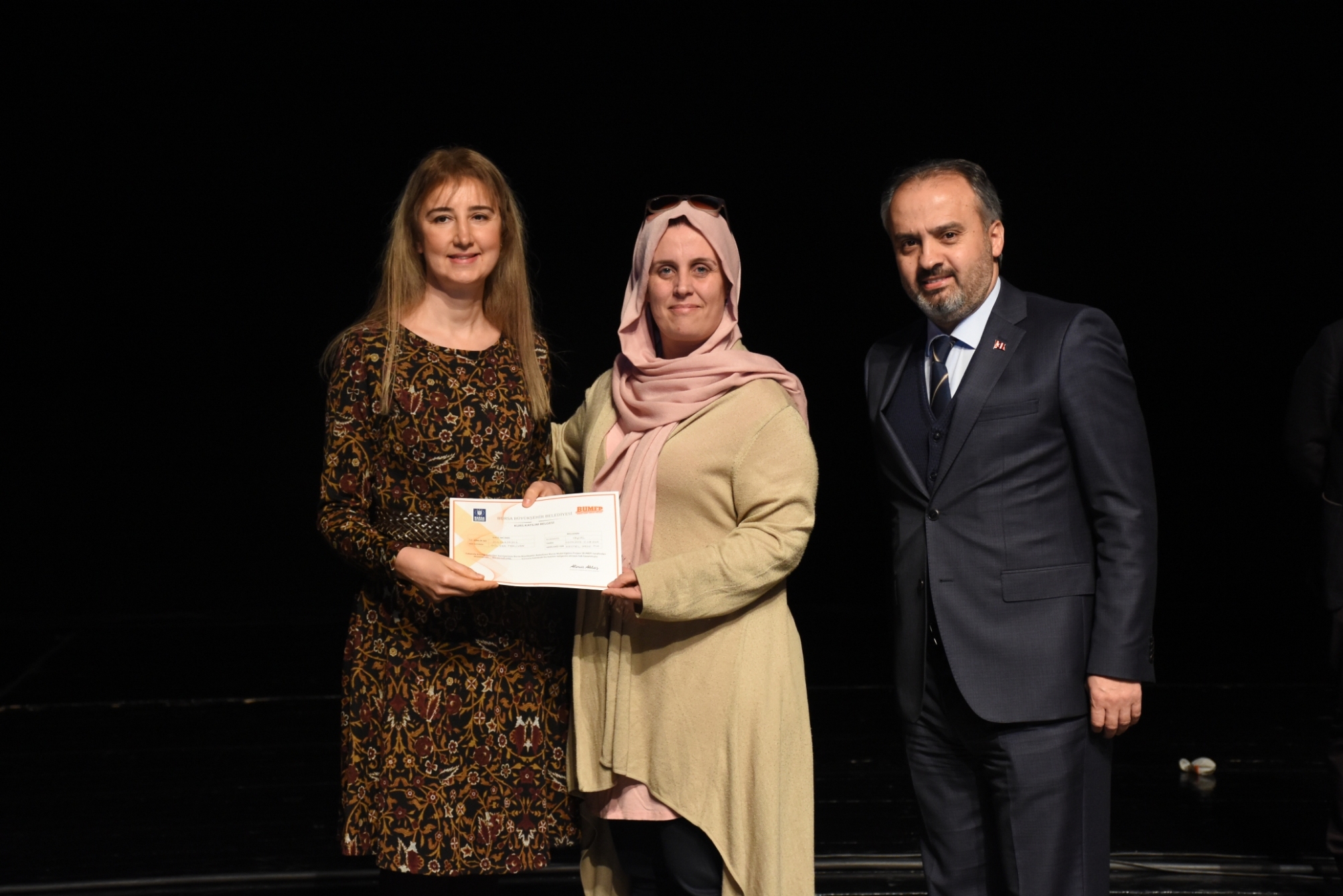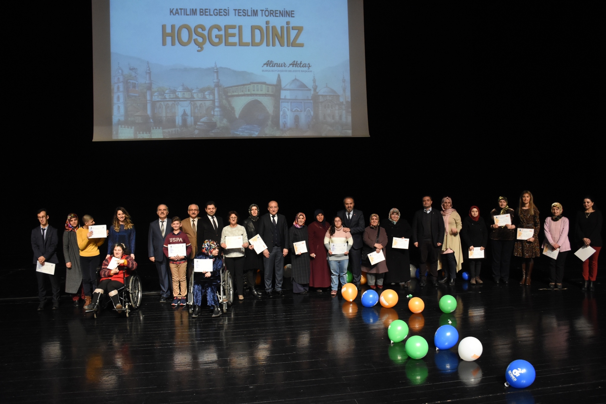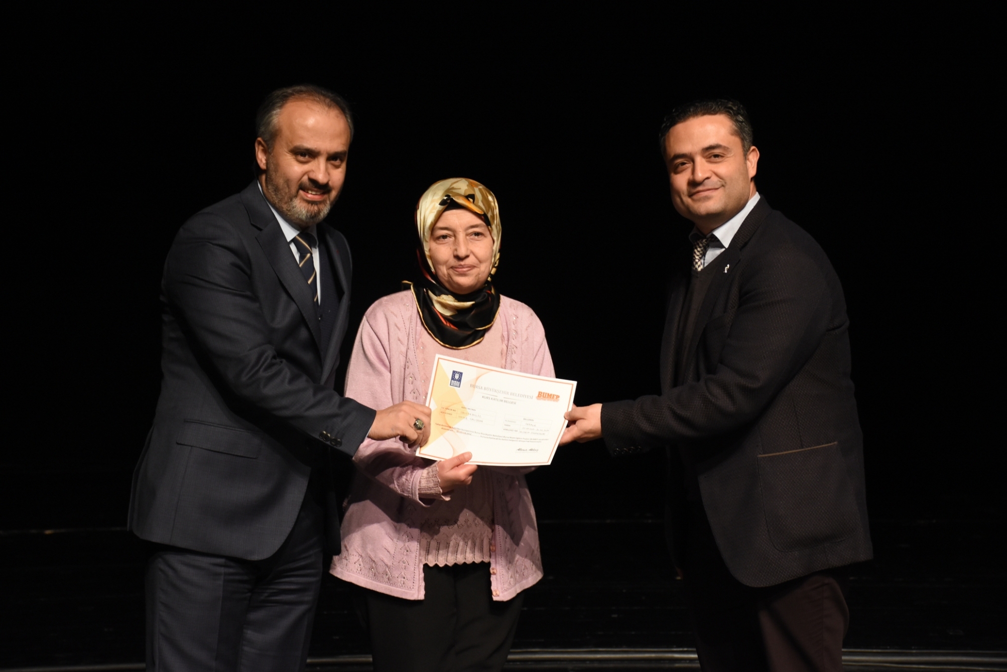BURSA - Büyükşehir Belediyesi tarafından Bursa’nın farklı mahallelerinde tam donanımlı otobüslerle özellikle ev hanımlarına yönelik olarak düzenlenen ücretsiz Bursa Mobil Eğitim Projesi (BUMEP) ile 2 bin 206 kursiyere, Bursa Engelsiz Mobil Eğitim Projesi (BENMEP) kapsamında ise 324 kursiyere katılım belgeleri törenle verildi.