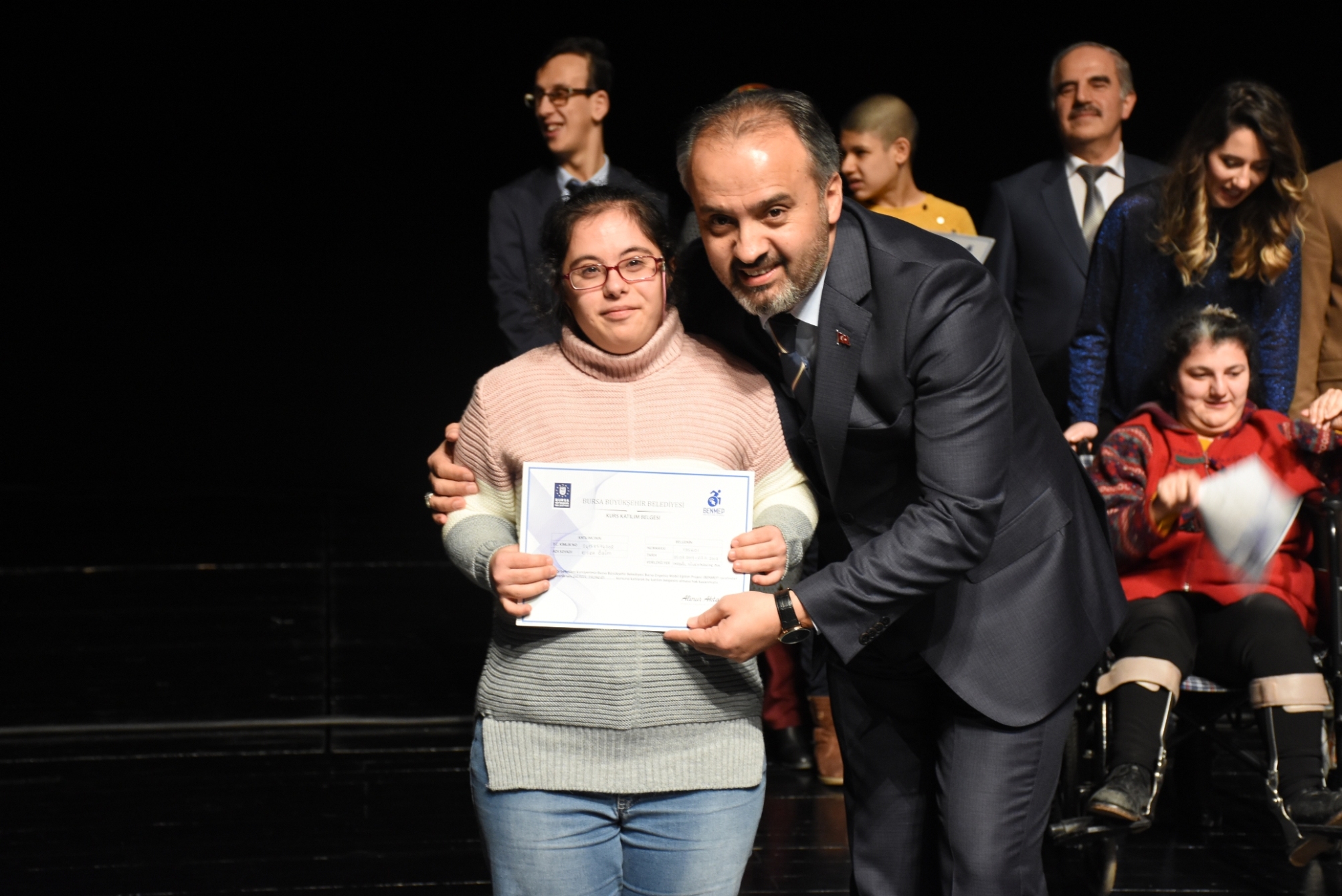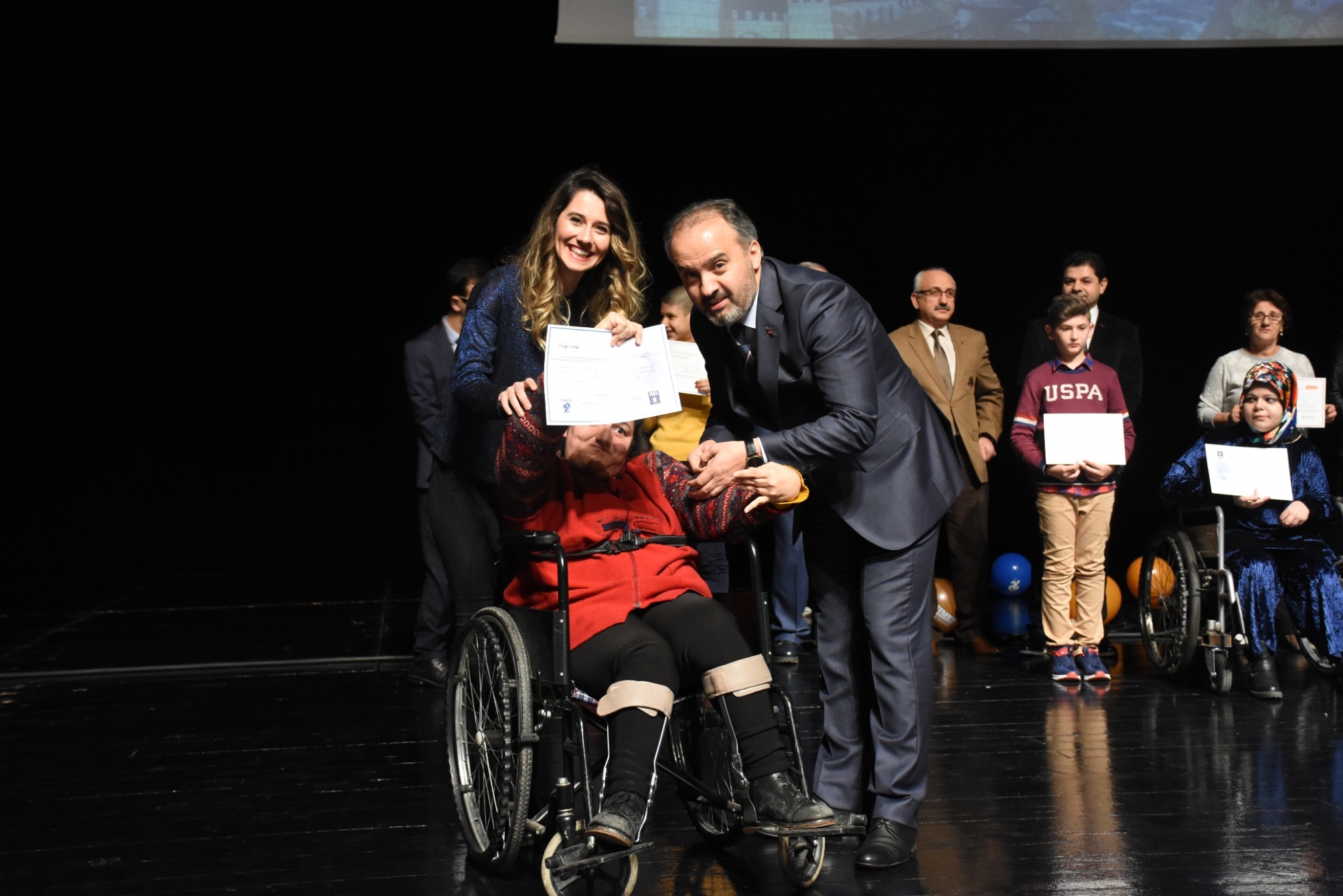 Başkan Aktaş, BENMEP projesinden ise 10 yaşından büyük tüm kadın ve erkek engelli vatandaşların yararlandığını söyledi. 2013 yılında başlatılan proje kapsamında 11 ilçede 64 farklı eğitim noktasında toplam 2 bin 109 mezun verildiğini kaydeden Başkan Aktaş, “Şu anda 3 farklı ilçede devam eden eğitimler, engelli kardeşlerimize özel dizayn edilen otobüslerde sağlanıyor. Burada temel bilgisayar programlarından grafik tasarıma kadar bir çok alanda eğitim görülüyor. Eğitim hizmetlerinin yanında alanında uzman psikolog ve eğitmenler eşliğinde rehabilitasyon ve psikolojik destek hizmetleri de katılımcılarla buluşturuluyor. Bu projede, 2017 yılında 24 farklı noktada verilen eğitimlerle 4 bin 707 kursiyere ulaşıldı. 864 kursiyerimiz belge almayı hak etti. Bugün 324 kursiyerimiz belgelerini almış bulunuyor” şeklinde konuştu.