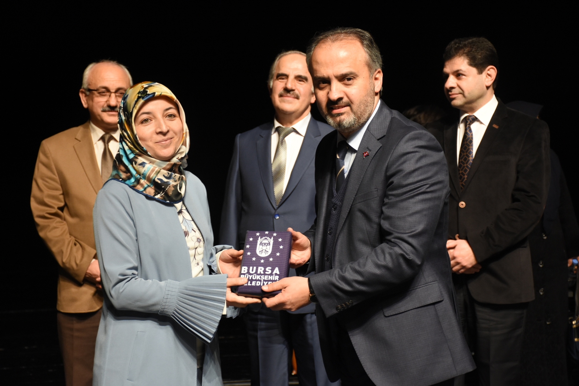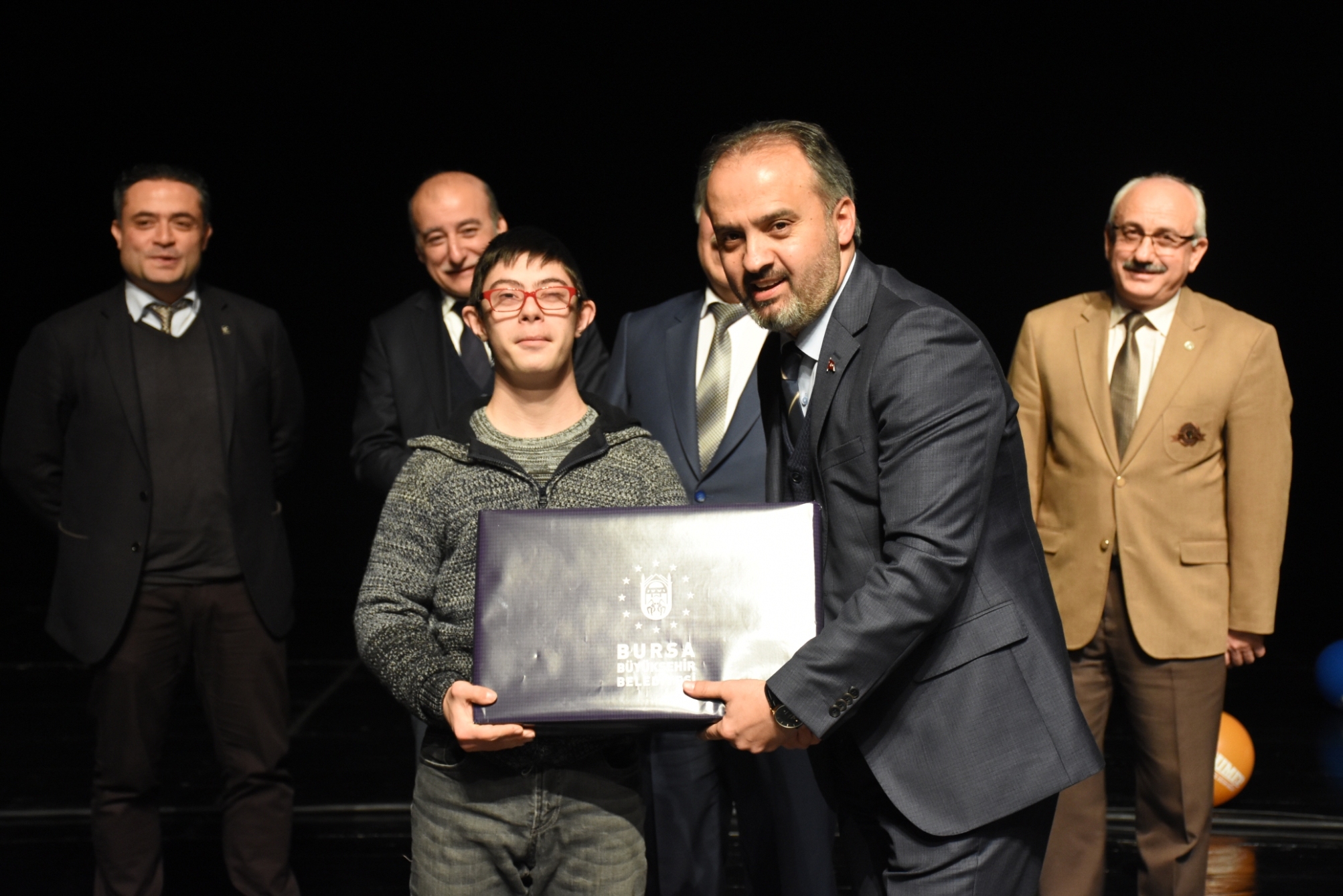 Büyükşehir Belediyesi’nin sosyal sorumluluk odaklı hizmetlerinden Bursa Mobil Eğitim Projesi (BUMEP) ve Bursa Engelsiz Mobil Eğitim Projesi (BENMEP), binlerce insana nitelikli iş gücü kazandırmaya devam ediyor. Özellikle ev hanımlarının bilgiye daha rahat ulaşmaları ve çocuklarının eğitimine katkı sağlayabilmeleri hedefiyle gerçekleştirilen BUMEP eğitimlerinden faydalanan 2 bin 206 kursiyer ile Türkiye’de ilk kez engelli vatandaşlara yönelik olarak gerçekleştirilen BENMEP eğitimlerine katılan 324 kursiyer, törenle katılım belgelerine kavuştu. Bursa Büyükşehir Belediyesi Sosyal İşler Şube Müdürlüğü koordinasyonunda sürdürülen Bursa Mobil Eğitim Projesi’nin (BUMEP-BENMEP) 2016-2017 eğitim dönemi son dönem katılım belgeleri dağıtım töreni Atatürk Kongre Kültür Merkezi (Merinos AKKM) Osmangazi Salonu’nda yapıldı. Tören öncesinde Büyükşehir Belediye Orkestrası sanatçıları tarafından katılımcılara yönelik bir konser verildi. Program, BUMEP ve BENMEP projesinin tanıtım filminin gösterimiyle başladı. Törende BUMEP kapsamında 10 kişi, BENMEP kapsamında da 6 kişi, temsili olarak Büyükşehir Belediye Başkanı Alinur Aktaş’ın elinden belge aldı.