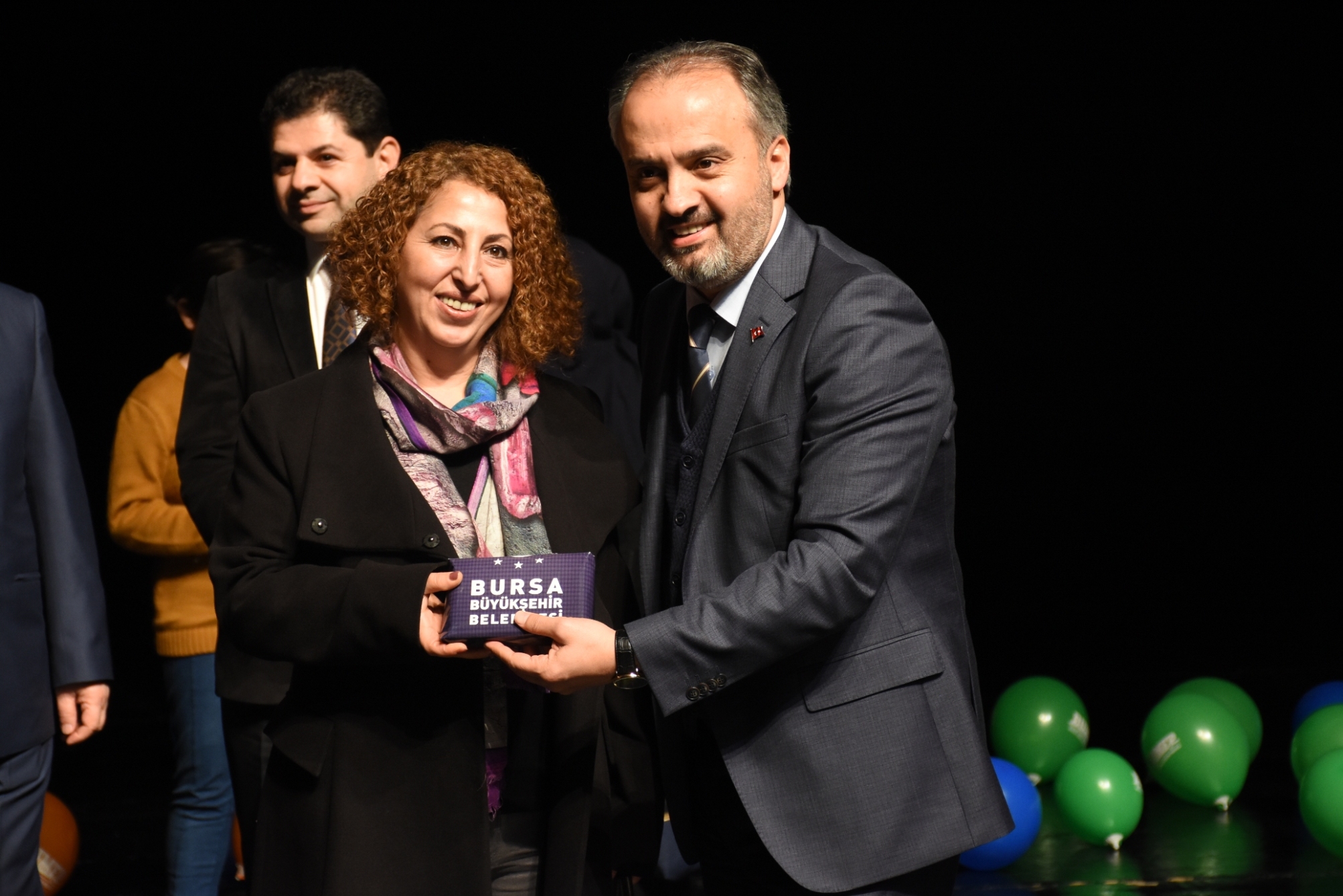 Başkan Aktaş, 2011 yılından bu yana hizmet veren BUMEP sayesinde kursiyerlerin ‘hayatın ayrılmaz bir parçası haline gelen teknoloji ve internet kullanımıyla’ kişisel gelişimlerinin yanında kültürel ve sosyal hayatlarına da katkıda bulunduklarını ifade etti. Proje kapsamında özel bilgisayar dersliği haline getirilmiş otobüslerde alanında uzman bayanların görev yaptığını ve 452 mahallenin bu hizmetlerden yararlandığını belirten Başkan Aktaş, “Bugüne kadar yaklaşık 60 bin kursiyere ulaşılmış ve 39 bin kursiyer eğitime dahil edilmiştir. Kursiyerlerimiz aldıkları eğitimler sayesinde günlük hayatlarında ihtiyaç duydukları bilgilere rahatlıkla ulaşabiliyorlar. Yine aldıkları eğitimler sayesinde yeniliklerden korkmak yerine bunları kullanarak çocuklarına yardımcı olabiliyorlar. BUMEP projesi ile 2017 yılı içerisinde 9 eğitim döneminde 14 bin 767 kursiyere ulaşıldı. 102 farklı noktada verilen eğitimlerde 8 bin 152 kursiyer belge almaya hak kazandı. Bugün 2 bin 206 kursiyere belgelerini dağıtıyoruz” diye konuştu.