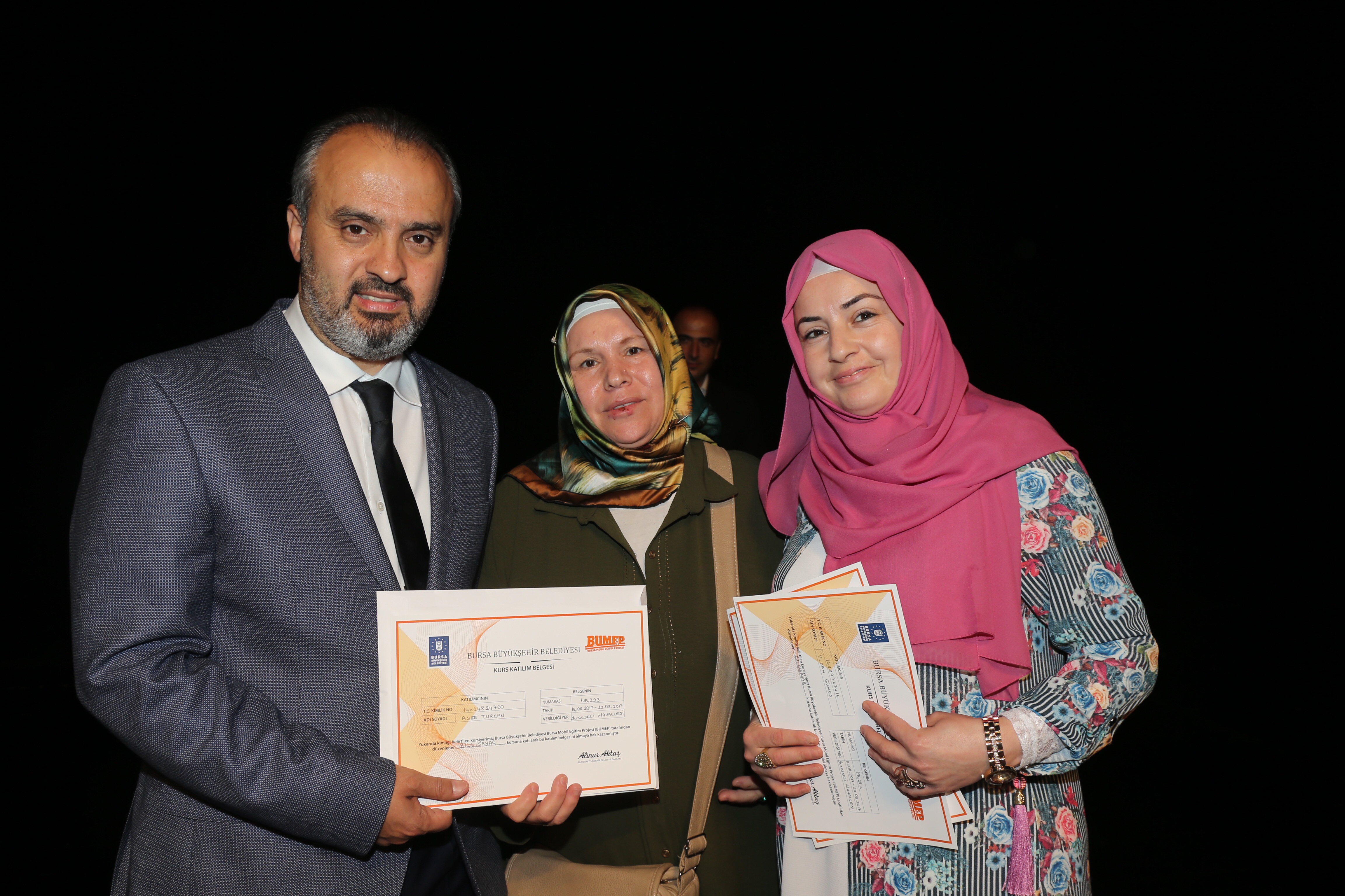 BUMEP ve BENMEP eğitimlerinde başarılı olan kursiyerler, sertifikalarını Bursa Büyükşehir Belediye Başkanı Alinur Aktaş’tan aldı. Başkan Aktaş, vatandaşların yaşadıkları mahallelerde bilgiye ulaşmalarını sağlayan BUMEP ve BENMEP eğitimlerinin önemine değinerek, “Kurslara katılan vatandaşlarımızı gönülden alkışlıyorum. Ülkemizdeki kadın eğitimlerine yeni bir soluk kazandıran BUMEP, 2011 yılından bu yana bugüne kadar 14 ilçemizde eğitim hizmeti verdi. BUMEP eğitimlerine katılan kursiyerlerimiz, teknoloji ve interneti etkin bir şekilde kullanarak, kişisel gelişimlerinin yanında kültürel ve sosyal yaşamlarına da katkıda bulunuyorlar. Proje kapsamında özel bilgisayar dersliği haline getirilmiş otobüslerde, alanında uzman ve tamamı kadınlardan oluşan eğitmenler görev yapıyor” dedi.