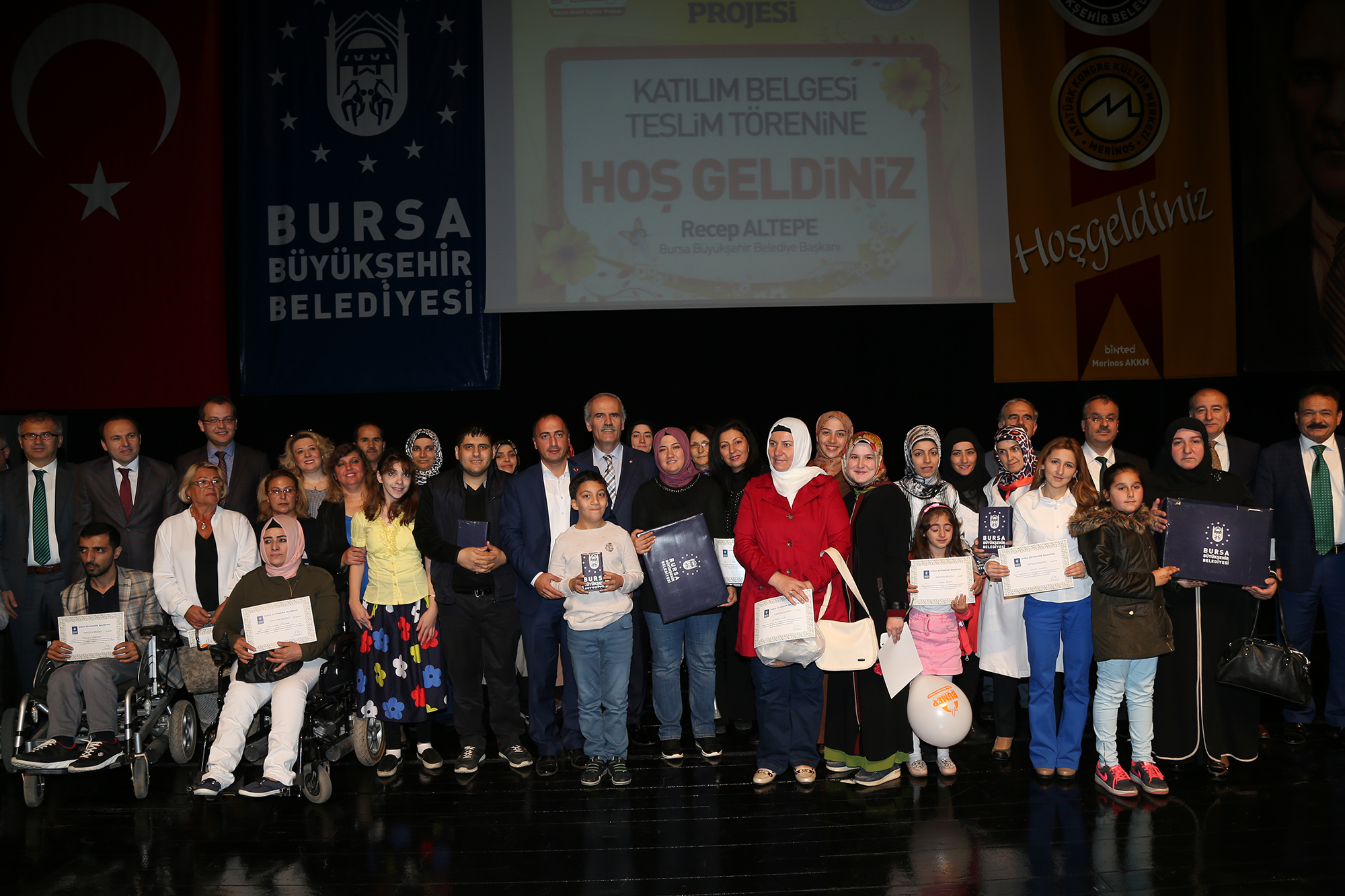 - MERİNOS ATATÜRK KONGRE VE KÜLTÜR MERKEZİ’NDE (MERİNOS AKKM) DÜZENLENEN VE BÜYÜKŞEHİR BELEDİYE BAŞKANI RECEP ALTEPE’NİN DE KATILDIĞI TÖRENDE AYRICA, PLANLANAN EĞİTİMLERDE 80 VE ÜZERİ PUAN ALAN KURSİYERLER ARASINDA YAPILAN ÇEKİLİŞLE ÇEŞİTLİ HEDİYELER DAĞITILDI.