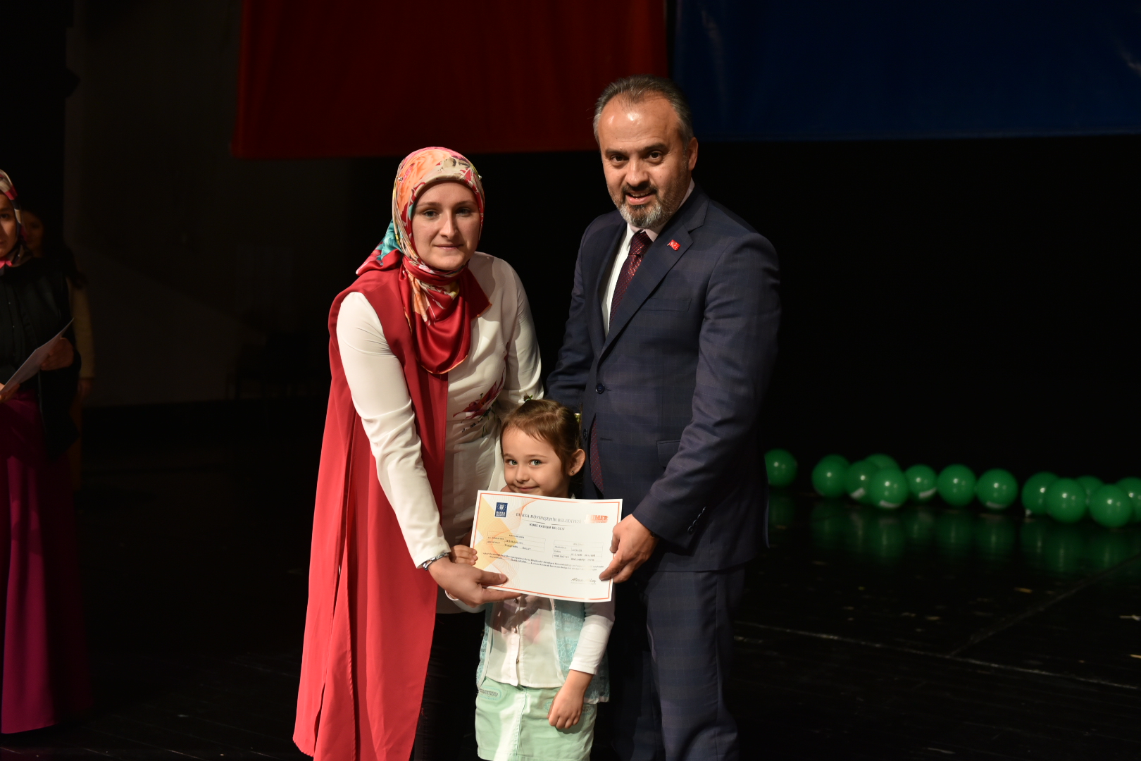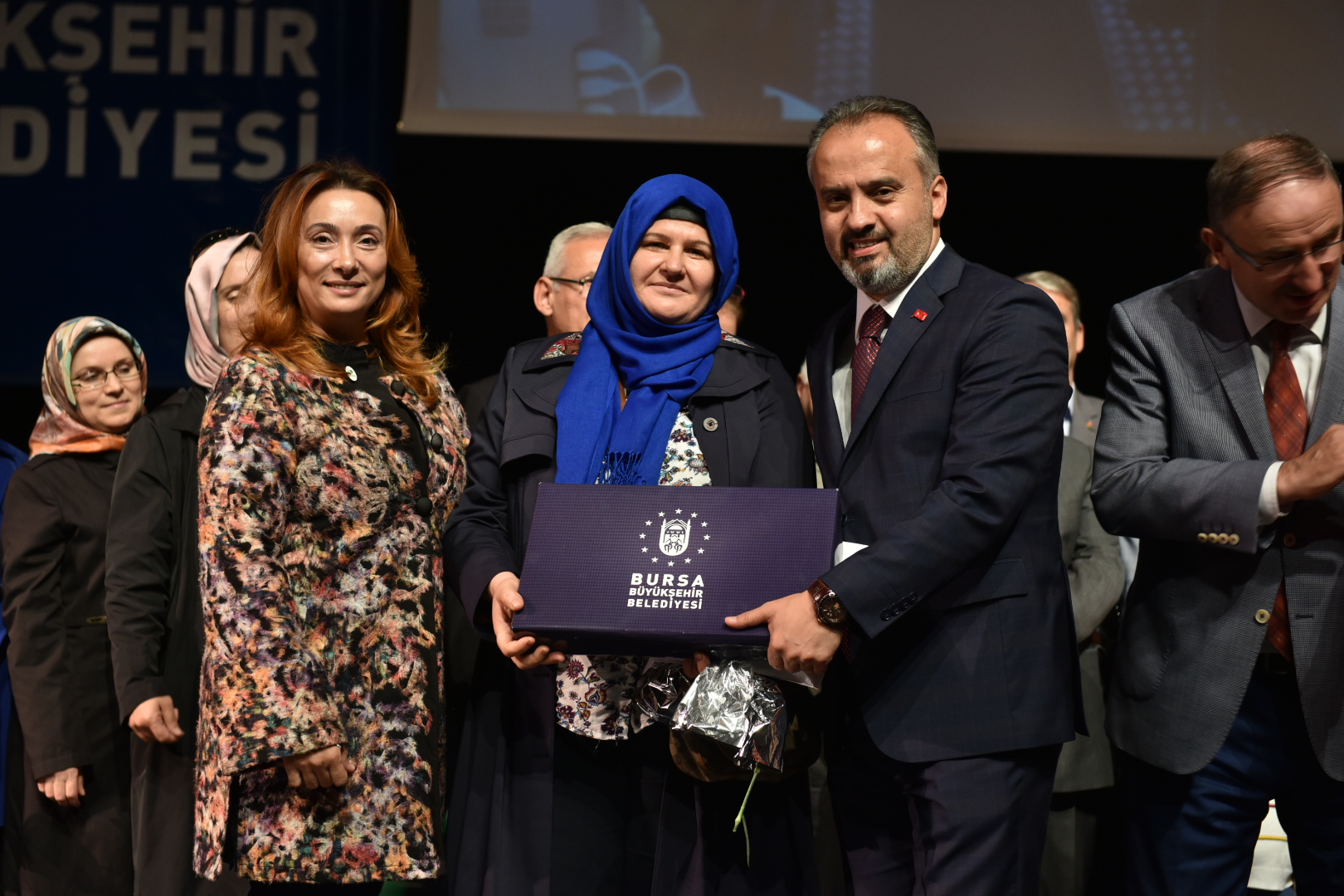 Programa katılan Büyükşehir Belediye Başkanı Alinur Aktaş, yaptığı konuşmada, Bursa Mobil Eğitim Projesi’nin 536 farklı mahalle ve eğitim noktası ile il genelinde 59 eğitim dönemini geride bıraktığını söyledi. Bu yıl da 12 eğitim aracı ile Bursa merkez ve kırsal ilçelerde faaliyetlere devam edildiğini belirten Başkan Aktaş, “Bursa Mobil Eğitim Projesi başladığından bu yana merkez ilçeler ile Mustafakemalpaşa, İznik, Orhangazi, Karacabey ve Yenişehir’de eğitimler verdik. Proje kapsamında önümüzdeki dönemlerde Keles, Büyükorhan, Harmancık ve Orhaneli’ye de hizmetin götürülmesini planlıyoruz” dedi. Bursa Mobil Eğitim Projesi’nin bir eğitim yılı içerisinde 9 farklı dönemi kapsadığını ve her 3 dönem sonunda eğitimi başarıyla tamamlayanlara düzenlenen törenle belgelerini teslim ettiklerini söyleyen Başkan Aktaş, Aralık 2017-Nisan 2018 dönemleri arasında eğitimlere devam ederek sertifika almaya hak kazanan 2 bin 338 kursiyeri tebrik etti.