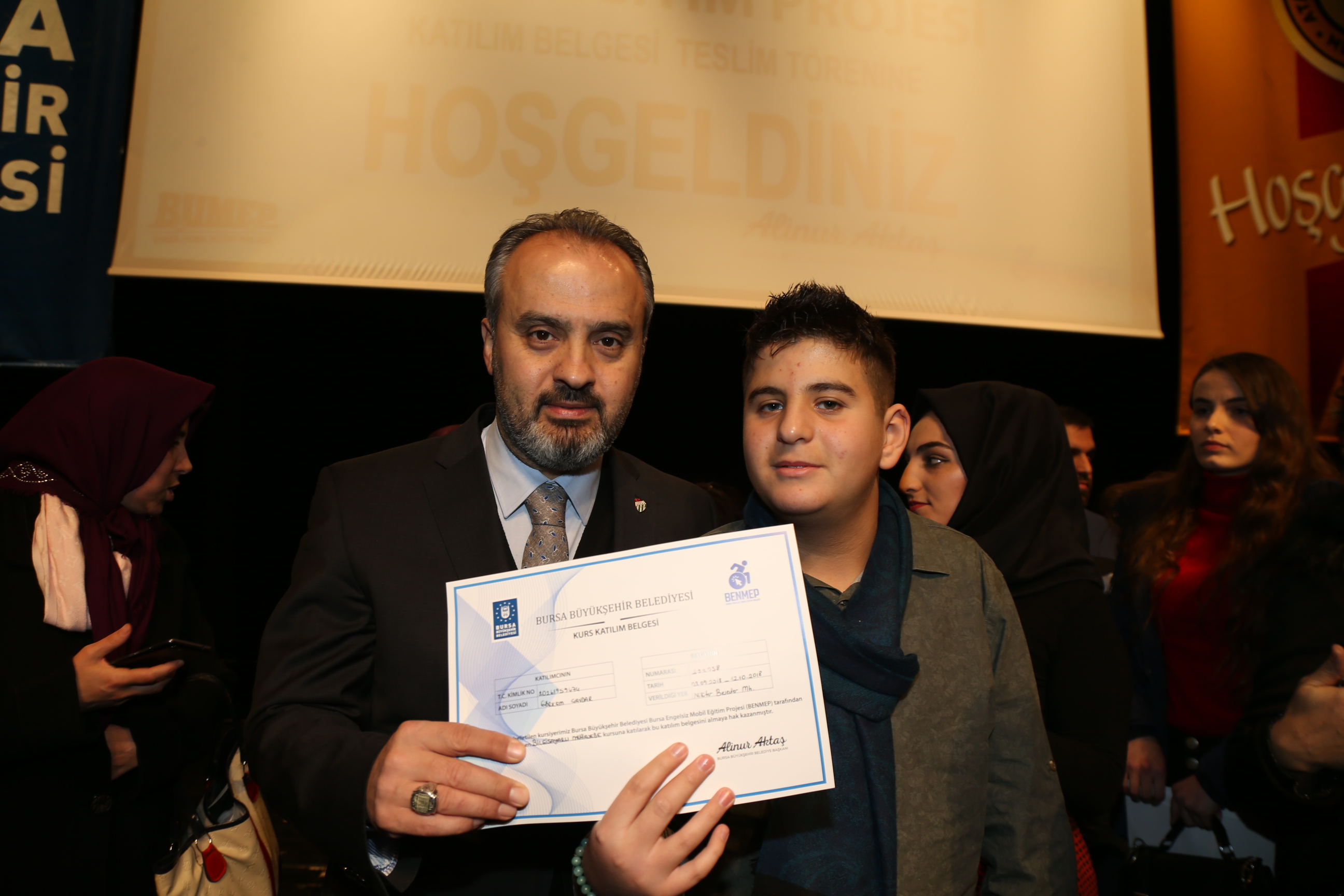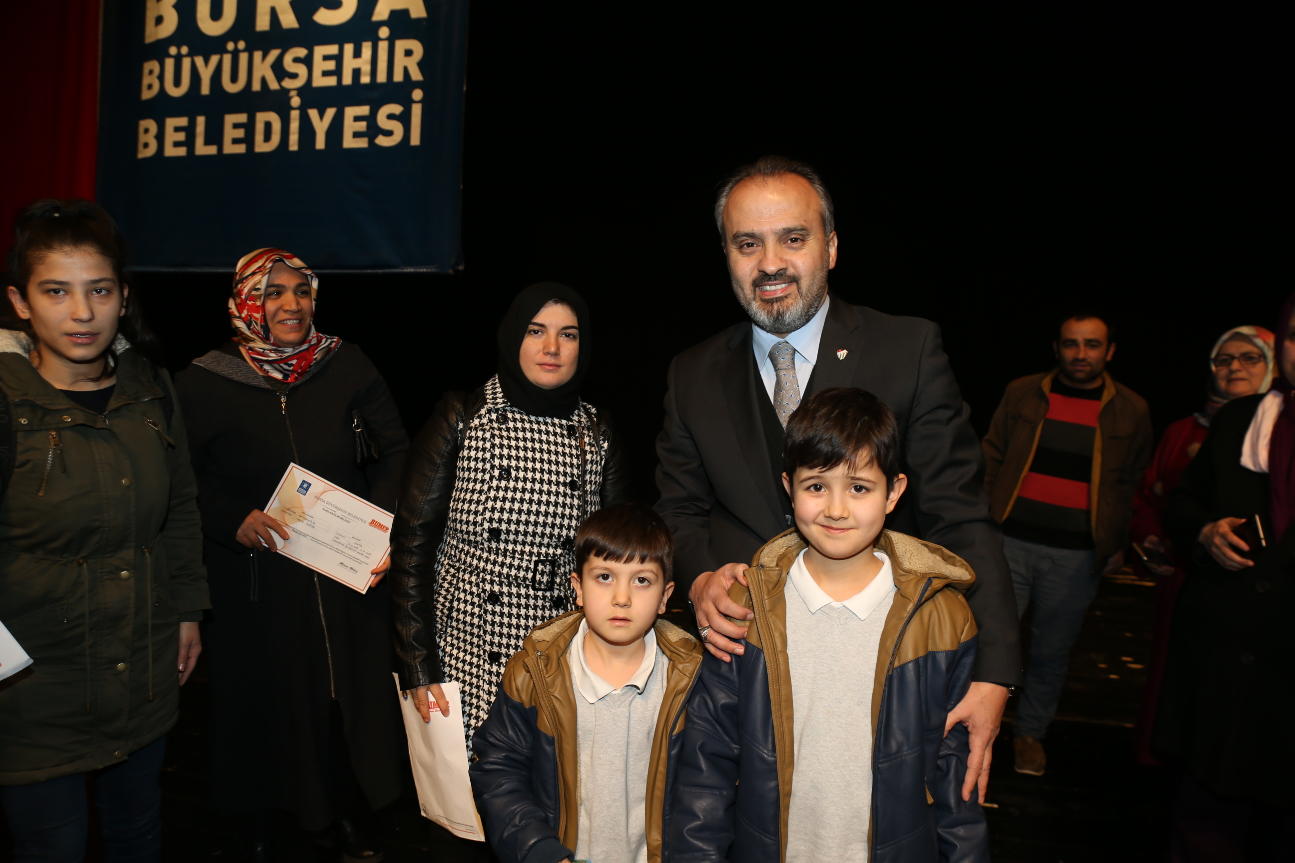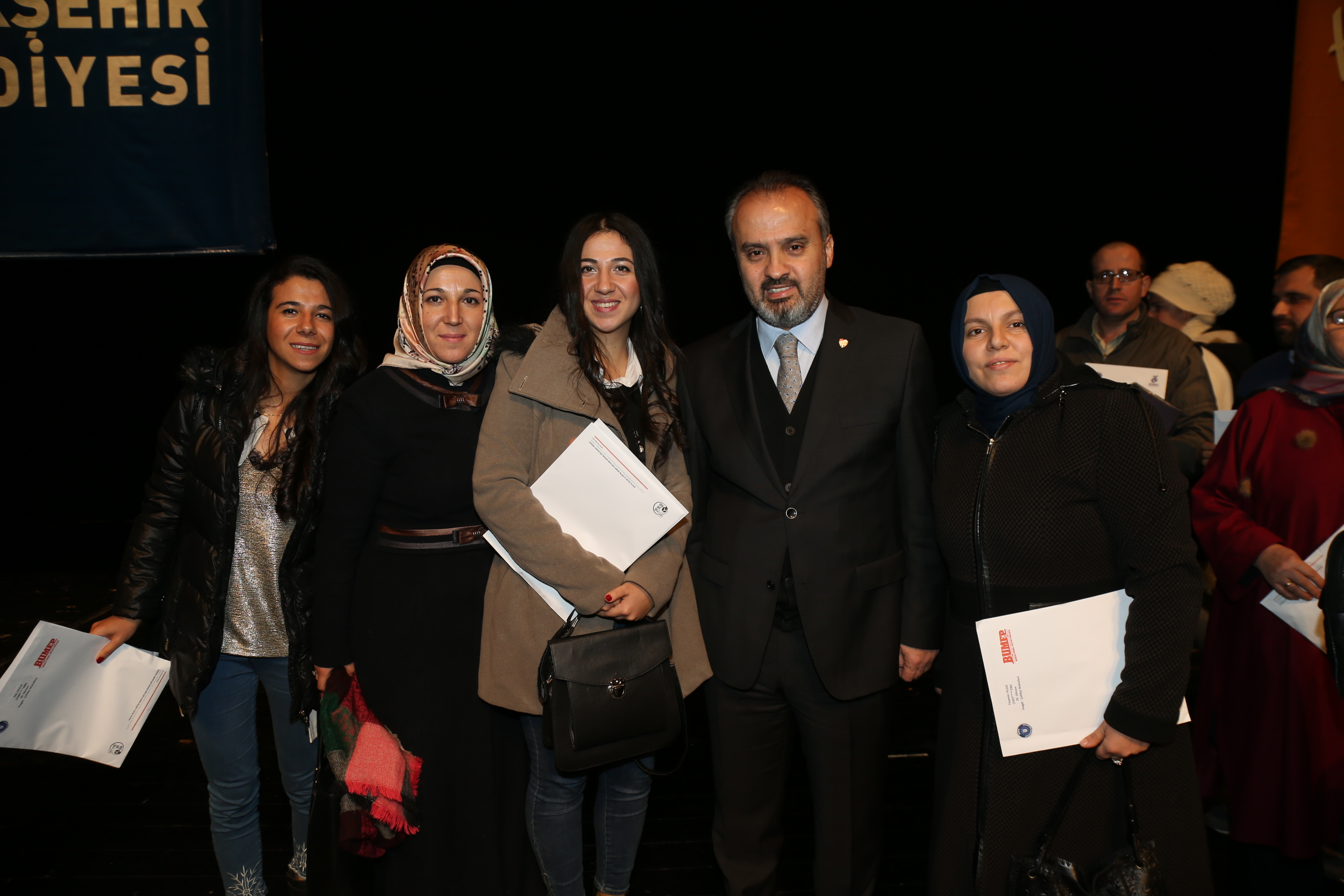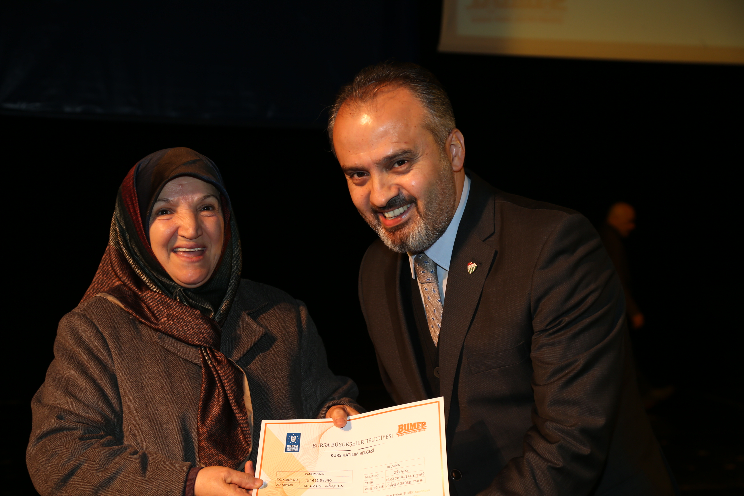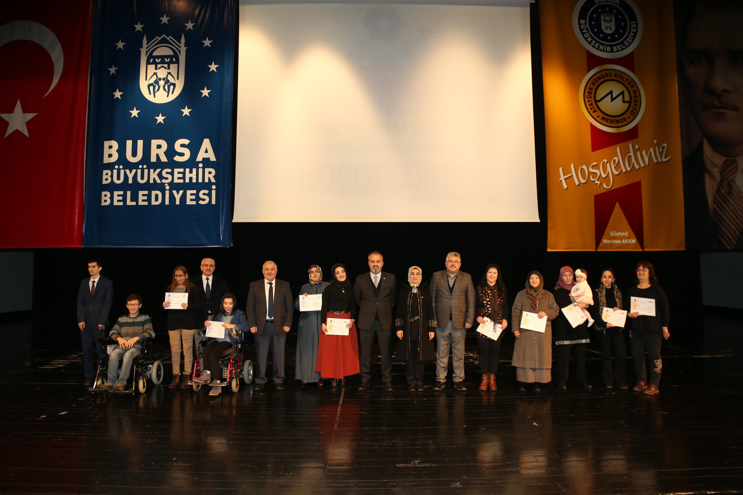 Büyükşehir Belediyesi’nin sosyal sorumluluk hizmetlerinden BUMEP ve BENMEP, binlerce insana nitelikli iş gücü kazandırmaya devam ediyor. Özellikle ev hanımlarının bilgiye daha rahat ulaşabilmeleri ve çocuklarının eğitimine katkı sağlayabilmeleri hedefiyle gerçekleştirilen BUMEP projesinden faydalanan 3 bin 524 kursiyer ile Türkiye’de ilk kez engelli vatandaşlara yönelik olarak gerçekleştirilen BENMEP projesinden faydalanan 776 kursiyer, katılım belgelerine kavuştu. Büyükşehir Belediyesi Sosyal İşler Şube Müdürlüğü koordinasyonunda sürdürülen projenin Nisan 2018-Ocak 2019 eğitim dönemi katılım belgesi dağıtım töreni, Atatürk Kongre Kültür Merkezi (Merinos AKKM) Osmangazi Salonu’nda yapıldı. BUMEP ve BENMEP projesi tanıtım filmi gösterimiyle start alan program öncesinde, Büyükşehir Belediye Orkestrası sanatçıları davetlilere mini bir konser de verdi.