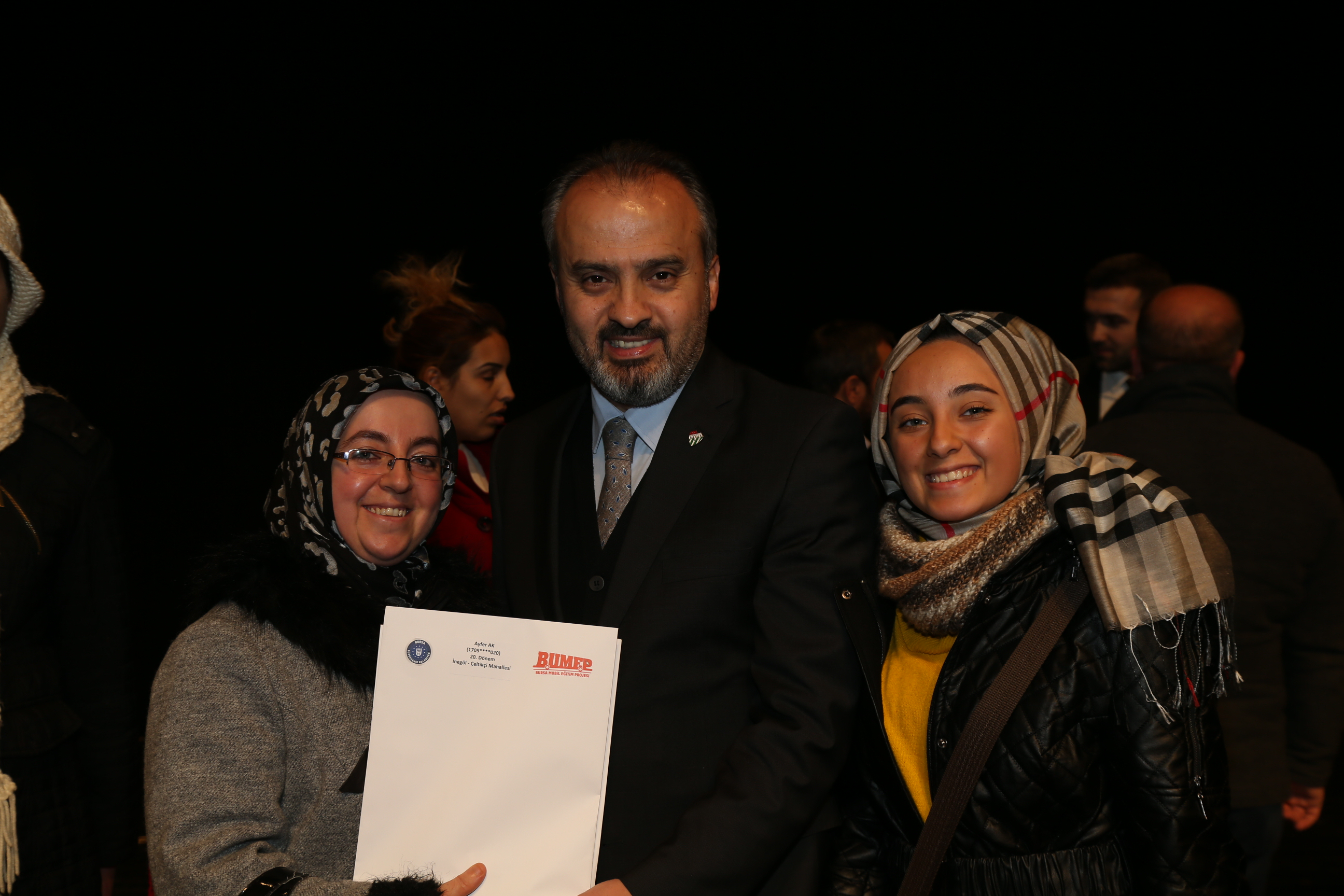 Törene katılarak kadın ve engellilerin mezuniyet sevincine ortak olan Büyükşehir Belediye Başkanı Alinur Aktaş, bilgi ve teknolojiye ulaşmada oluşan açığı kapatmak ve toplumun bu yöndeki ihtiyacını karşılamak amacıyla hizmete alınan proje kapsamında 2011 yılından bu yana 78 bin 823 kişiye ulaşıldığını hatırlattı. BUMEP’in Bursa genelinde 65 eğitim dönemini geride bıraktığını, 12 eğitim aracı ile birlikte halen faaliyetine devam ettiğini vurgulayan Başkan Aktaş, “Projemiz hizmete alındığı tarihten bu yana merkez ilçeler ve Mustafakemalpaşa, İnegöl, İznik, Orhangazi, Karacabey ve Yenişehir’de eğitimler verdi. Keles, Büyükorhan, Harmancık ve Orhaneli’ye de önümüzdeki dönemlerde bu hizmetin götürülmesini planlıyoruz” dedi. BUMEP projesinin bir eğitim yılı içerisinde 9 farklı dönemi kapsadığını, her 3 dönem sonunda başarılı kursiyerlere sertifikalarının verildiğini kaydeden Başkan Aktaş, “Bugün Nisan 2018-Ocak 2019 dönemleri arasında eğitimlerini tamamlayıp belge almaya hak kazanan 3 bin 524 kursiyerimize sertifikalarını teslim ediyoruz. Ayrıca kurs bitiminde yapılan sınavda 80 ve üzeri puan alan kursiyerlere de çekiliş ile akıllı telefon, tablet ve laptop hediye ediyoruz” diye konuştu.