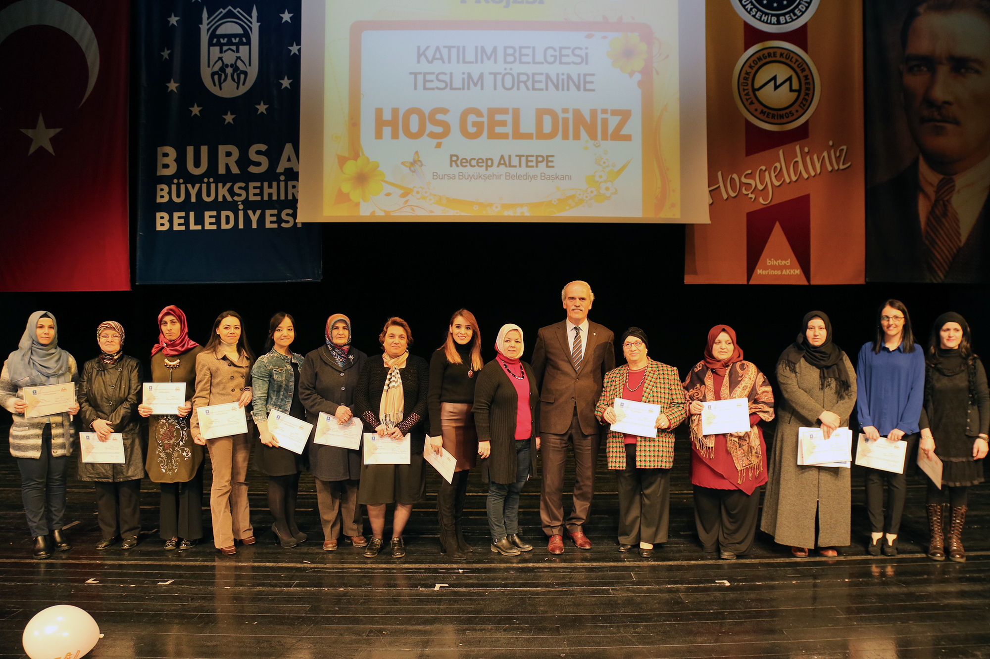 - MERİNOS ATATÜRK KONGRE VE KÜLTÜR MERKEZİ’NDE (MERİNOS AKKM) DÜZENLENEN VE BÜYÜKŞEHİR BELEDİYE BAŞKANI RECEP ALTEPE’NİN DE KATILDIĞI TÖRENDE, EĞİTİMLER SONUCUNDA YAPILAN SINAVDA 80 İLE ÜZERİ PUAN ALAN KURSİYERLERE DE ÇEŞİTLİ HEDİYELER DAĞITILDI.