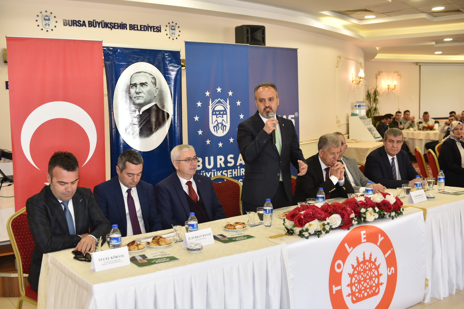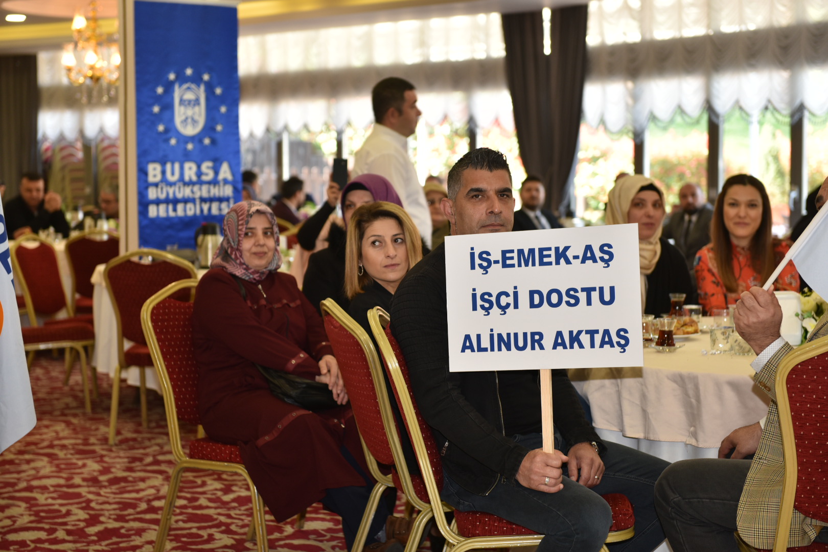 Türkiye Otel Lokanta Dinlenme Yerleri İşçileri Sendikası (TOLEYİS) Genel Başkanı Cemail Bakındı ise Başkan Alinur Aktaş sayesinde BURFAŞ’a adalet geldiğini ifade etti. İkramiyeye 50 gün daha ilave edilerek 120 güne çıkartılmasının önemli bir gelişme olduğunu kaydeden Bakındı, “Sendikal hayata başladığımızda, 50 günlük ek ikramiyeyi alana kadar 2-3 dönem geçti. 120 güne çıkarana kadar canımız çıktı. Bu itibarla 50 günlük ikramiyenin verilmesi, Hz. Ömer’in, kültürümüzün, başkanımızın bir adaletidir. Kendisine çok teşekkür ediyoruz” ifadelerini kullandı. TOLEYİS Başkanı Bakındı, yasa gereği toplu is sözleşme görüşmelerine 4-5 ay öncesinden başladıklarını hatırlatarak, 45 yıllık sendika hayatında süresinden önce iyi bir şekilde biten toplu iş sözleşmesine ilk kez şahit olduğunu ifade etti. Hz. Peygamberin hadis-i şerifinin burada yerine getirildiğini vurgulayan Bakındı, “İşçinin alın teri kurumadan verilmiştir. Onun için sayın başkanımıza şükranlarımızı arz ediyoruz” açıklamasında bulundu. TOLEYİS Genel Başkanı Cemail Bakındı, işçiye kim destek verirse onun arkasında olduklarını vurgulayarak, “Biz işçiler bize kim samimi davranırsa, vicdani hareket ederse, ona hizmetimizi ve arkasında olduğumuzu açıkça beyan ederiz. İşte işçi dostu başkan burada. Başkan Aktaş’a sonuna kadar sahip çıkacağız. Bize ekmek verene, biz gereğini yerine getiririz” dedi.