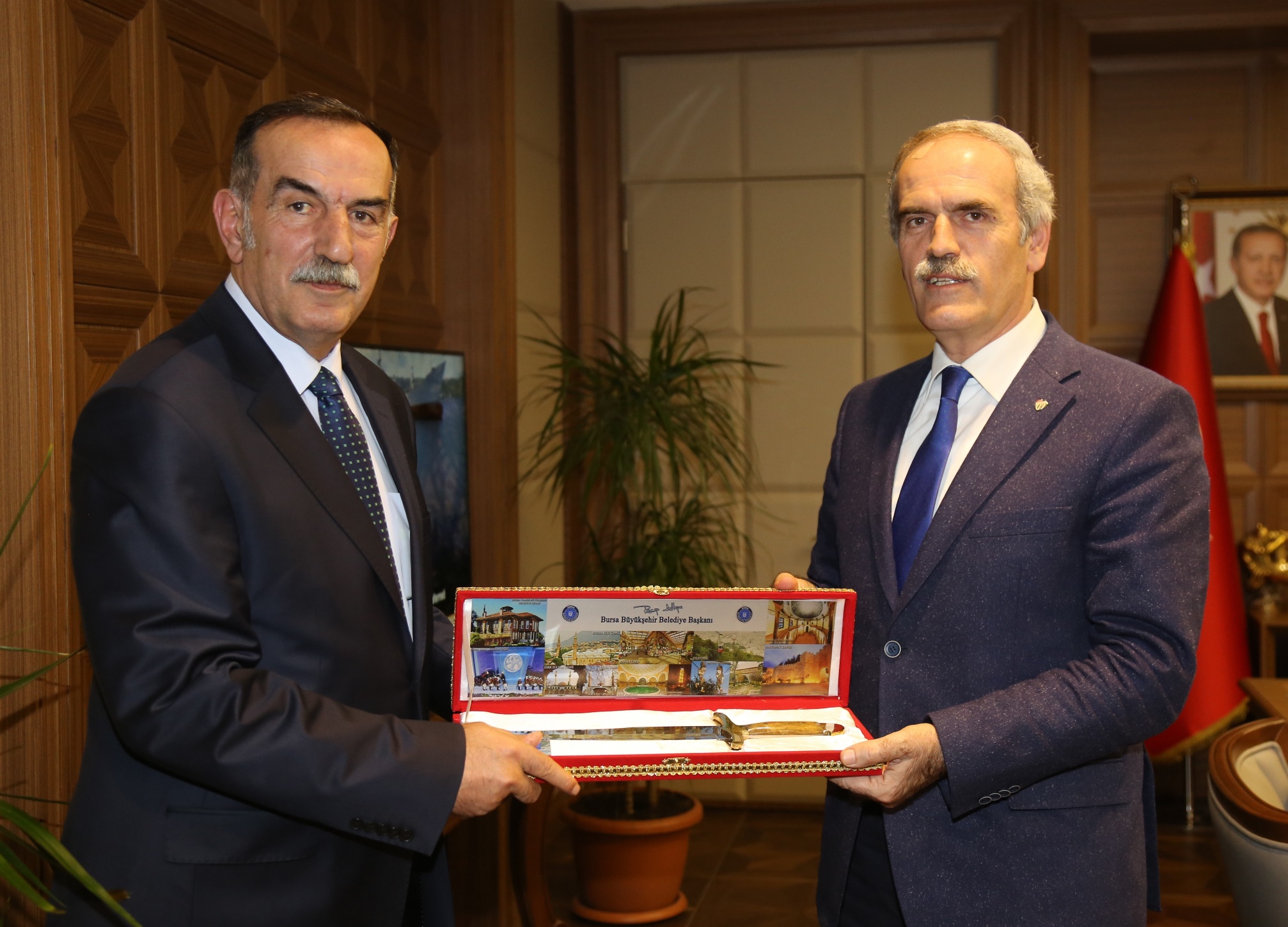 Başkan Altepe, Eceabat Belediye Başkanı Adem Ejder’i ağırladı. Ankara yolunda yer alan yeni Büyükşehir Belediyesi binası başkanlık makamında gerçekleşen görüşmede, Bursa Büyükşehir Belediyesi’nin Gelibolu Kireçtepe’de yenilediği şehitlik ve 24 Nisan’da gerçekleşecek programın detayları konuşuldu.