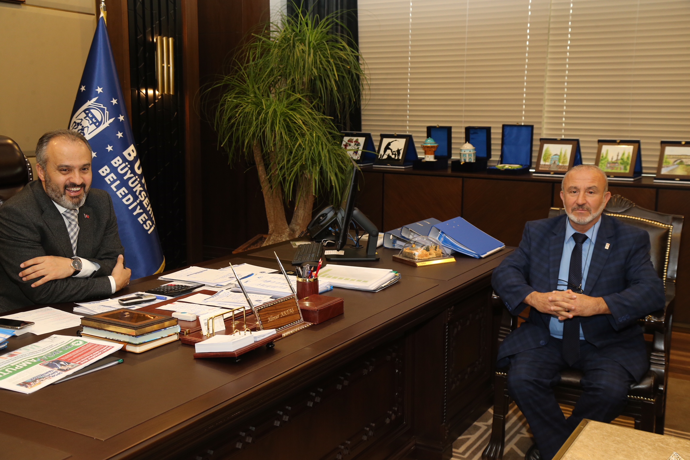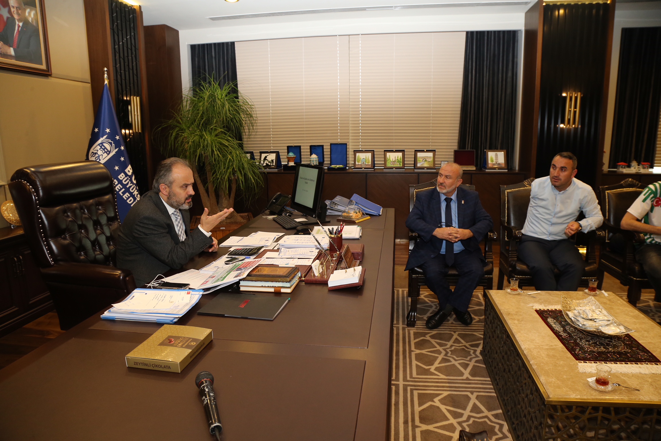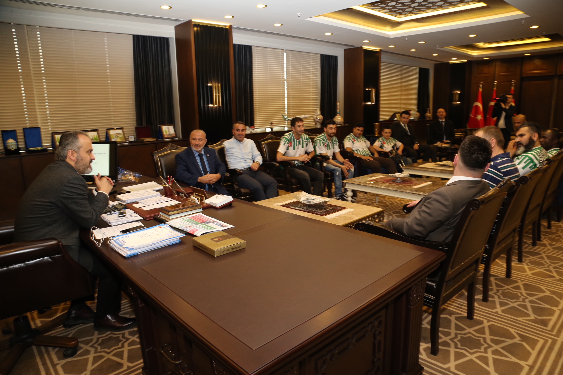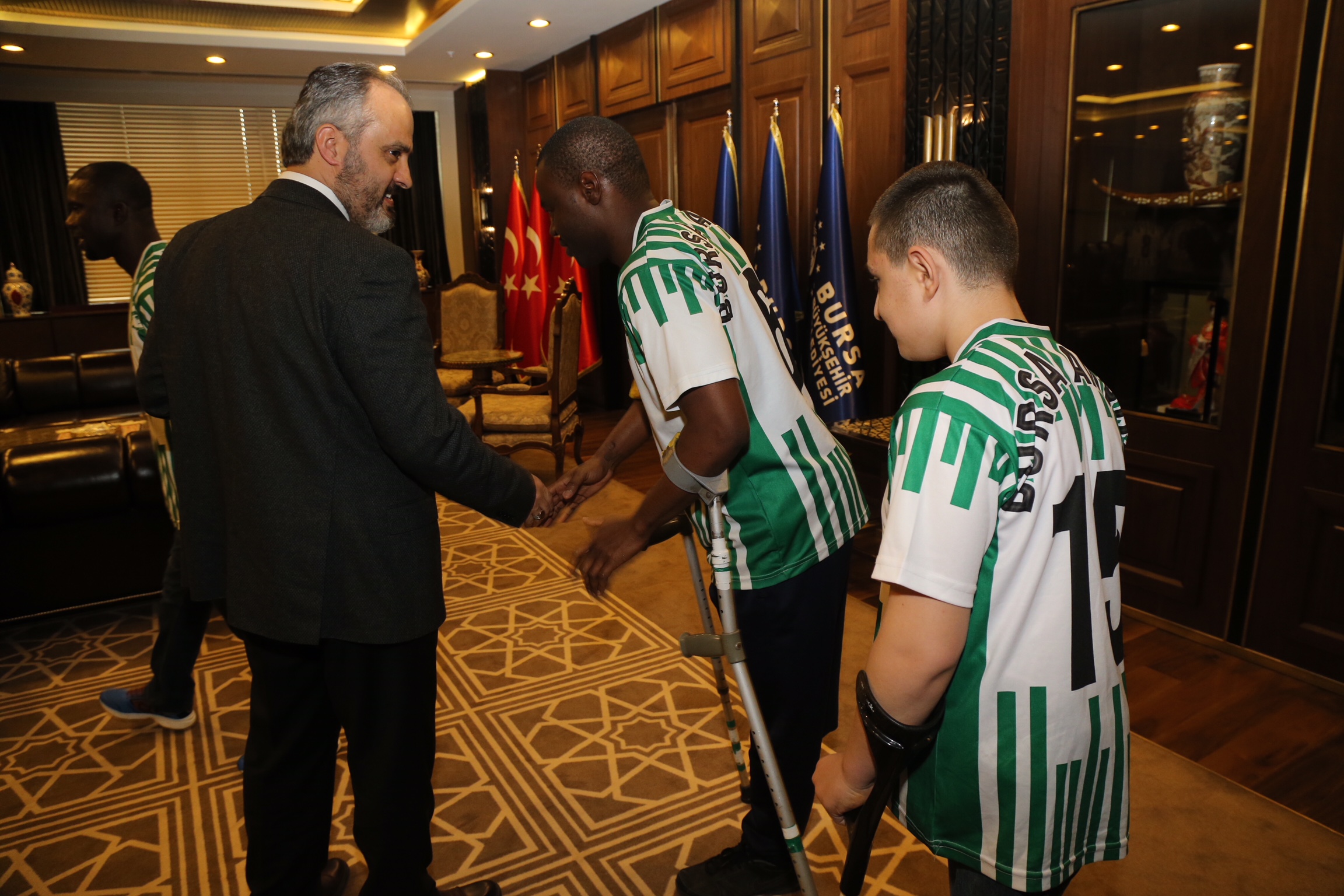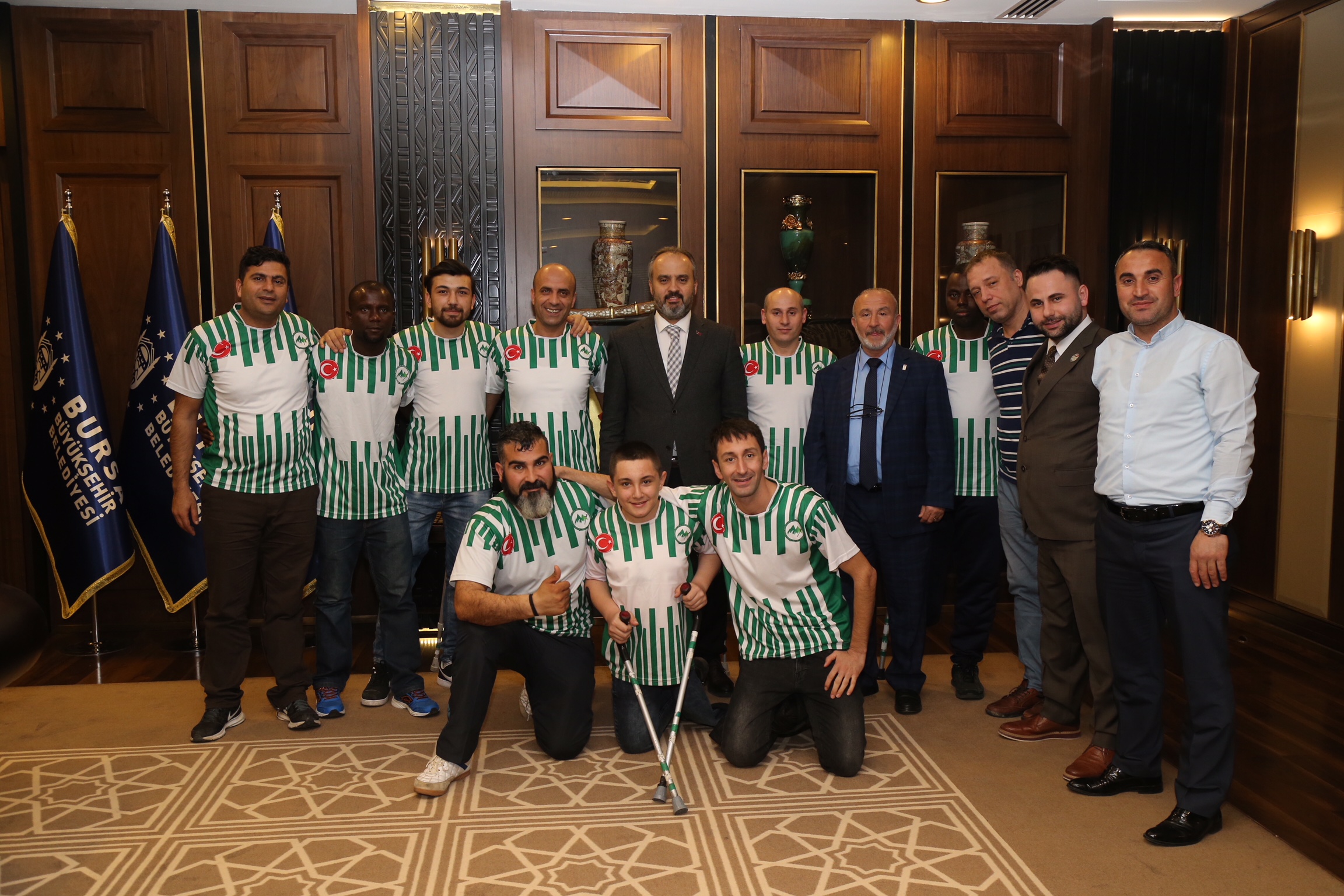 Büyükşehir Belediyesi başkanlık makamında yapılan görüşmeye, Bursa Ampute Gücü Spor Kulübü Başkanı Faruk Kuzu ile oyuncular katıldı.