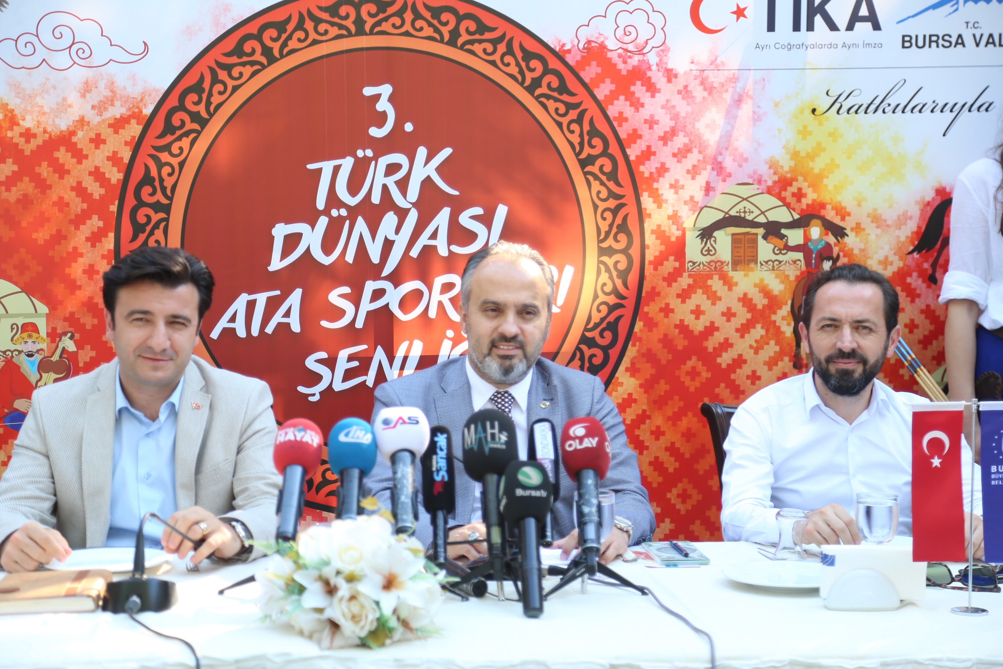 Büyükşehir Belediye Başkanı Alinur Aktaş, etkinlikle ilgili detay bilgileri ‘Merinos Gönül Dostları Sofrası’nda düzenlediği basın toplantısıyla’ gazetecilerle paylaştı. Türk Dünyası Ata Sporları Şenliği'nin Bursa'ya ve Türk dünyasına hayırlı olmasını dileyen Büyükşehir Belediye Başkanı Alinur Aktaş, Osmanlı’yı kuran ve cihan imparatorluğuna 130 yıl başkentlik yapan Bursa’yı ‘tarih başkenti’ kimliğine yaraşır hala getirmek için çalıştıklarını söyledi. Türk halklarının gönül birlikteliğini ve kardeşliğini güçlendirmek, ortak Türk kültürünü gelecek nesillere aktarmak amacıyla Türk Dünyası Ata Sporları Şenliği'ni düzenlediklerini belirten Başkan Alinur Aktaş, 20 Temmuz 2018 Cuma günü saat 19:00’da Altıparmak Atatürk Stadyumu Meydanı’ndaki açılış programı dahilinde mehteran konseri, kılıç kalkan gösterisi, cirit, rahvan, atlı okçuluk, gökbörü, atlı akrobasi gösterisi ve halk dansları performansı sergileneceğini ifade etti.