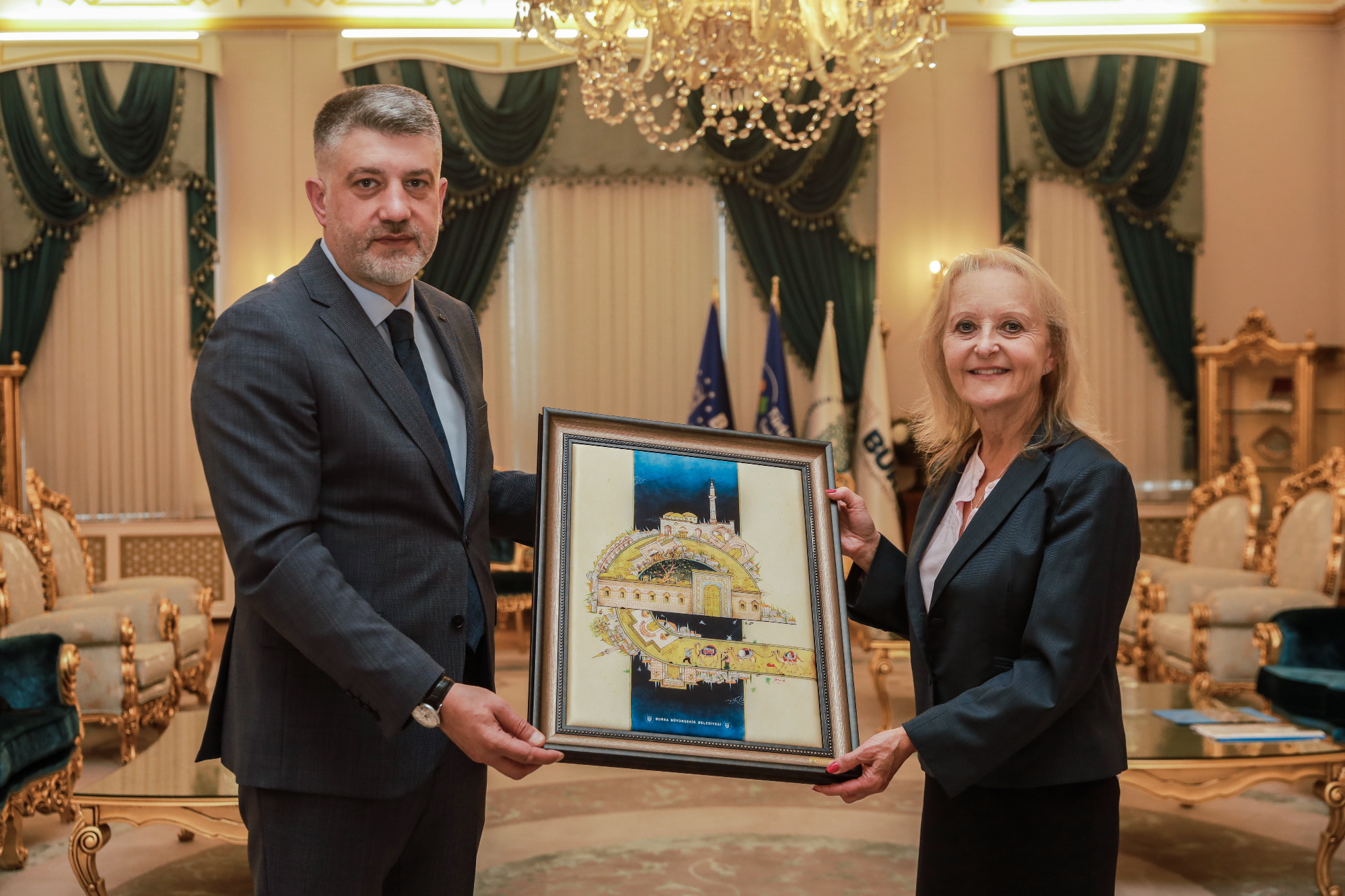 İmza töreninin ardından Bursa Büyükşehir Belediyesi Genel Sekreteri Ulaş Akhan, Avrupa İmar ve Kalkınma Bankası Altyapı Sektörü, Türkiye, Orta Doğu ve Afrika Direktörü Sue Barrett’e Bursa’nın değerlerinin yer aldığı ipek tablo hediye etti.