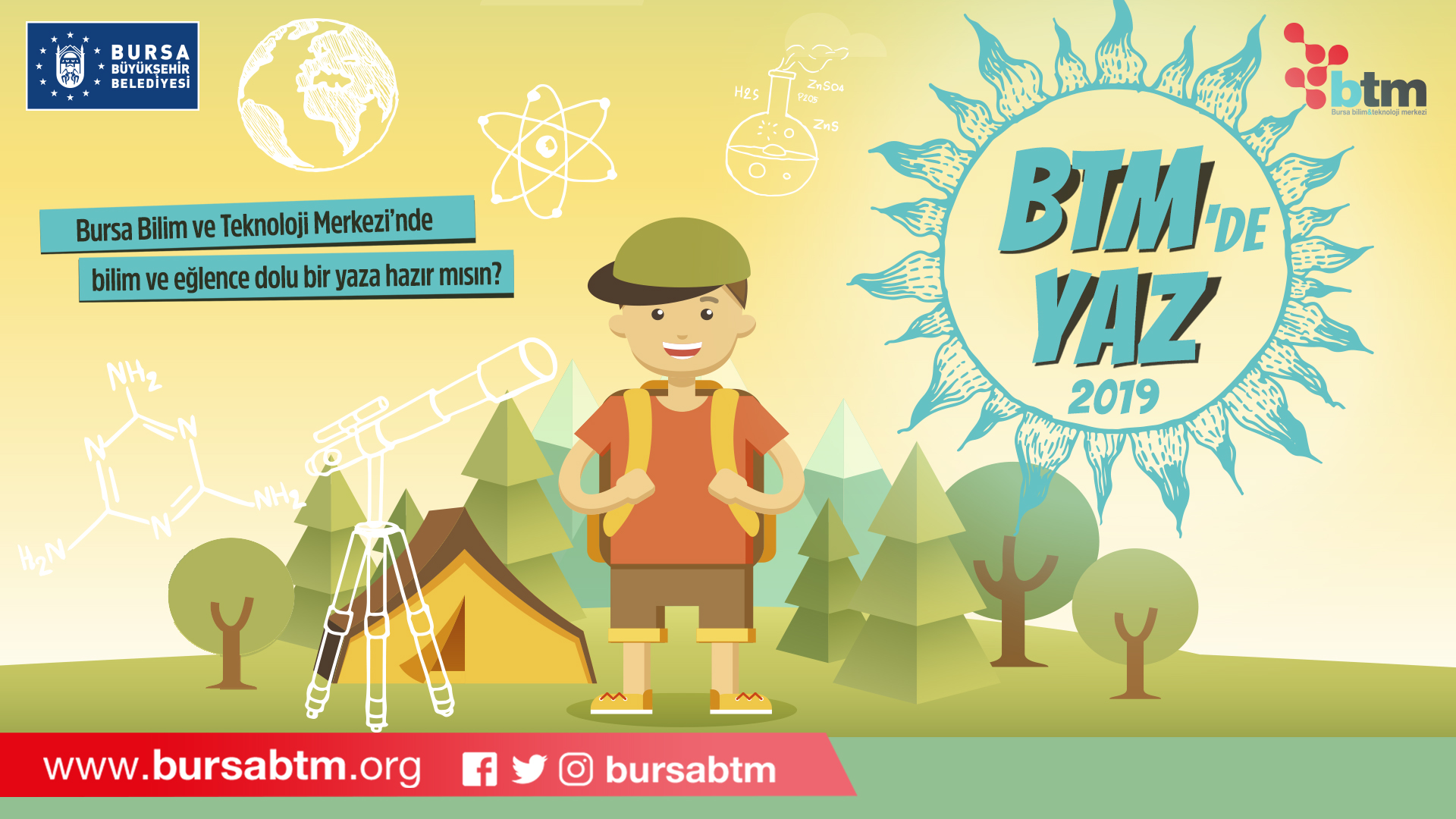 Bursa BTM tarafından Uludağ’da gerçekleştirilen "Doğa ve Bilim Kampları" bu yazın doğayla iç içe, en eğlenceli bilim etkinliklerinden biri… Her yıl geleneksel hale gelen Türkiye'nin sayılı gökyüzü gözlem festivali ASTROFEST ise aklı gece gündüz bilimde olanları zirvede buluşturacak. 19-20-21 Temmuz tarihlerinde Uludağ'da gerçekleşecek olan etkinlikte teleskopla gökyüzü gözlemleri, eğitimler, söyleşiler, atölyeler, doğa yürüyüşleri ve konserler yer alacak. BTM'nin geleneksel hale getirdiği "Hasip Sönmezalp Gökyüzü Gözlem Etkinlikleri" bu yaz da devam edecek. 21 Haziran ve 7 Temmuz tarihlerinde, Hüdavendigar Parkı'nda gerçekleşecek olan etkinliklerde Bursalılar teleskopla gökyüzünü inceleme fırsatı bulacaklar.