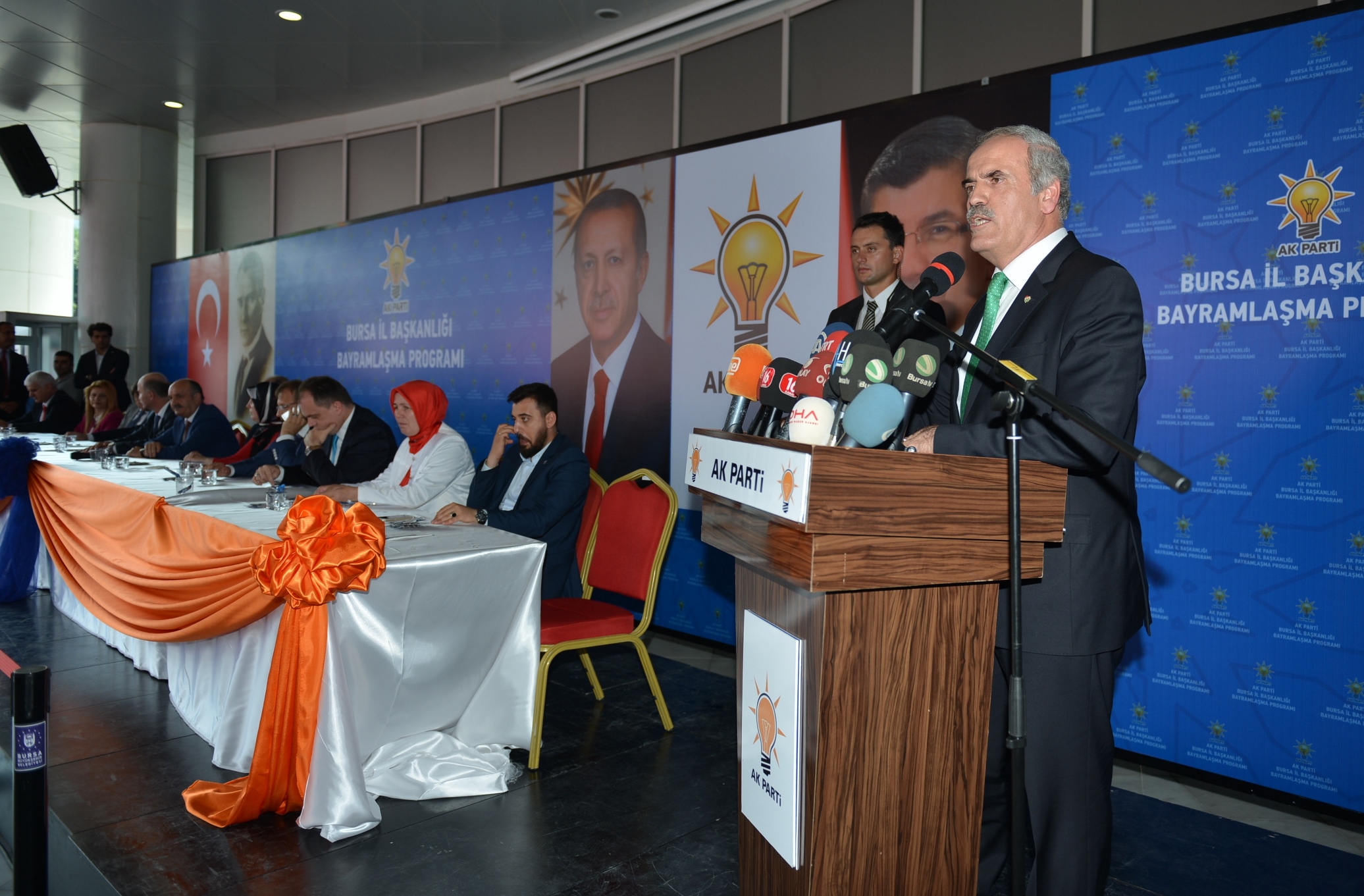 Teşkilat mensuplarının yoğun ilgi gösterdiği bayramlaşma töreni, Sağlık Bakanı Mehmet Müezzinoğlu, İçişleri eski Bakanı Efkan Ala ve Bursa Büyükşehir Belediye Başkanı Recep Altepe’nin katılımıyla Merinos Atatürk Kongre ve Kültür Merkezi’nde yapıldı.