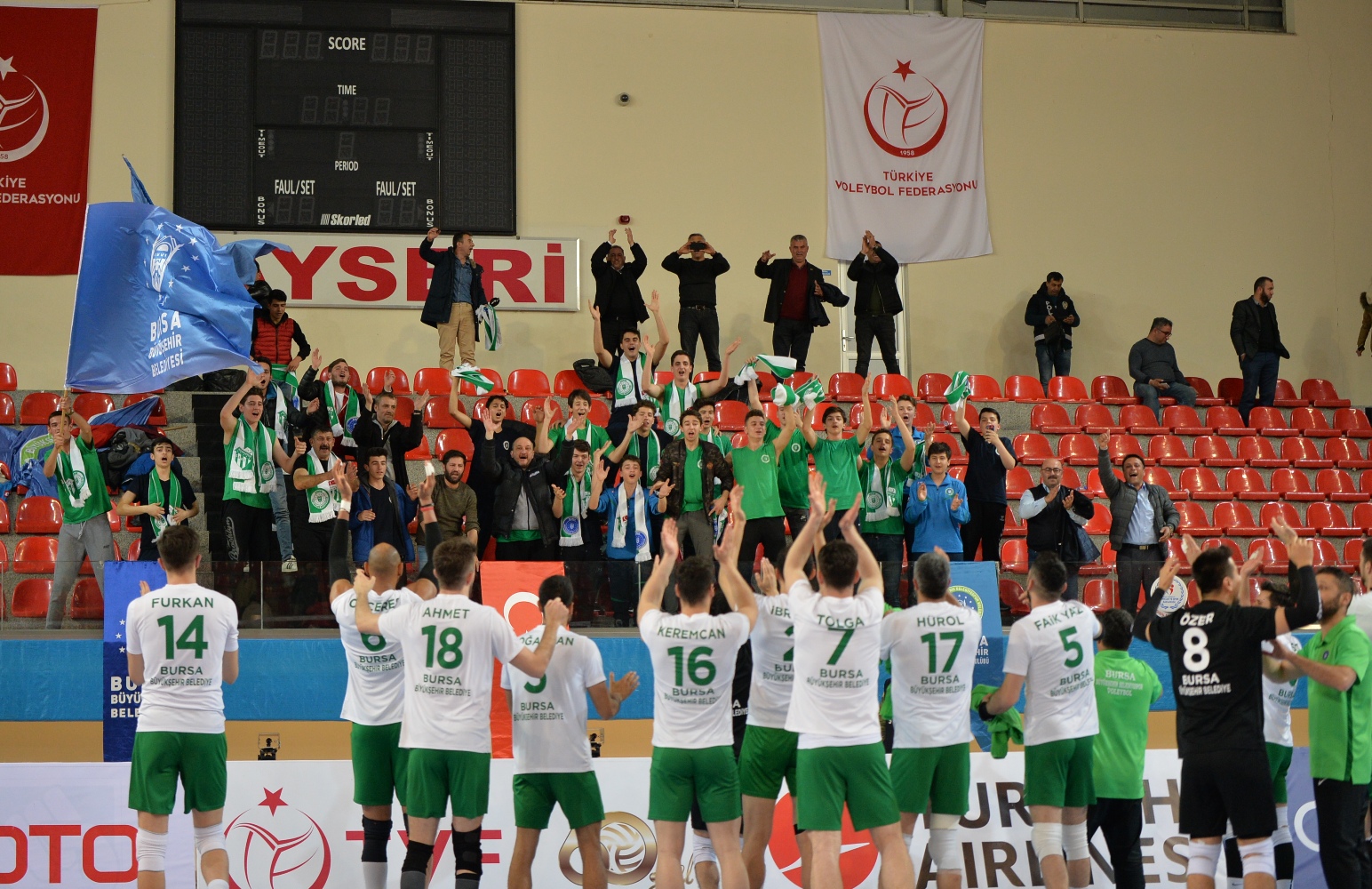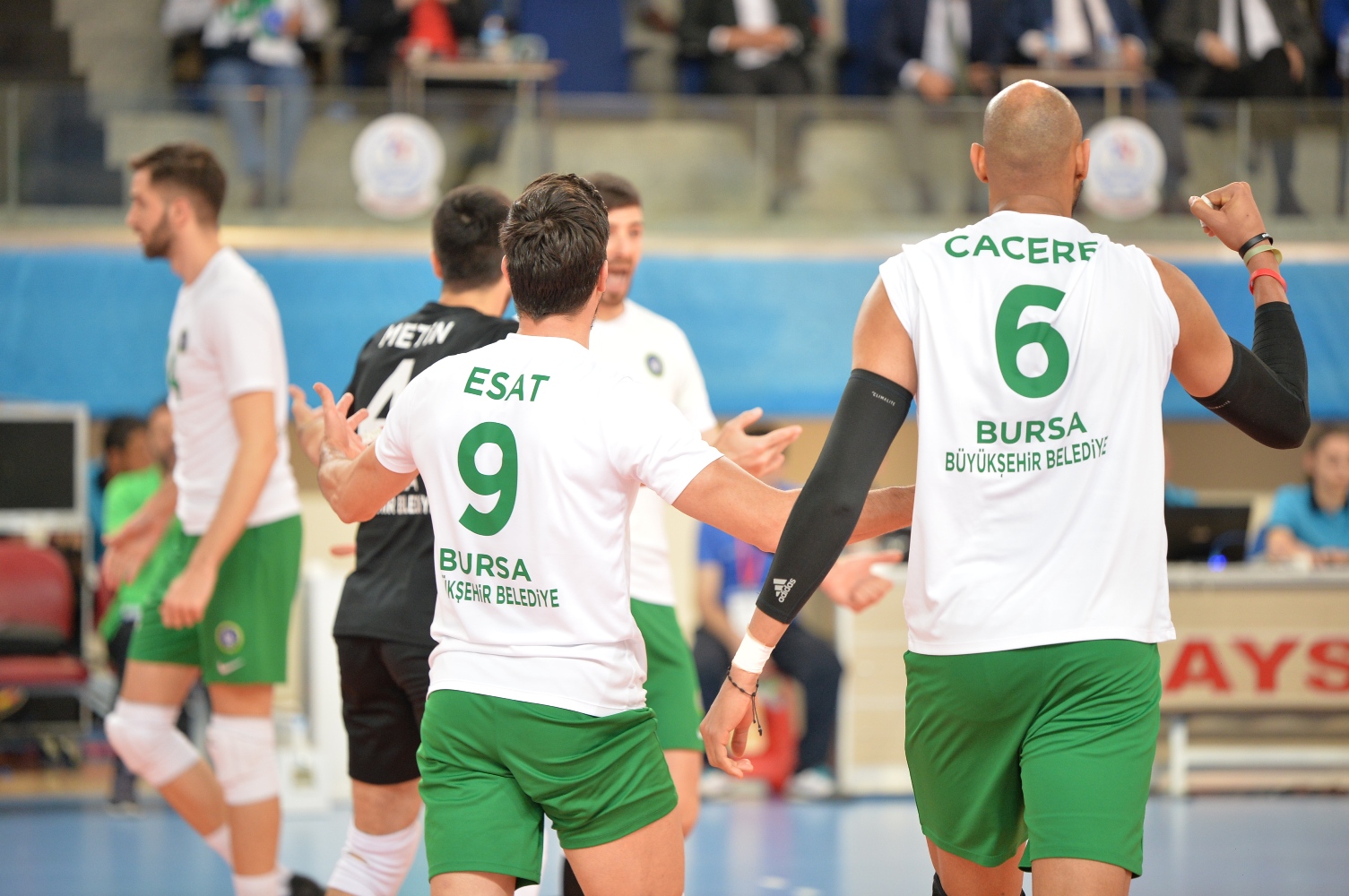 Bu sezon ‘Efeler Ligi’ne yükselmek isteyen Bursa Büyükşehir Belediyespor Erkek Voleybol Takımı, TVF Erkekler Birinci Ligi final etabı ikinci maçında Sorgun Belediyespor ile karşılaştı. Kayseri Atatürk Spor Salonu’nda oynanan karşılaşmada yeşil-beyazlılar kötü başladığı ilk seti 25-17 geride tamamladı. Uzun süre başa baş geçen maçın ikinci setinde Metodi’nin köşeden bulduğu sayılarla farkı açmayı bilen Bursa ekibi, seti 25-22 önde tamamladı ve durumu 1-1’e getirdi. Maçın üçüncü setinde istediği oyunu sergileyemeyen Büyükşehir Belediyespor’da antrenör Bahadır Aksoy, Keremcan, Faik ve Boğaçhan’ı oyuna sürdü. 12-17’den skoru 20-19 getiren yeşil-beyazlılar üstünlüğü koruyamadı ve seti 25-23 geride tamamladı (1-2). Bursa Büyükşehir Belediyespor maçın dördüncü setine kötü başlayan taraf oldu. Rakip Sorgun Belediyespor’un 5-0’lık serisinin ardından Metodi ve Caceres’in yeniden oyuna dönmesiyle hücumda etkili taraf Bursa ekibi oldu ve seti 25-19 önde geçerek durumu yeniden eşitledi (2-2 ). Kıran kırana geçen uzatma setini önde bitiren 15-12 ile yeşil-beyazlılar oldu ve maçtan 3-2 galip ayrılırken 2 puanın da sahibi oldu.