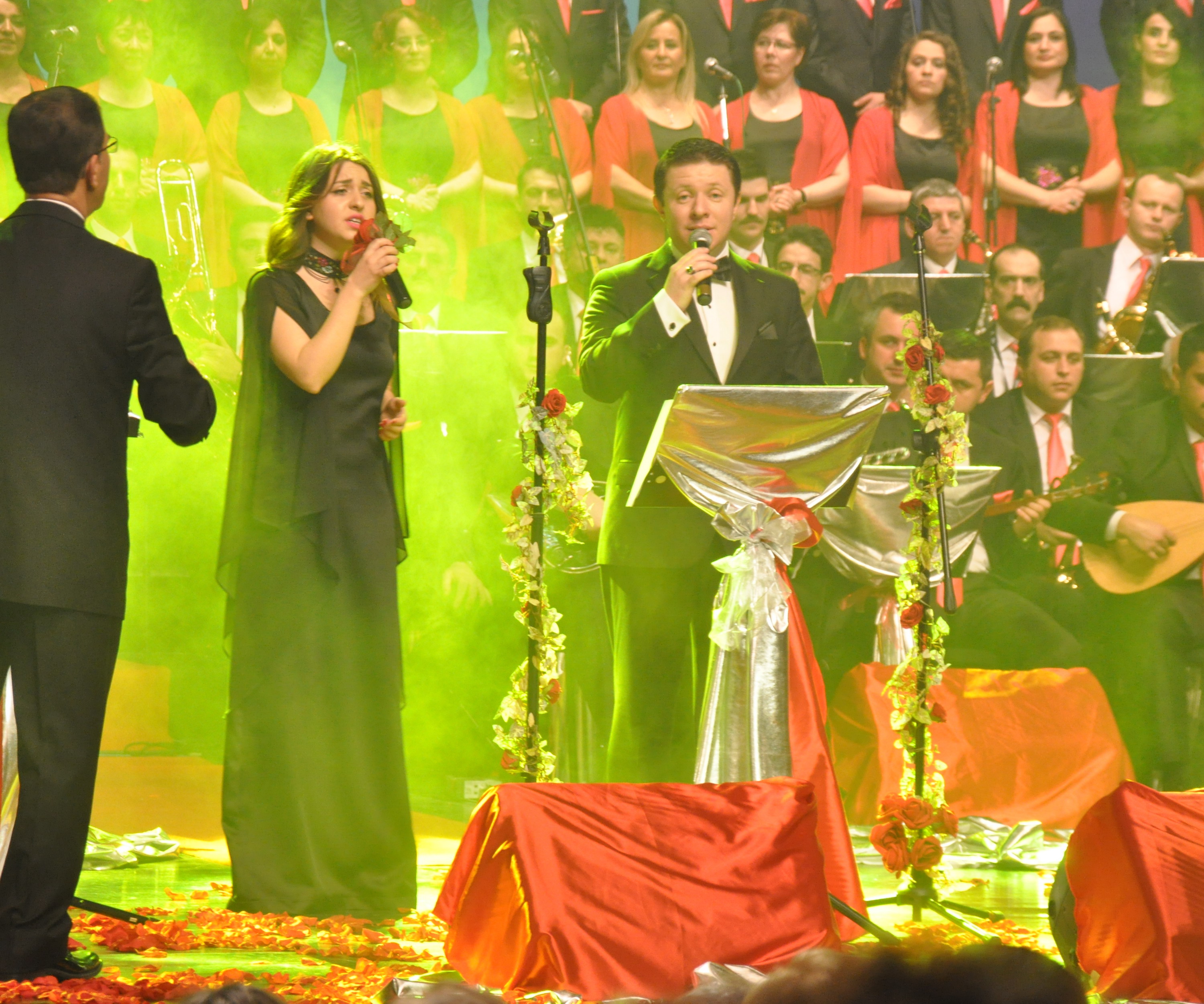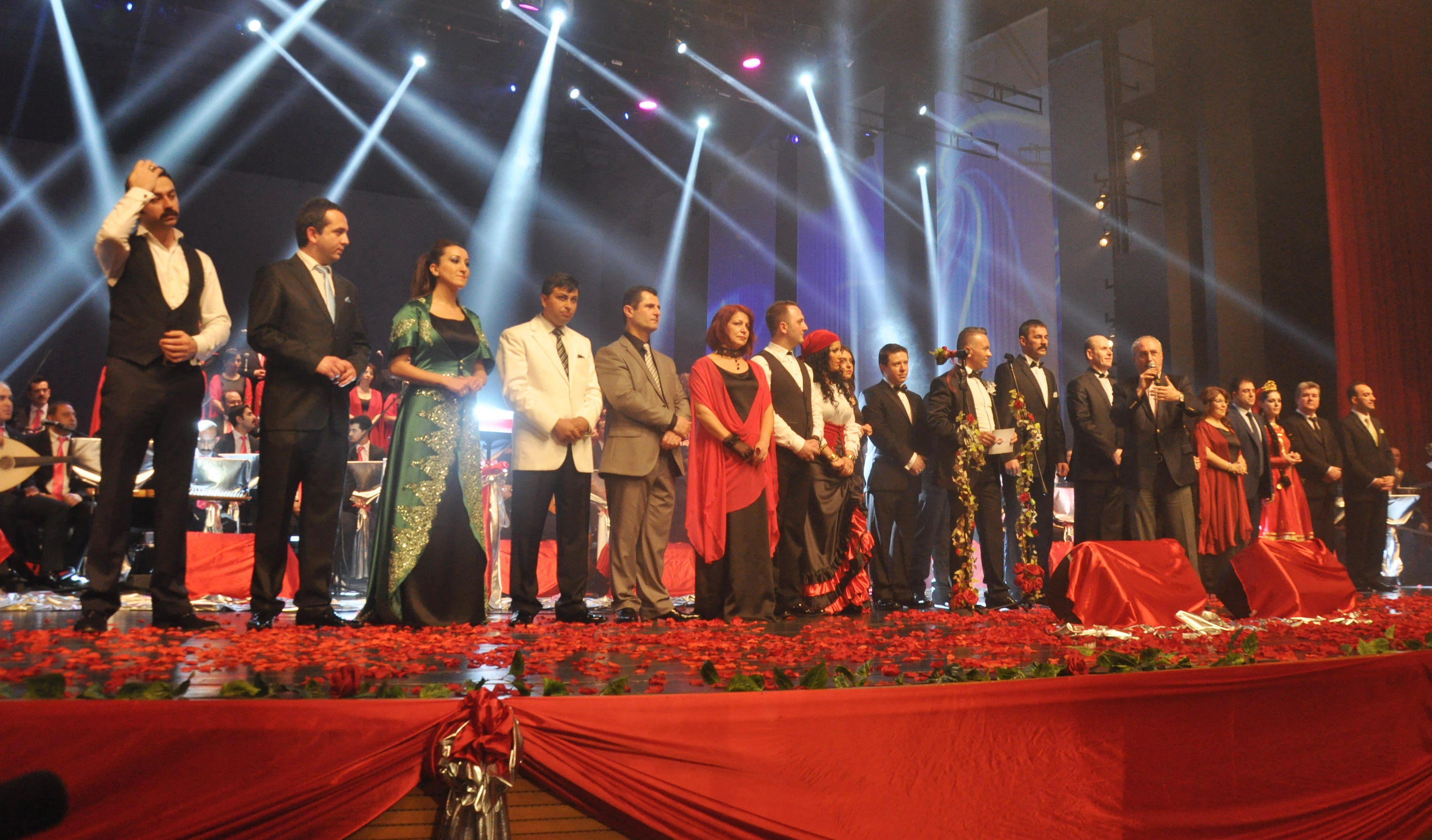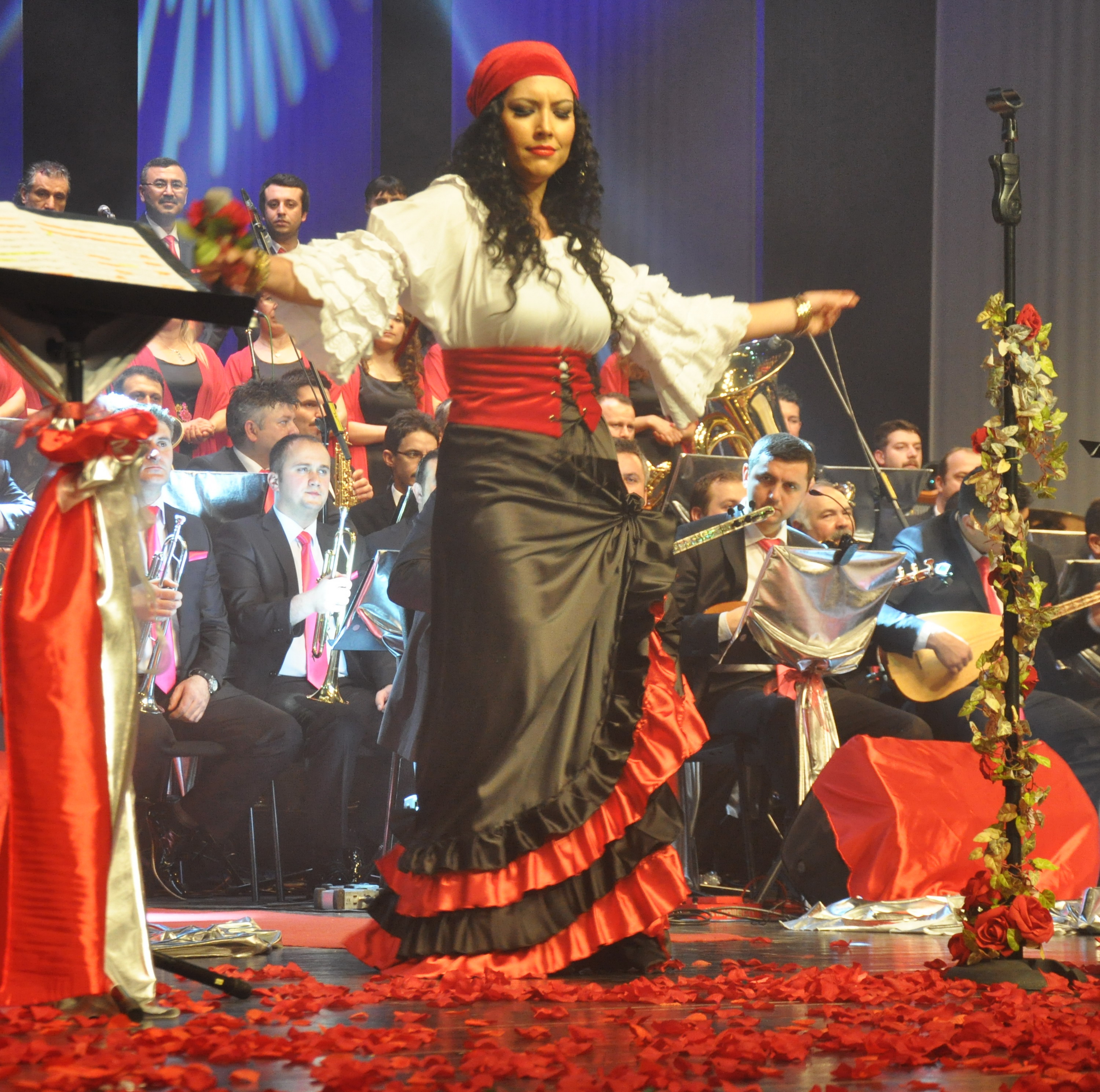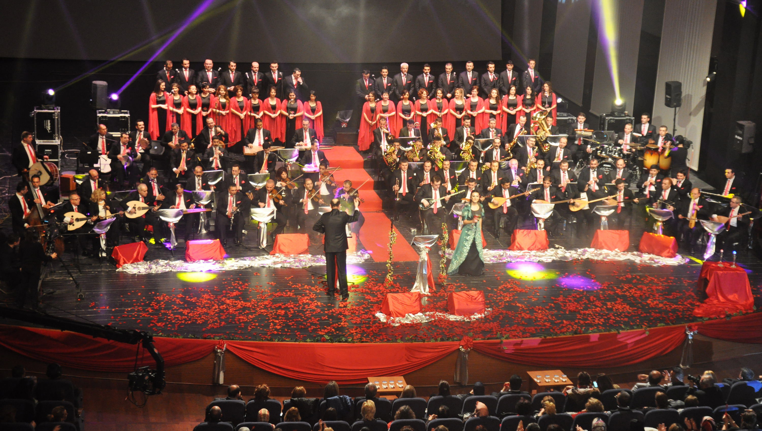 Bursa Büyükşehir Belediyesi Orkestra Şube Müdürlüğü’nün Türk Sanat Müziği, Türk Halk Müziği, Bando bölümleri ile Çalgıcı Mektebi Roman Orkestrası’ndan oluşan 130 kişilik dev kadro, 14 Şubat Sevgililer Günü dolayısıyla Atatürk Kongre Kültür Merkezi (Merinos AKKM) Osmangazi Salonu’nda özel bir konser verdi. Sanatçıların, aşkın rengi kabul edilen kırmızı ton ağırlıklı sahne aldığı geceye, Bursalılar ilgi gösterdi. TRT’den canlı yayınlanan ve eserlerin solo ve koro olarak seslendirildiği konserde, ağırlıklı olarak romantik parçalar okundu. Gecede dinleyicileri kimi zaman hüzünlendiren sanatçılar, kimi zaman da eğlenceli şarkılarla coşturdu. ‘Aşkın kanunu yazsam yeniden’ şarkısıyla konseri bitiren 130 kişilik dev kadro, sanatseverlerden büyük alkış aldı.