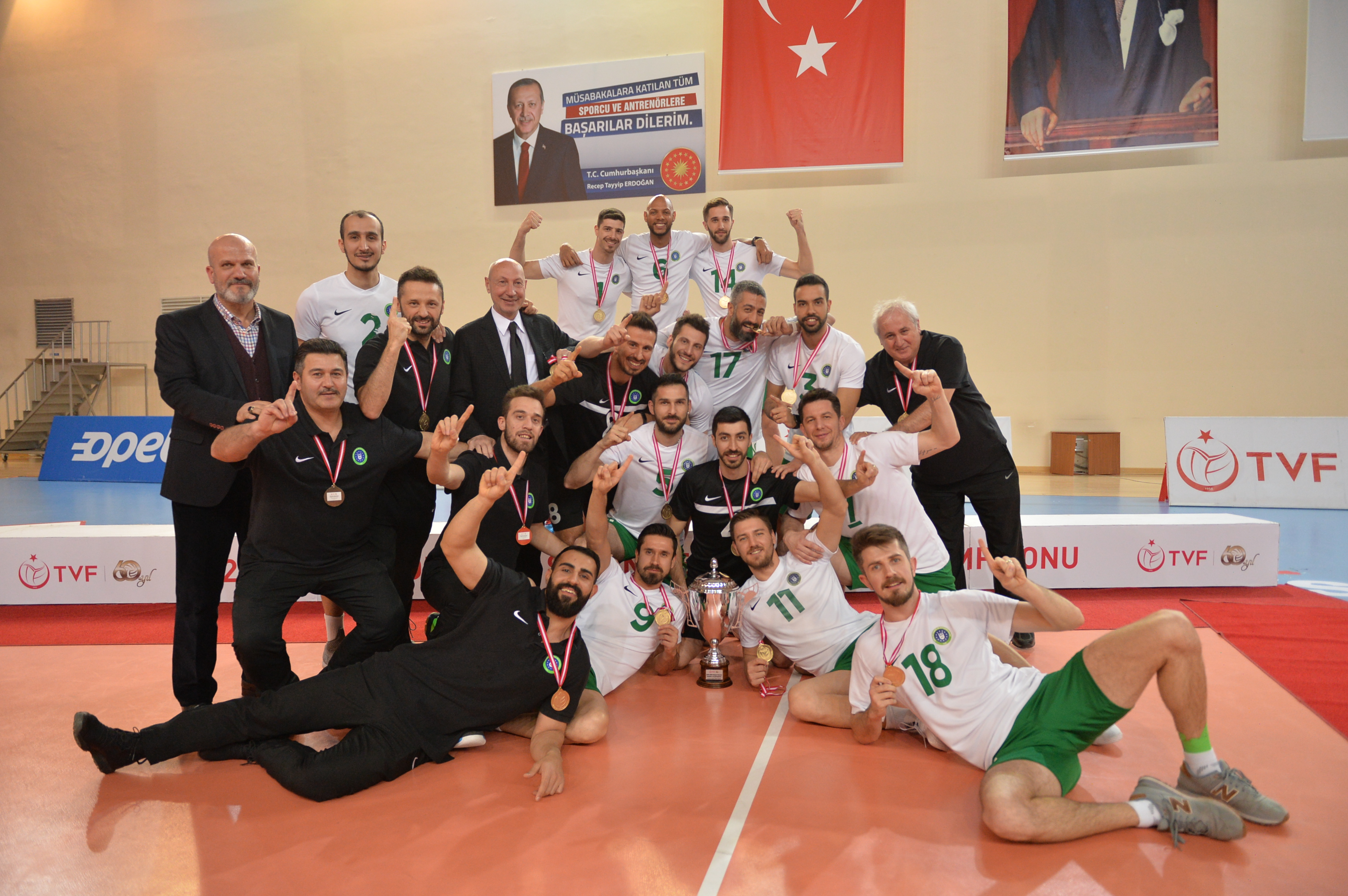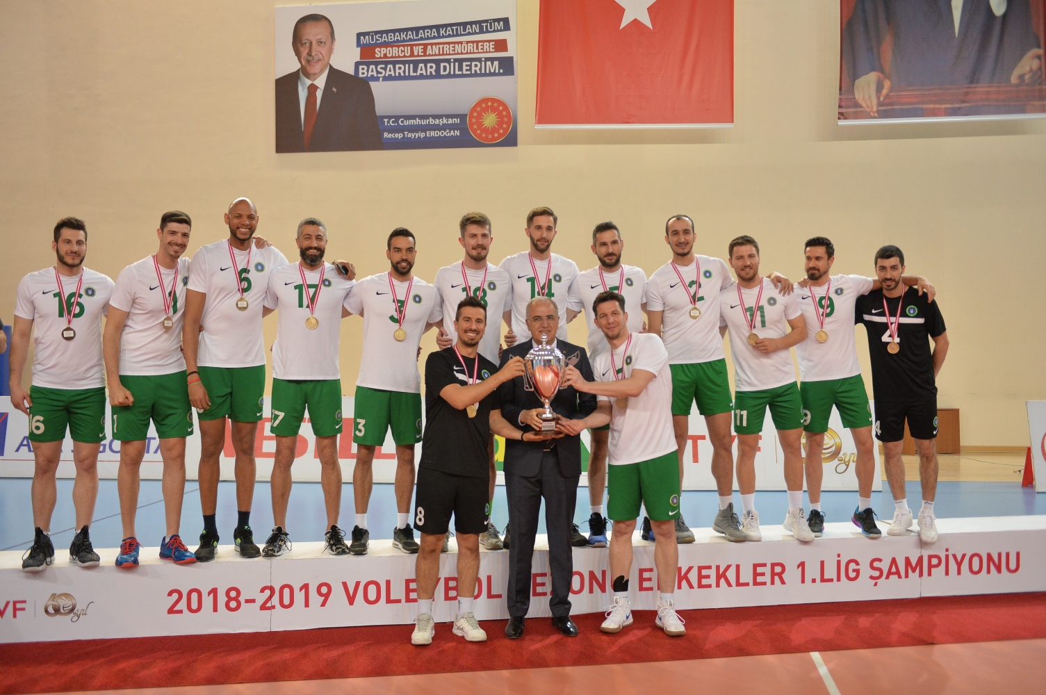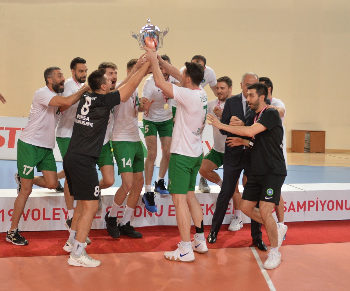 TVF Erkek Birinci Ligi’ni birinci olarak tamamlayan Bursa Büyükşehir Belediyespor Kulübü şampiyonluk kupasını Türkiye Voleybol Federasyonu Başkanı Mehmet Akif Üstündağ’ın elinden aldı.