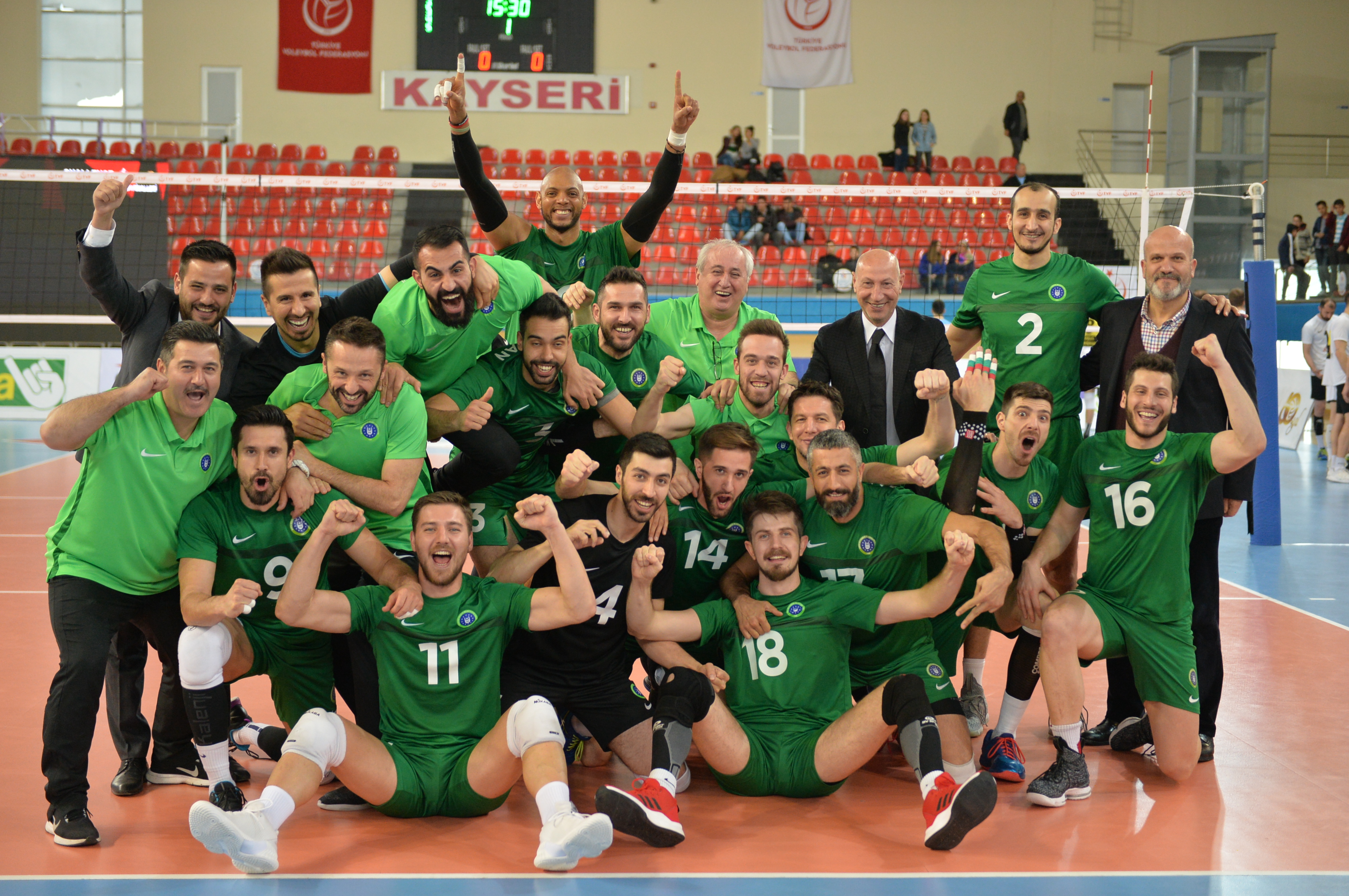 Bu sezon Efeler Ligi’ne yükselme hedefini bir maç kala garantileyen Bursa Büyükşehir Belediyespor Kulübü, play-off final etabı son maçında Palandöken Belediyesi ile karşılaştı. Kayseri Atatürk Spor Salonu’nda oynanan ve baştan sona yeşil-beyazlıların üstünlüğü ile geçen karşılaşmanın ilk setini Bursa ekibi 25-19 önde tamamladı. Kıran kırana geçen maçın ikinci setinde 23-19 geriye düşen Büyükşehir Belediyespor, tecrübeli antrenör Bahadır Aksoy’un yaptığı değişiklerle seti önce 24-24’e getirdi, ardından 28-26 önde geçerek durumu 2-0 yaptı. Maçın son setinde de rakibine önde bitirme şansı tanımayan Bursa temsilcisi bu seti de 25-23 geçerek maçtan 3-0 galip ayrıldı. Bu sonuçla play-off final etabında 8 puana ulaşan yeşil-beyazlılar TVF Erkekler Birinci Ligi’ni şampiyon olarak tamamladı.
