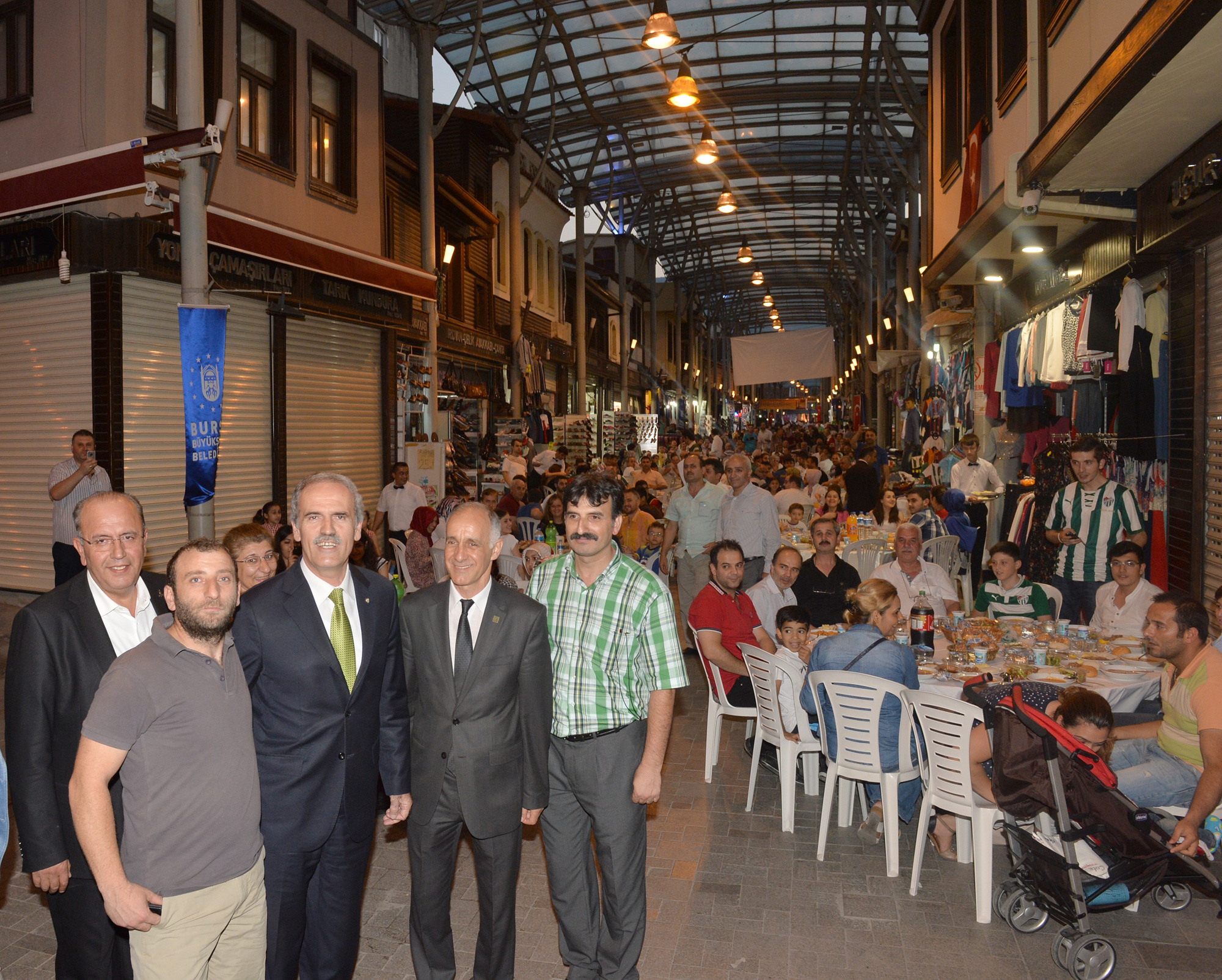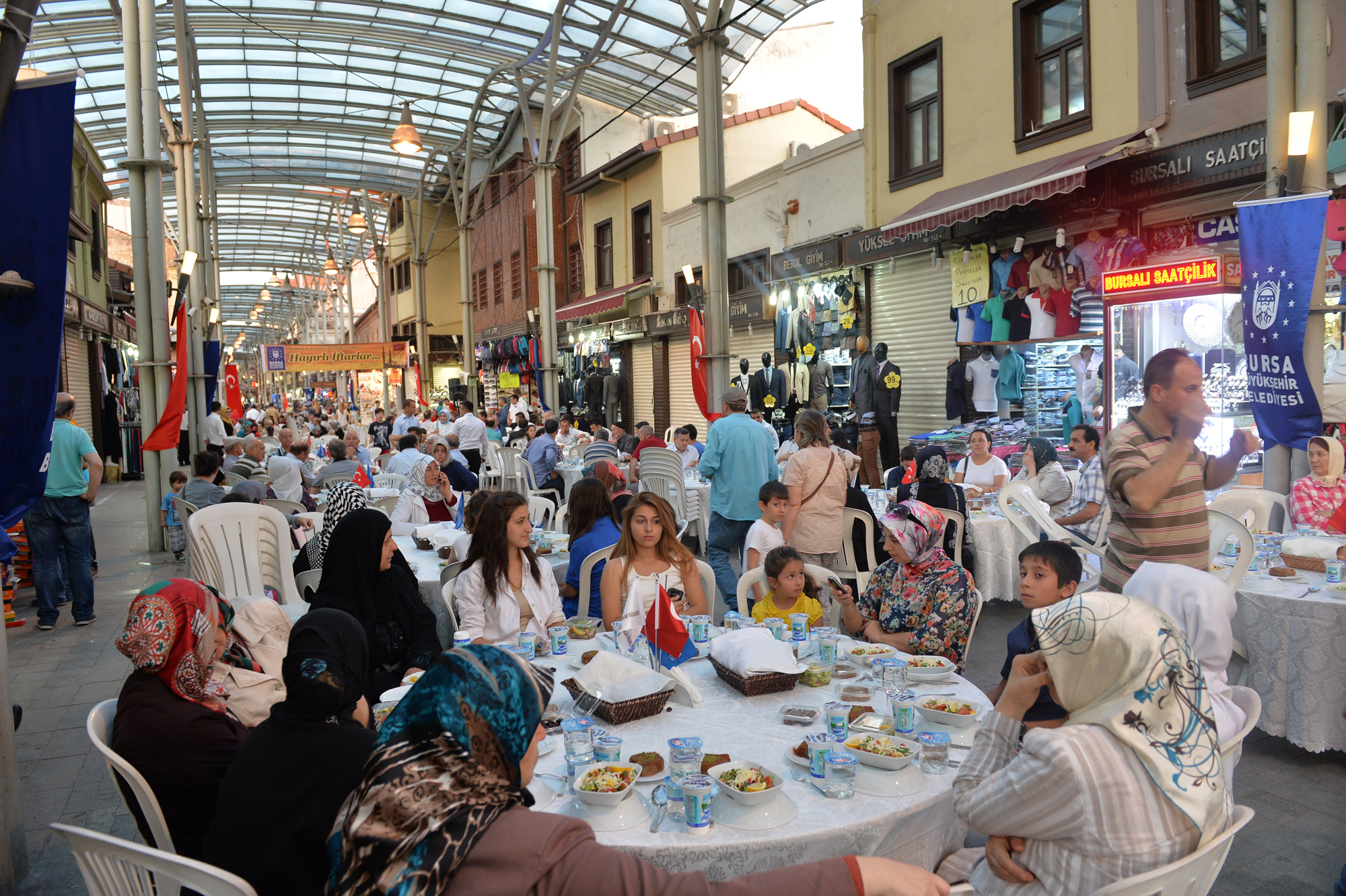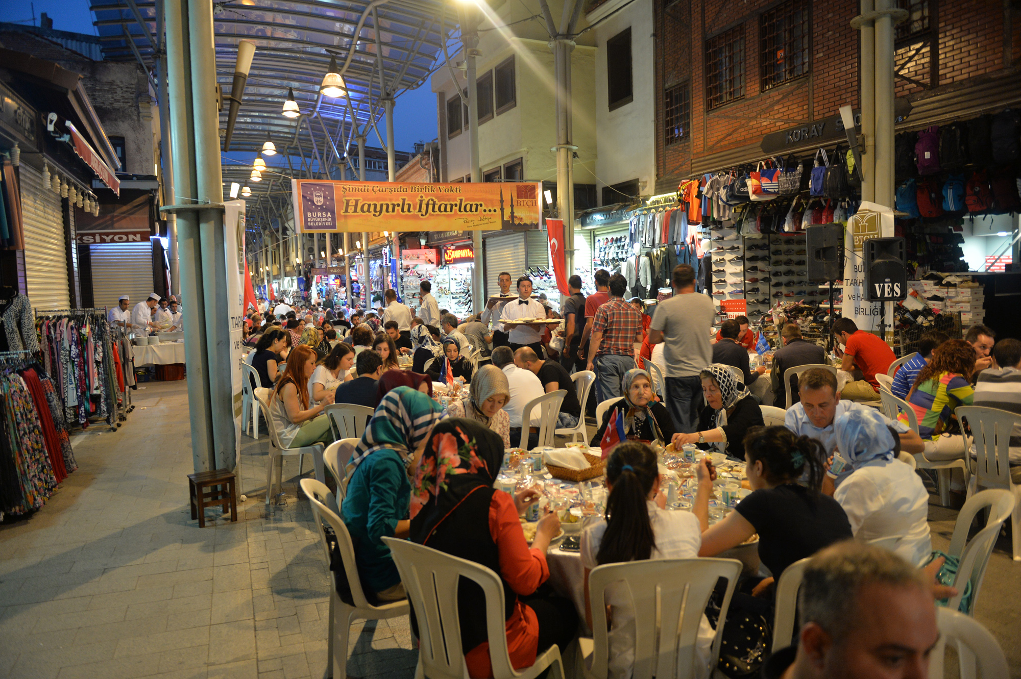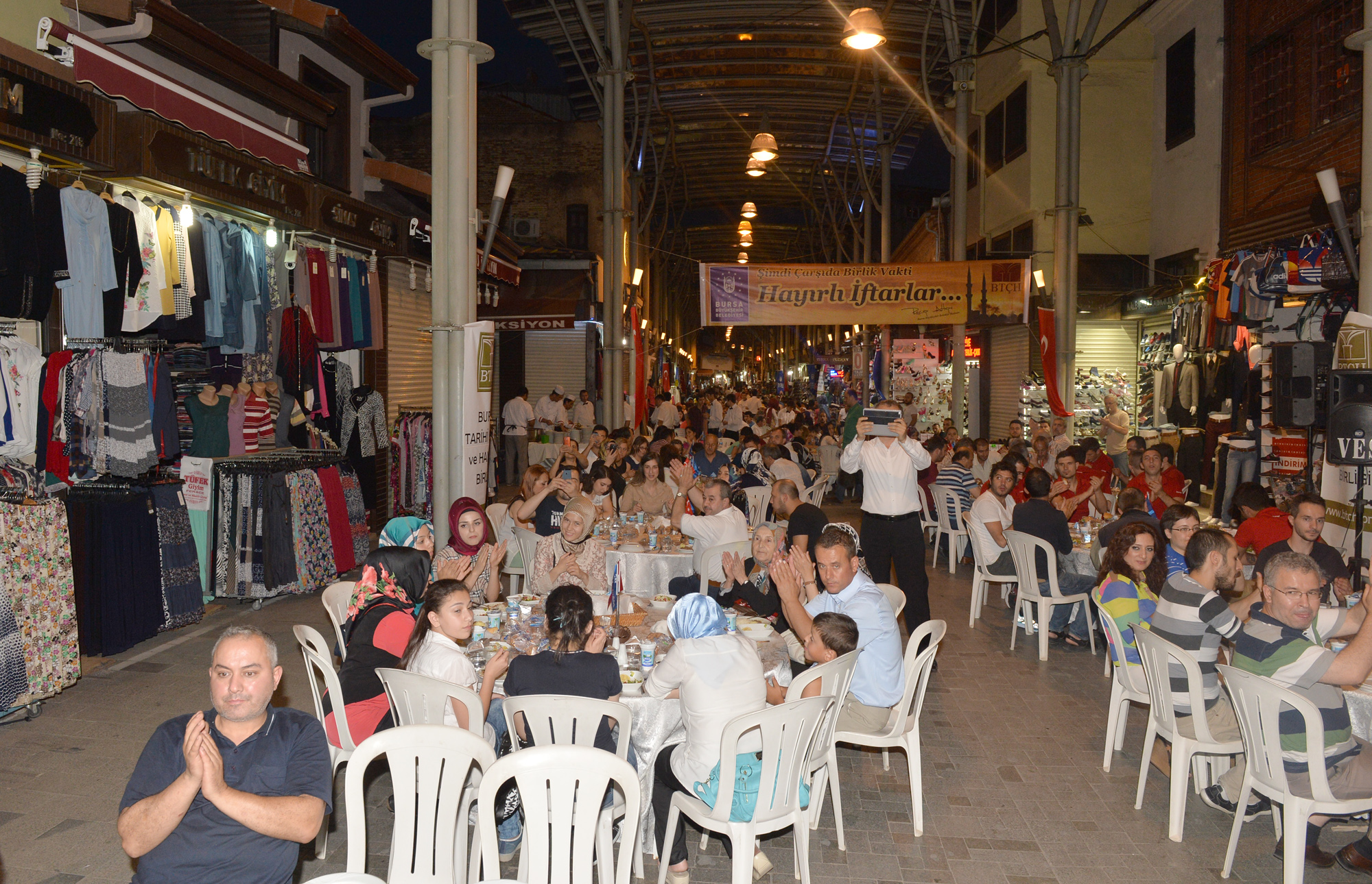 - Büyükşehir Belediyesi ve Bursa Tarihi Çarşı ve Hanlar Bölgesi Birliği tarafından Bursa Çarsısı’nda; Okçular, Uzun Çarşı, Tuz Pazarı, Kapalı Çarşı ve Bakırcılar Çarşısı’nın bulunduğu 750 metrelik hat boyunca düzenlenen iftara, 40 çarşının esnafı ve vatandaşlar olmak üzere yaklaşık 6 bin kişi katıldı.
