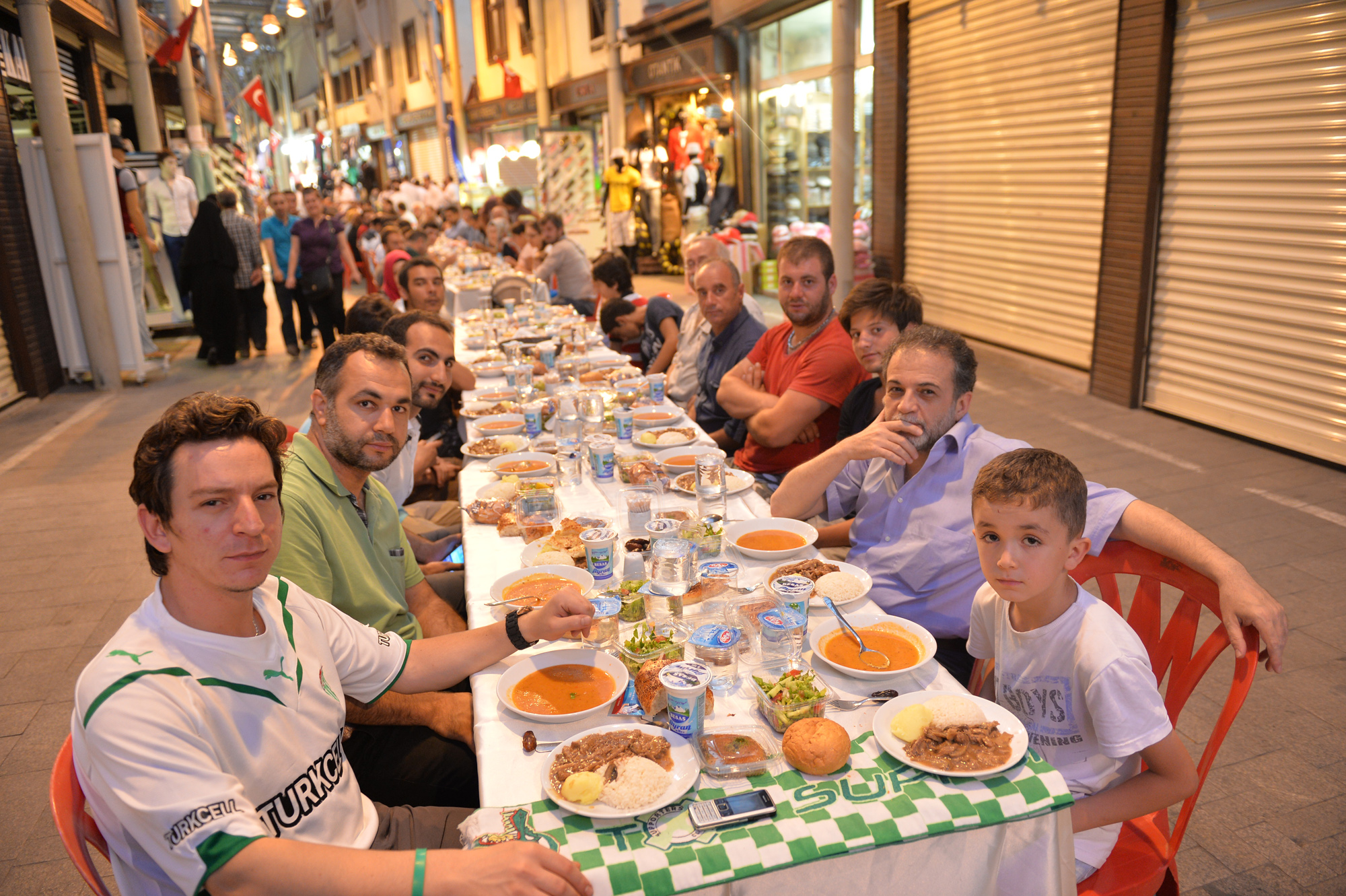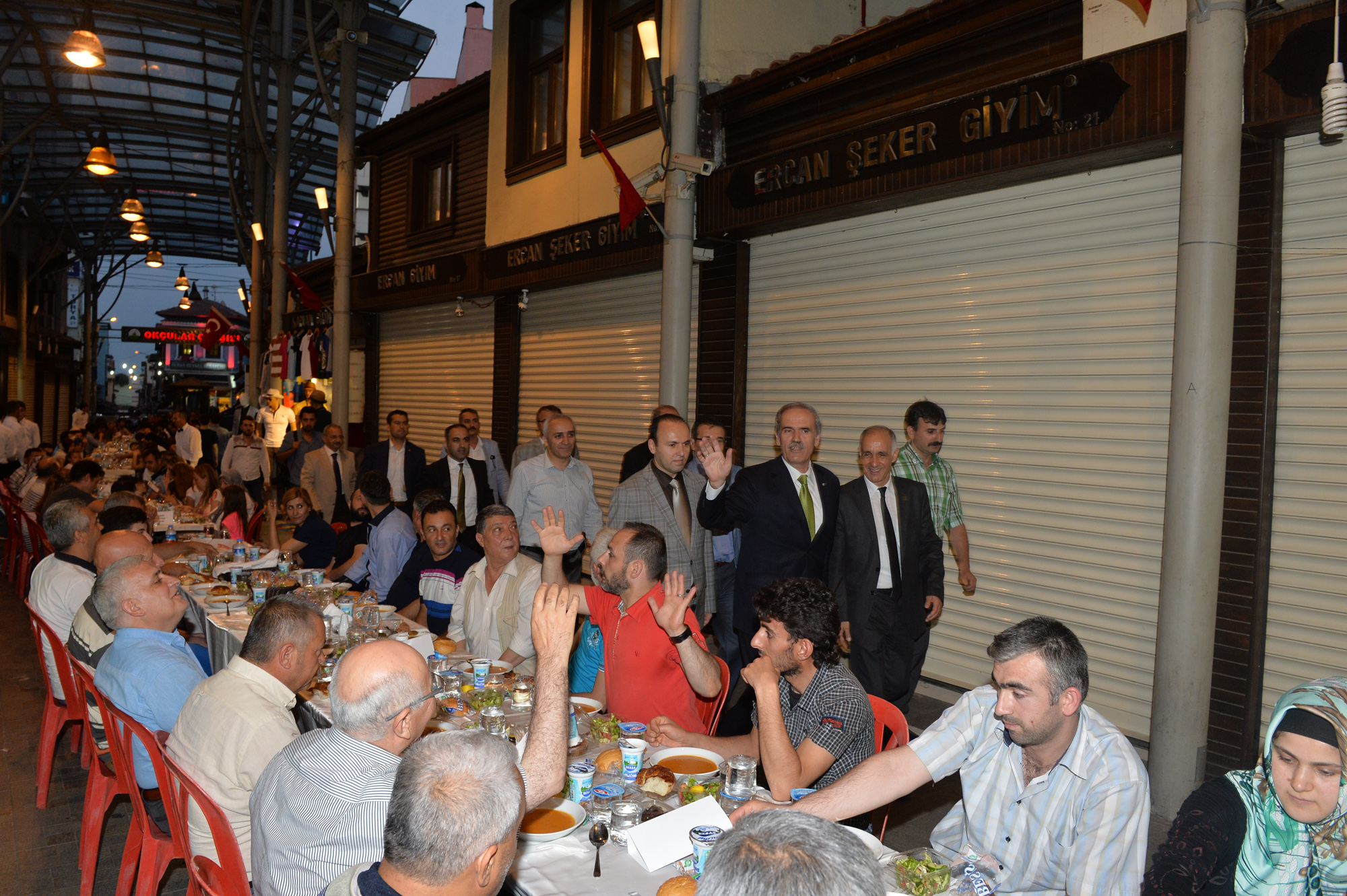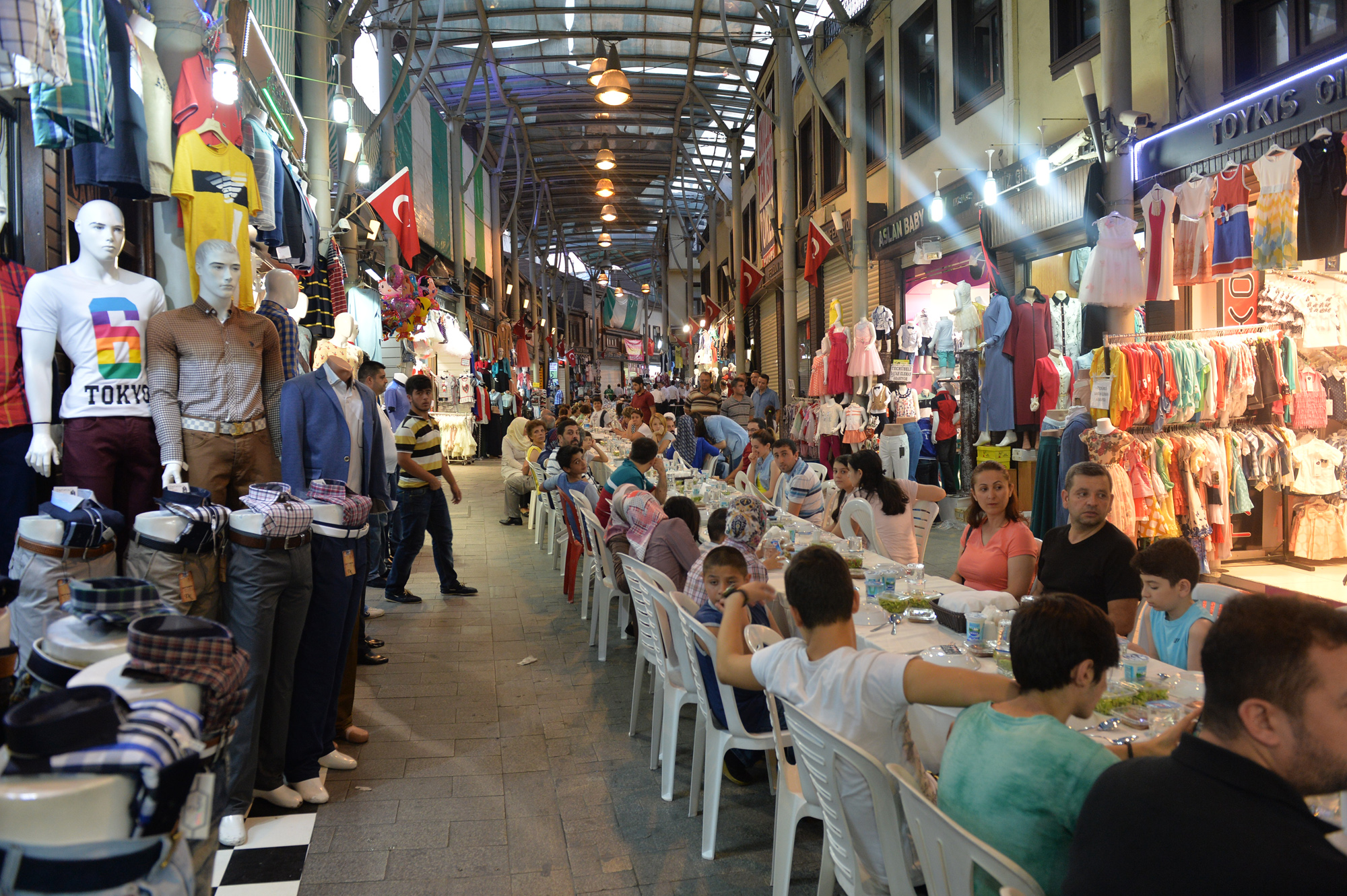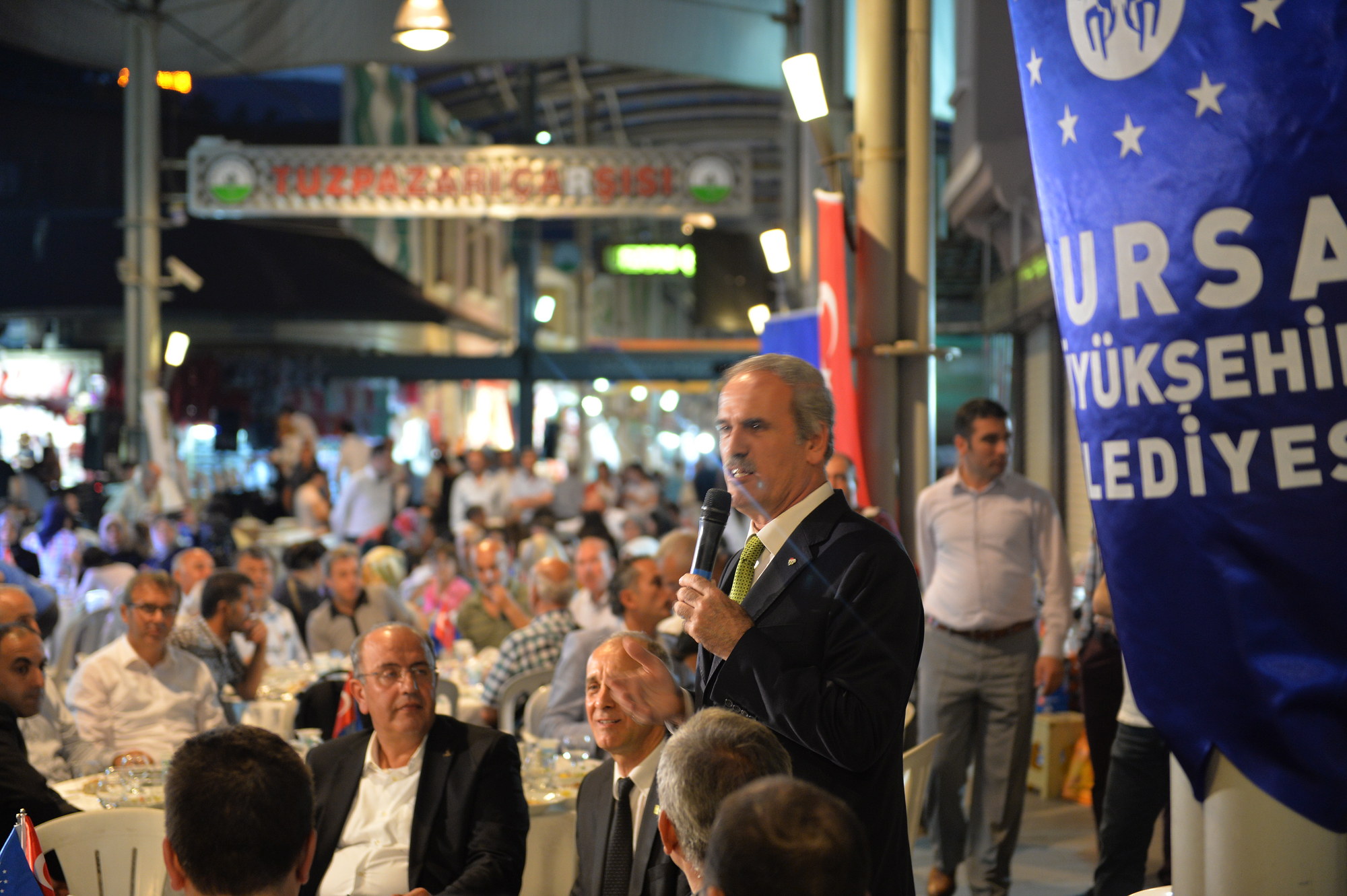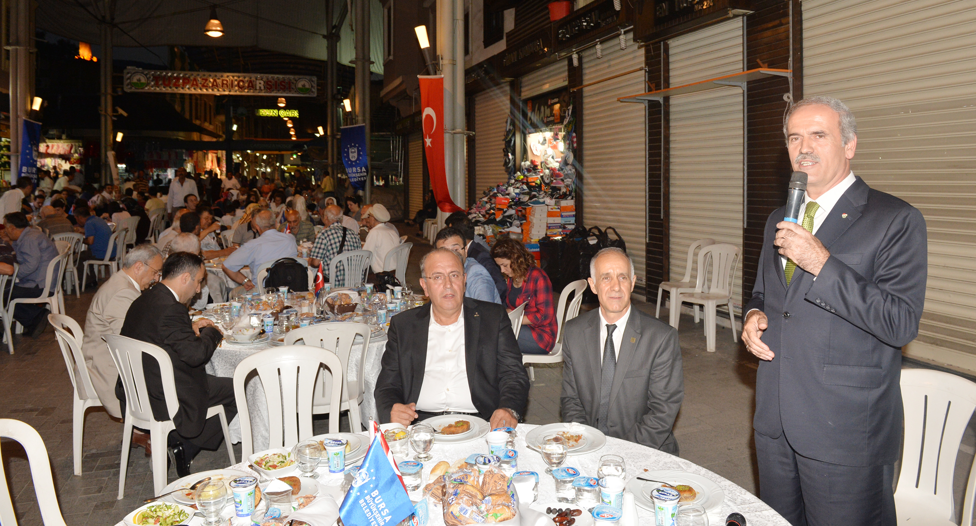 - Büyükşehir Belediyesi ve Bursa Tarihi Çarşı ve Hanlar Bölgesi Birliği tarafından Bursa Çarsısı’nda; Okçular, Uzun Çarşı, Tuz Pazarı, Kapalı Çarşı ve Bakırcılar Çarşısı’nın bulunduğu 750 metrelik hat boyunca düzenlenen iftara, 40 çarşının esnafı ve vatandaşlar olmak üzere yaklaşık 6 bin kişi katıldı.