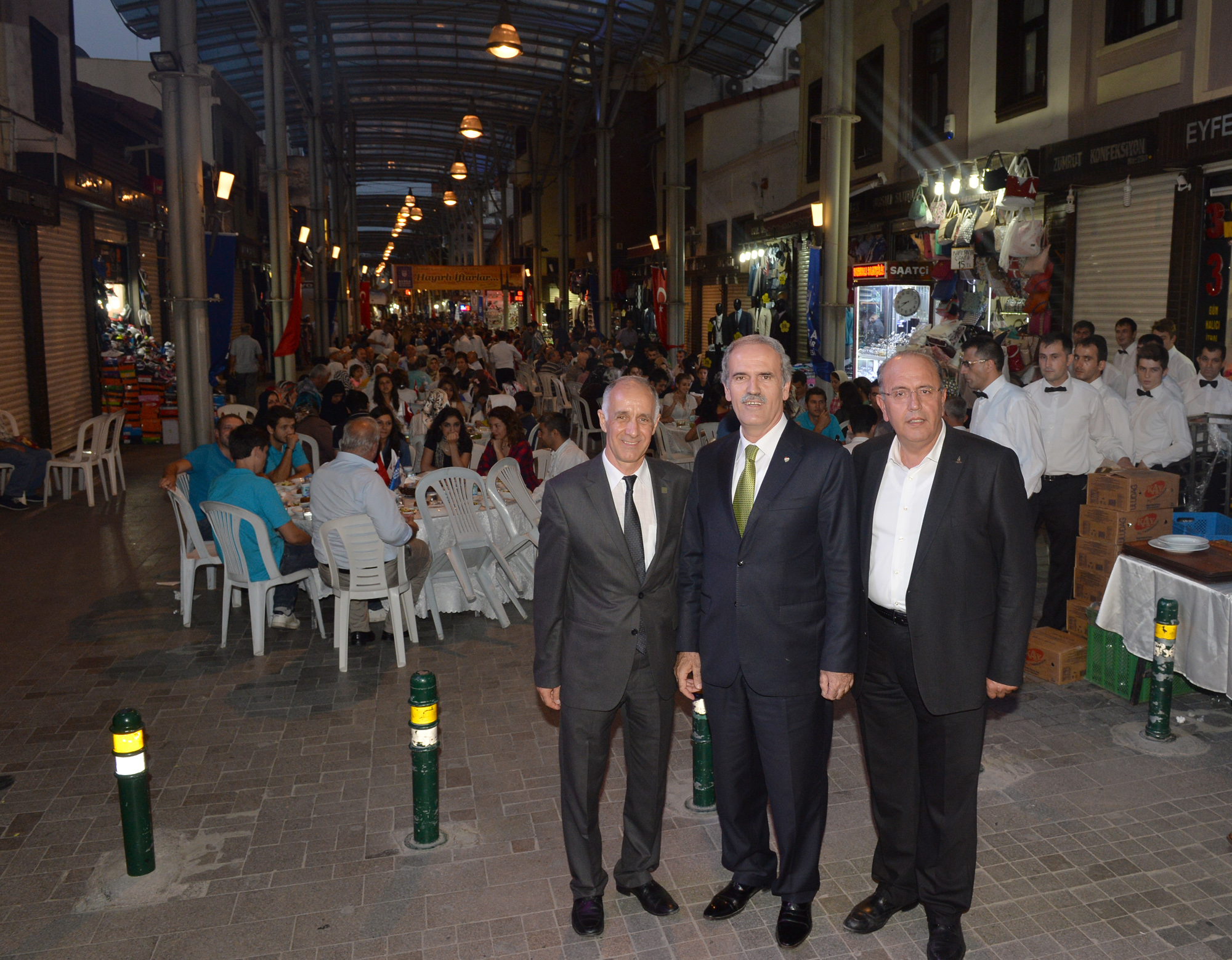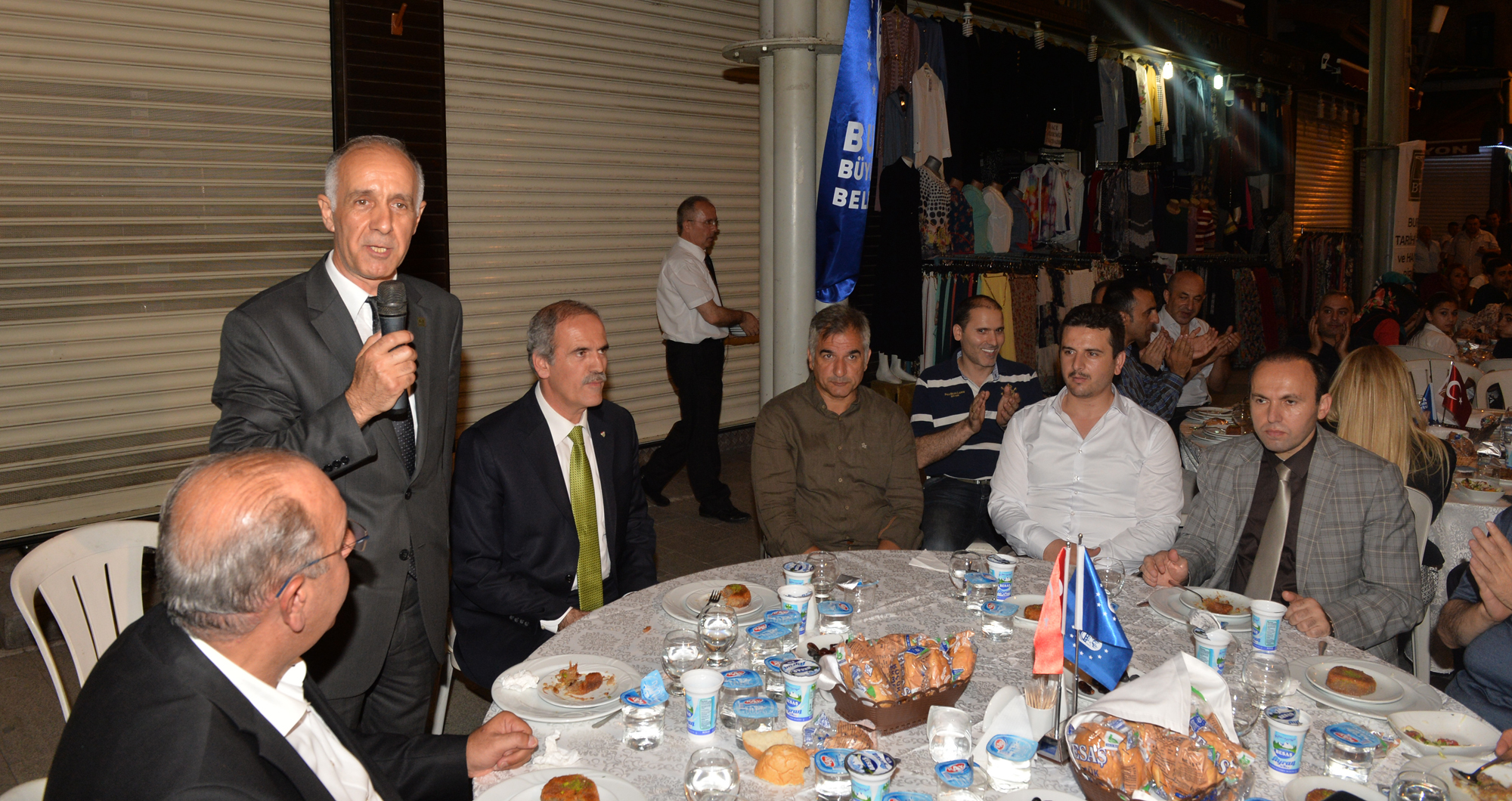 Bursa Çarşısı’nda gerçekleştirilen görkemli iftara AK Parti İl Başkanı Cemalettin Torun ile Büyükşehir Belediyesi bürokratları da katıldı. Başkan Altepe, iftarın ardından çarşıda gezerek çarşı esnafı ve vatandaşlarla sohbet etti.
