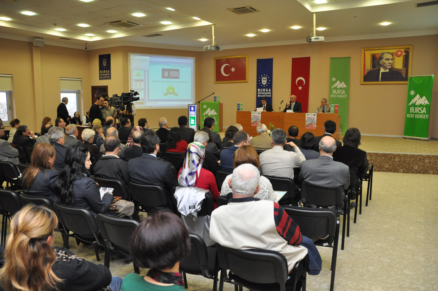 Büyükşehir Belediyesi’nin katkılarıyla Bursa Kent Konseyi tarafından gerçekleştirilen ‘Bursa Konuşuyor’ adlı toplantıda ‘‘Deprem ve Bursa’ konusu uzmanlar tarafından konuşuldu. Atatürk Kongre Kültür Merkezi (Merinos AKKM) Başkanlık Salonu’nda yapılan toplantıda, 4 saat boyunca deprem gerçeği ve Bursa’nın taşıdığı riskler akademisyenler ve meslek odalarının kuruluşları tarafından tartışıldı.