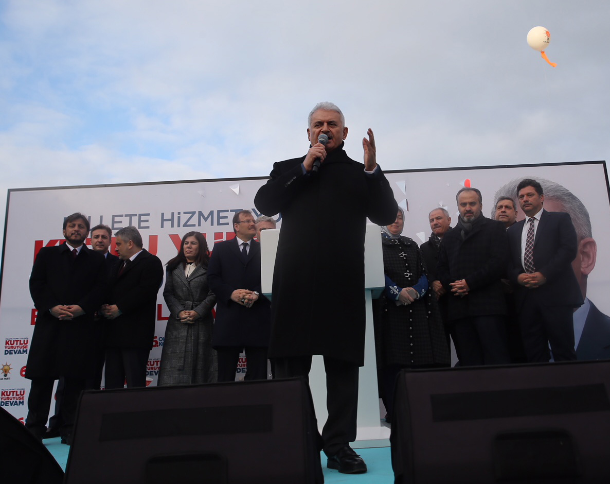 Bursa’nın üretime katkı koyan bir şehir olduğunu da hatırlatan Başbakan Yıldırım, “Uludağ gibi daima bereketli, çalışkan ve üreten insanların şehri Bursa’da bulunmak daima bizlere heyecan veriyor. Bursa, Emir Sultan’ı, Osman Gazi’yi ve Murad Hüdeverdigar’ı bağrından çıkaran bir şehirdir. Kutlu yolculuğa ilk çıktığımız günden beri, Bursalılar hep bizimle beraber oldu, yolumuzu açtı ve büyük Türkiye’ye evet dedi. Bursa 2019’da yeni bir destan yazmaya hazır” açıklamasını yaptı.