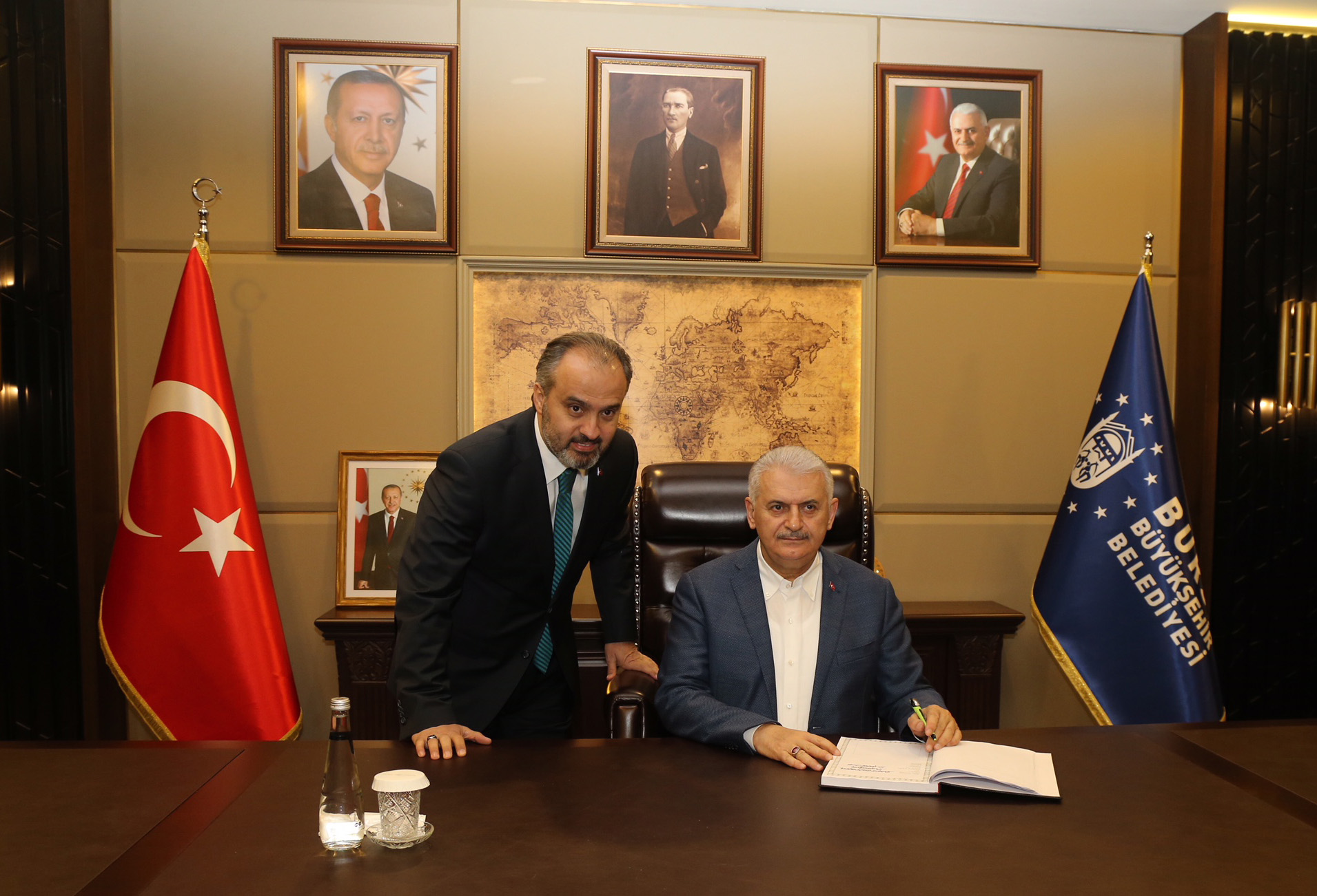 BURSA – Başbakan Binali Yıldırım, Bursa’da, Büyükşehir Belediye Başkanı Alinur Aktaş’ı, makamında ziyaret etti. Başkan Aktaş, Başbakan Yıldırım’ın gelişiyle Bursa’nın önemli ve tarihi günlerinden birini yaşadığını söyledi.