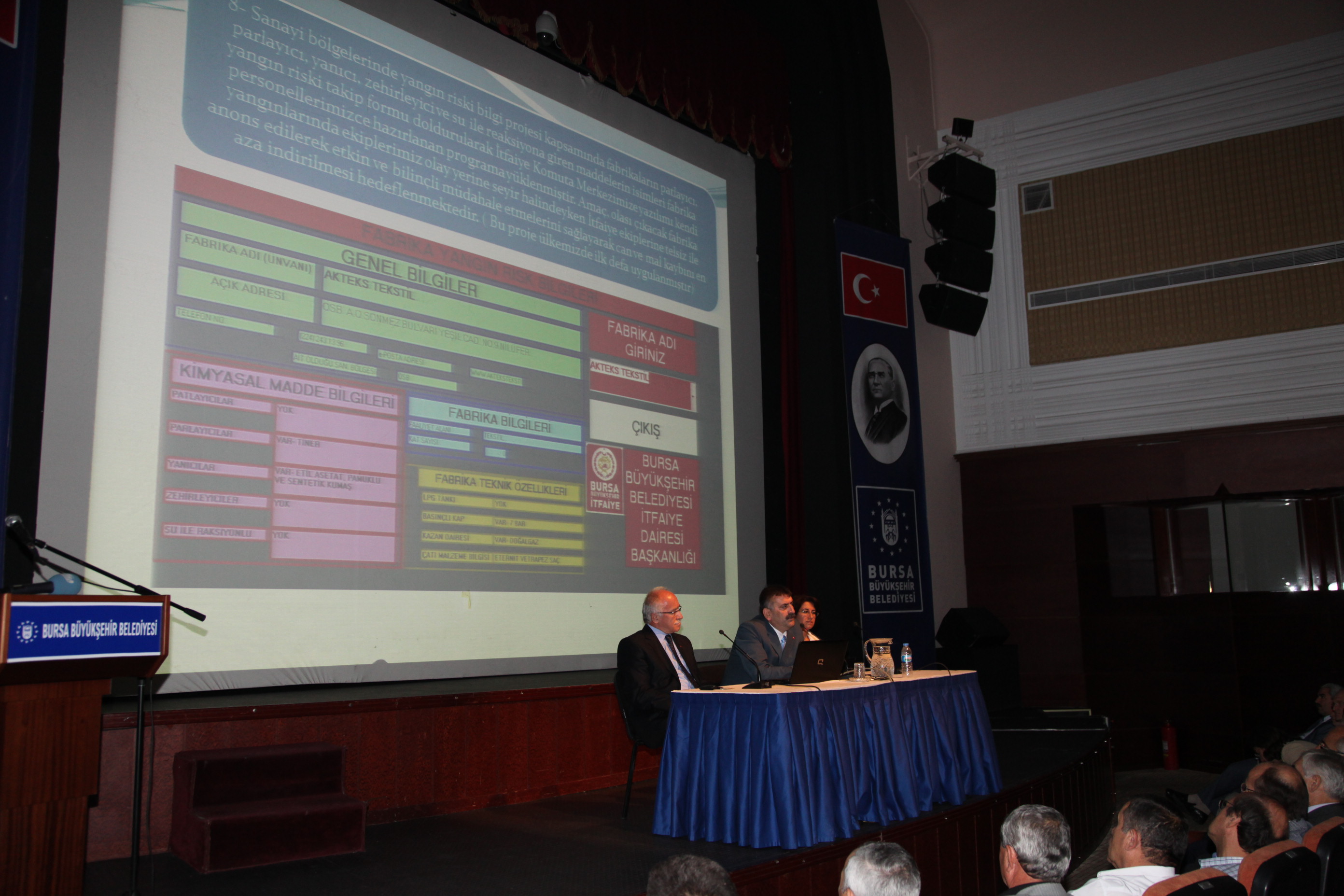 Konferans başlangıcında selamlama konuşması yapan Büyükşehir Belediyesi Başkanvekili Muhsin Özlükurt, İtfaiye Haftası nedeniyle düzenlenen etkinlikte ortaya konulan verilerin Bursa için hayırlar getirmesini diledi. Türkiye´nin deprem ve afetler bölgesinde yer aldığını vurgulayan Başkanvekili Özlükurt, "İtfaiye Daire Başkanlığımızın çabalarıyla oluşan konferansın hepimiz için yararlı olacağı inancını taşıyorum. Ayrıca herkesin İtfaiye Haftası´nı kutluyorum" dedi.