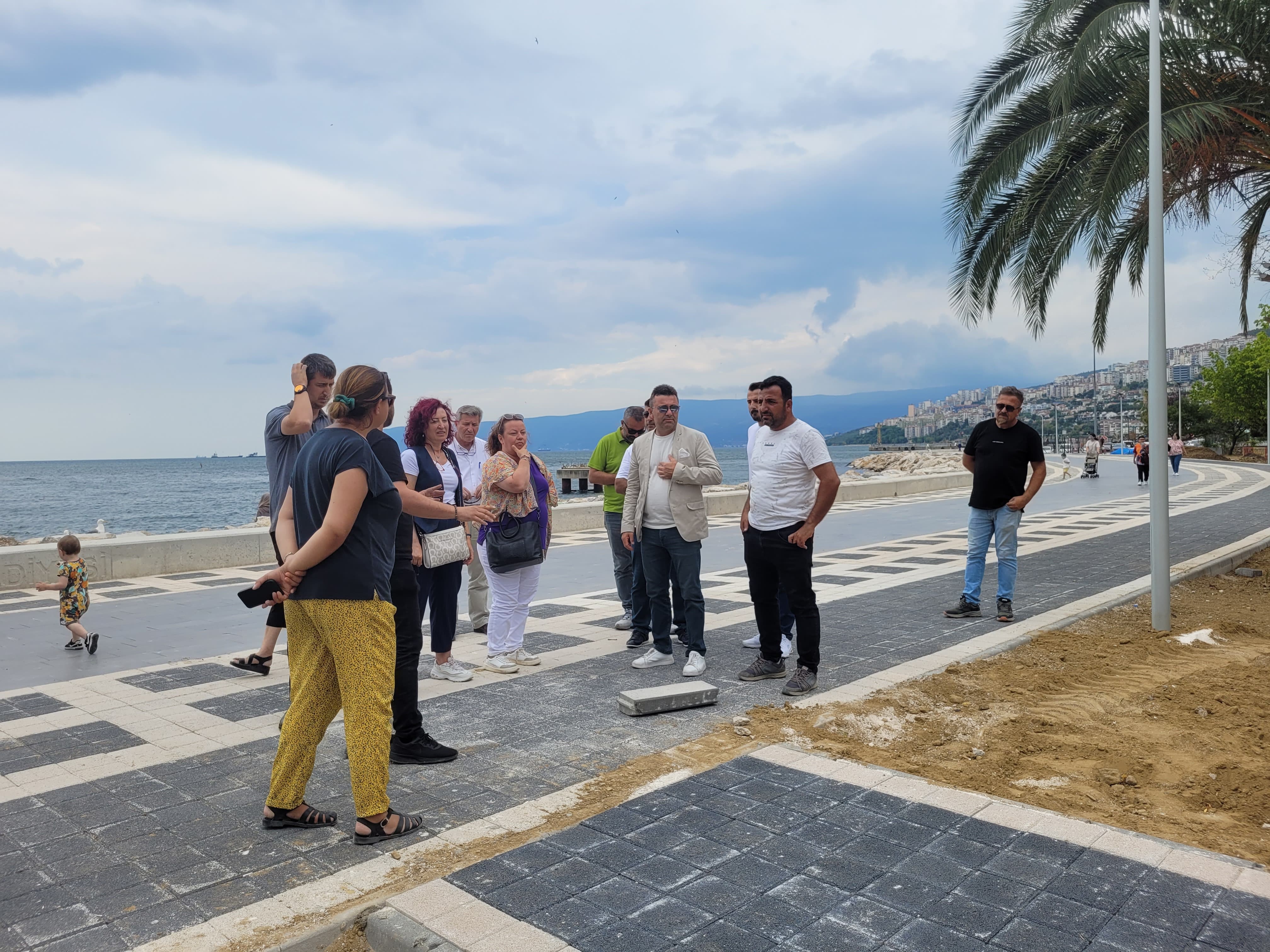 Sahil Planlama ve Yapım Şube Müdürlüğü ekipleri de sahillerin daha temiz ve kullanışlı hale getirilmesi için çalışmalarını sürdürüyor. Bu kapsamda Tirilye, Güzelyalı, Kurşunlu ve Gemlik sahillerindeki gelgitler ve şiddetli rüzgar sebebiyle dalgaların neden olduğu korozyondan dolayı oluşan çökmeleri ortadan kaldırmak amacıyla kütle beton çalışmaları tamamlandı. Bordür, parke taşı ve çevre düzenleme çalışmaları ise tüm hızıyla sürüyor. Park ve Bahçeler Daire Başkanı Hakan Tanrıöver, beraberindeki teknik ekiple beraber Gemlik’teki çalışmaları yerinde inceledi. Gemlik Belediye Başkan Yardımcısı Arzu Karataş’ın da yer aldığı ziyarette, vatandaşların talepleri de not alındı.