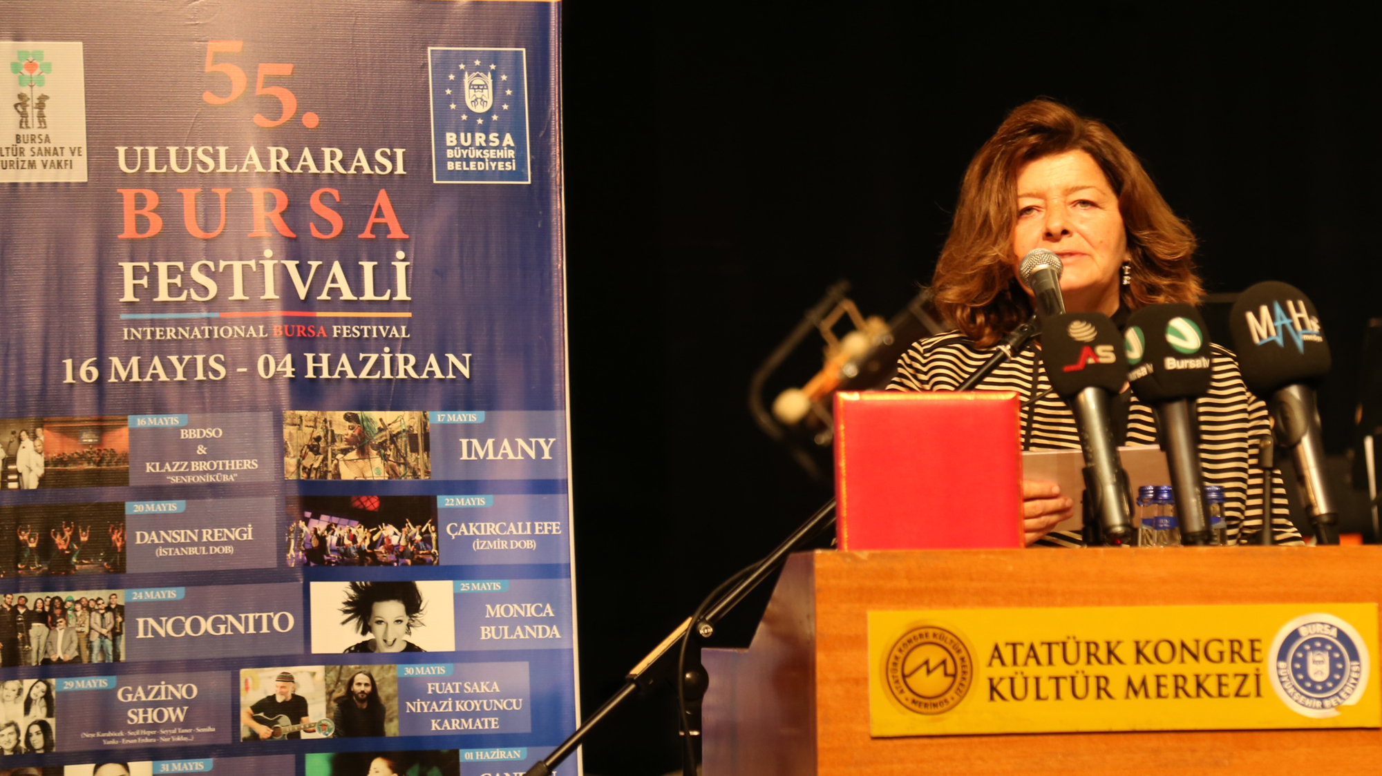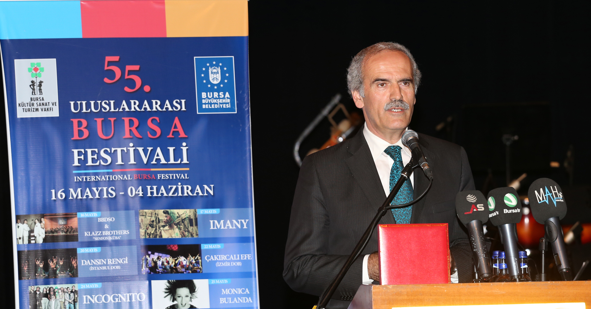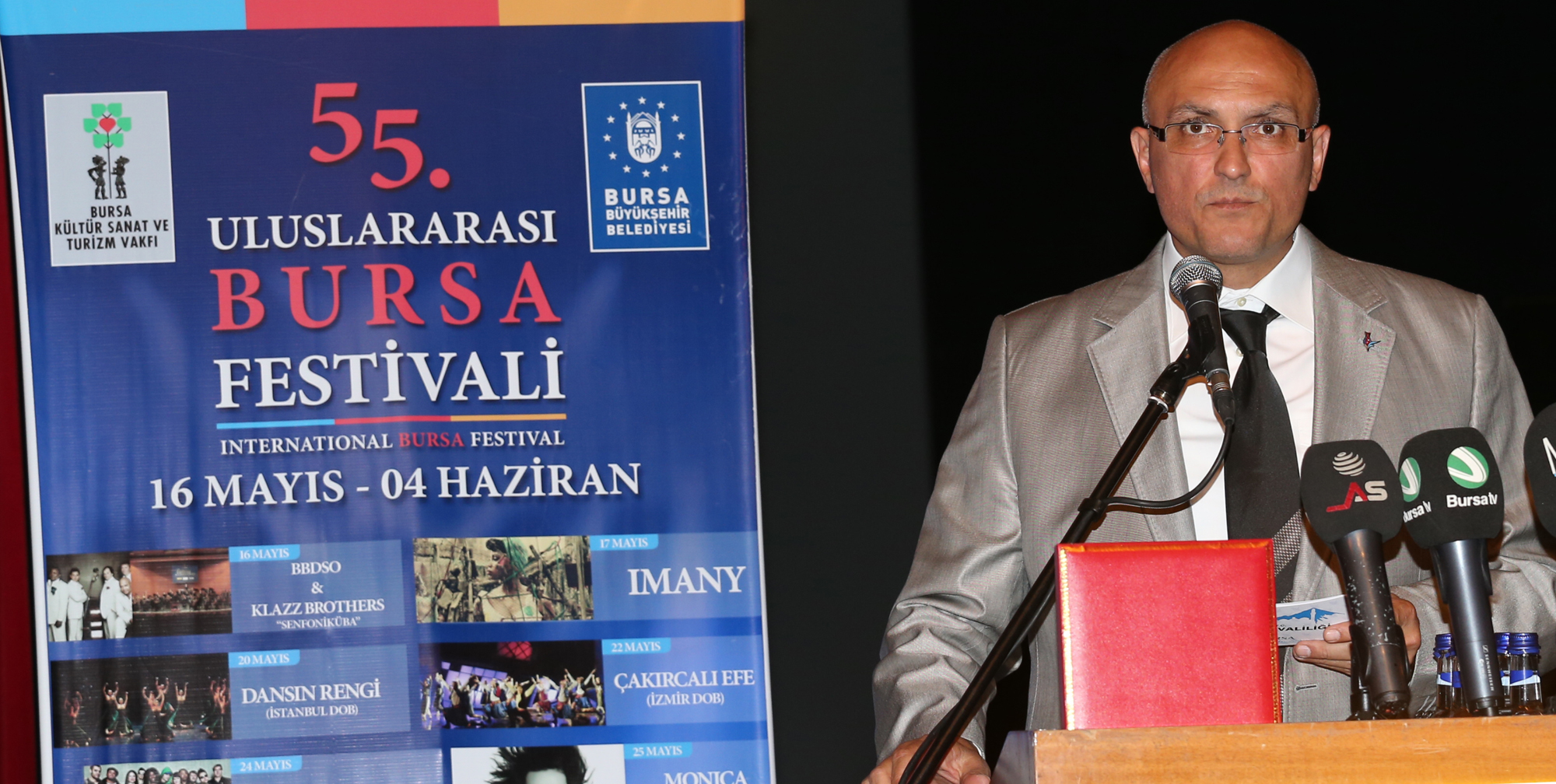 Bursa Vali Yardımcısı Yunus Fatih Kadiroğlu da konuşmasında, Bursa’nın kültürel yaşamının kalkınmasında önemli rol üstlenen festivale emek veren Büyükşehir Belediyesi ve BKSTV çalışanlarını tebrik etti. Bursa Kültür Sanat ve Turizm Vakfı (BKSTV) Yönetim Kurulu Başkanı Fatma Durmaz Yılbirlik ise dünyaca ünlü sanatçıları ve farklı kültürleri Bursalılarla buluşturmak amacıyla festivalin 55. yılında yine sanatla dolu güzel bir program düzenleneceğini söyledi. Yılbirlik, festivali her zaman destekleyen Büyükşehir Belediye Başkanı Recep Altepe’ye ve Bursalılara teşekkür etti.