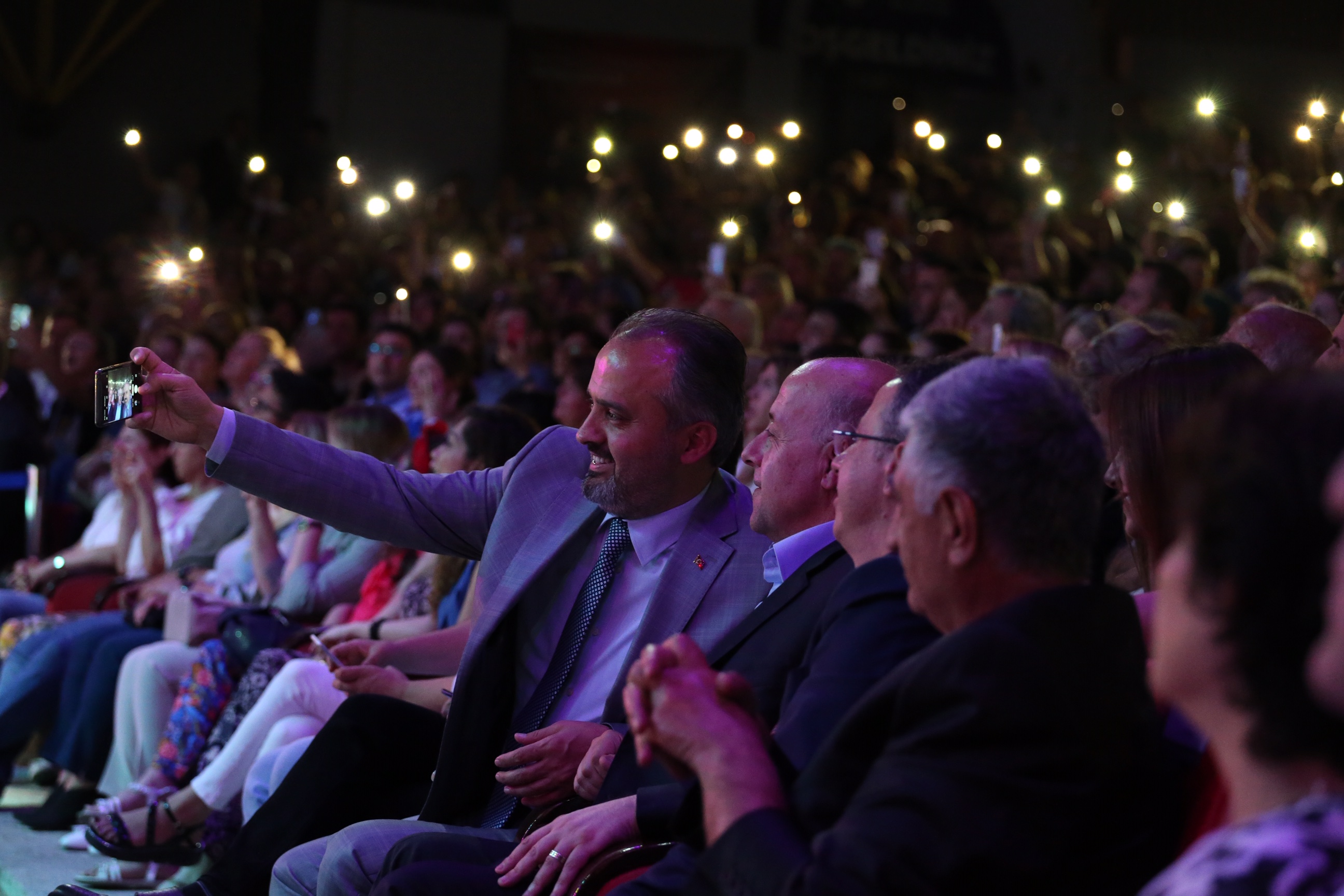 BURSA – Bursa Büyükşehir Belediye Başkanı Alinur Aktaş, ‘58. Uluslararası Bursa Festivali’nde yıldızları buluşturan efsane konserde Gökhan Tepe ve Muazzez Abacı’yı ilgiyle izledi, şarkılara da alkışlarıyla eşlik etti.