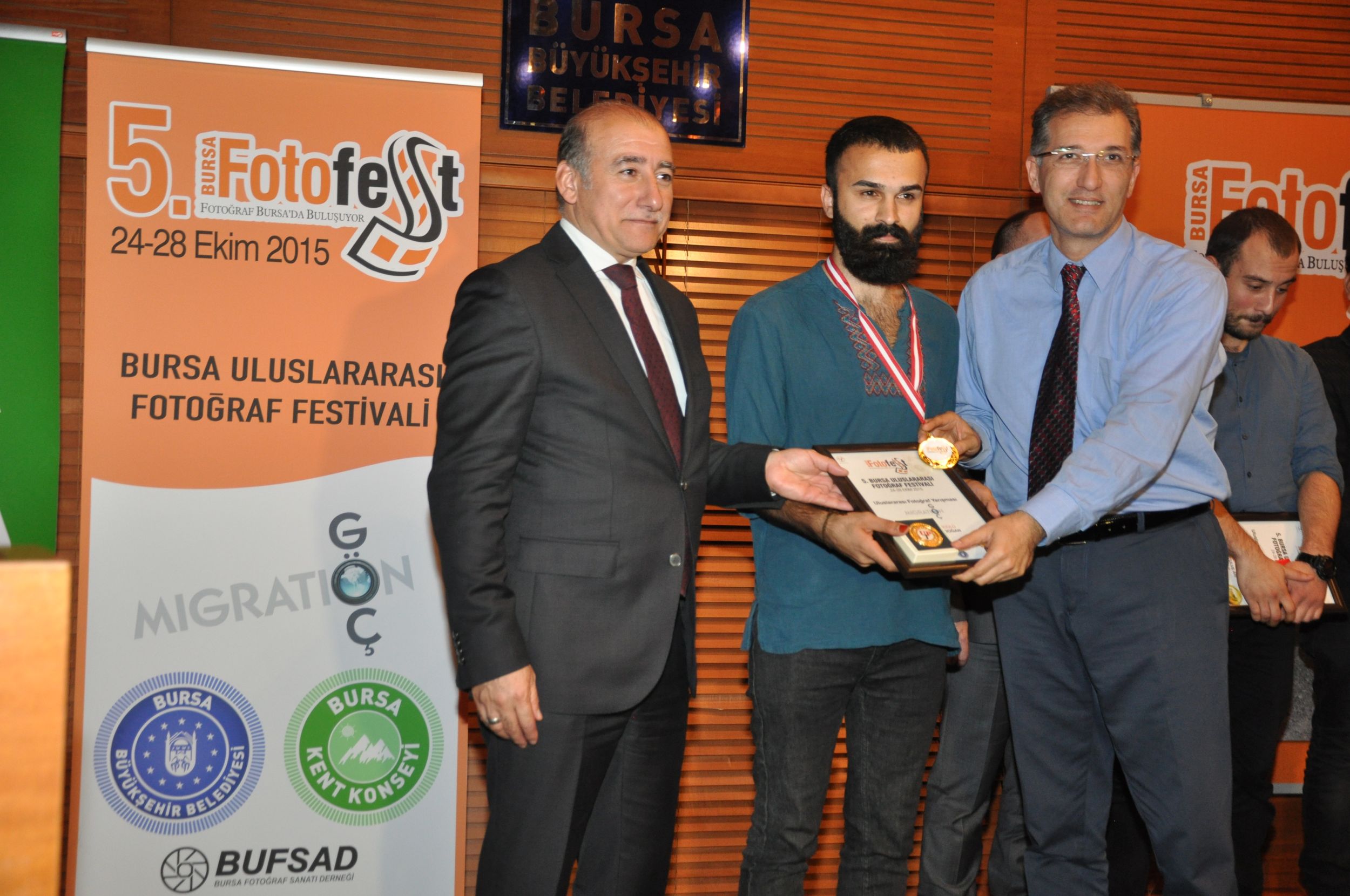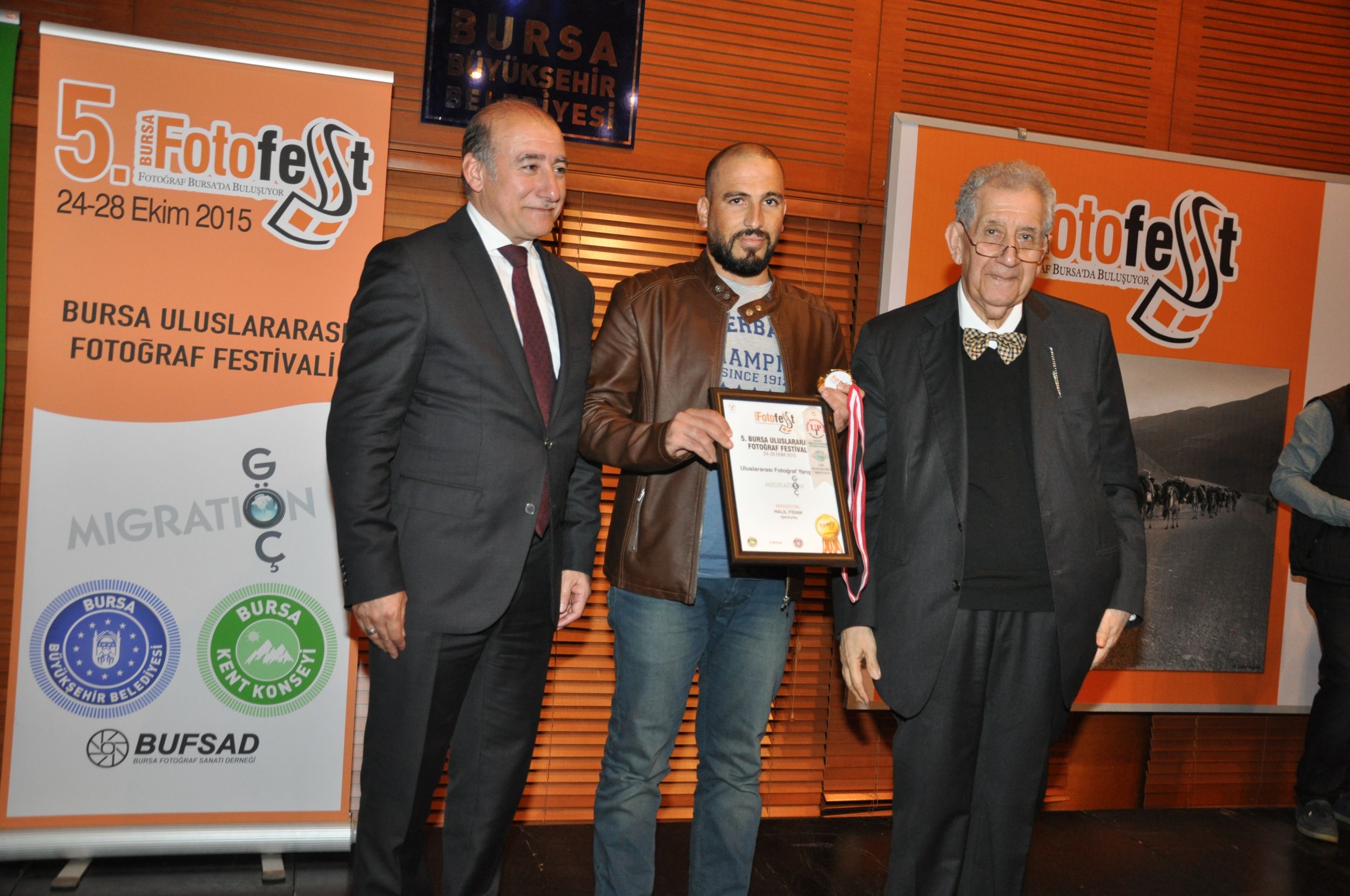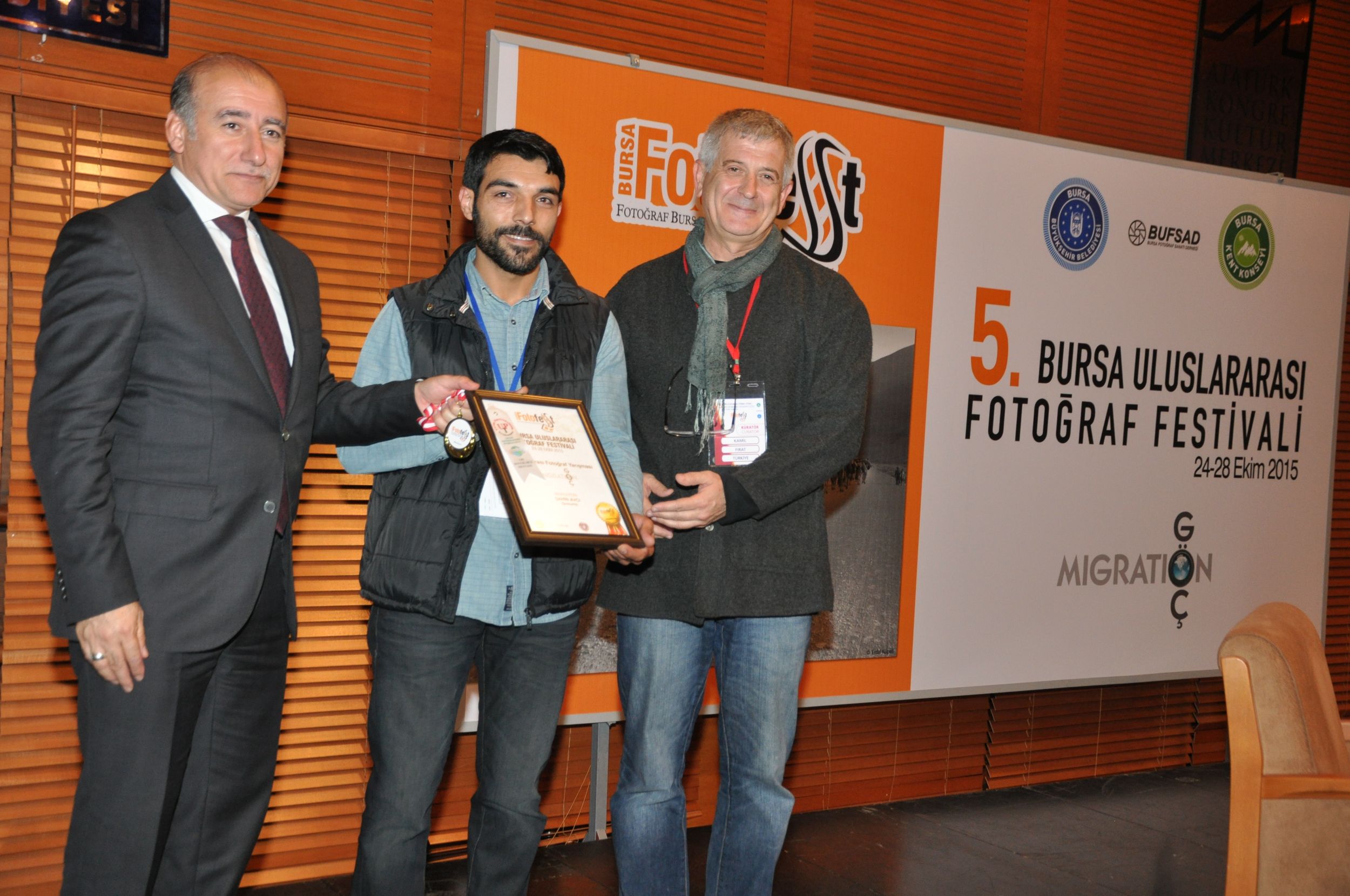 Bursa Büyükşehir Belediyesi, Bursa Kent Konseyi (BKK) ve Bursa Fotoğraf Sanatı Derneği (BUFSAD) işbirliğiyle ‘Göç’ temasıyla düzenlenen ‘5. Uluslararası Bursa Fotoğraf Festivali’, Atatürk Kongre Kültür Merkezi’nde (Merinos AKKM) başladı. Festival kapsamında yapılan ‘Göç’ temalı uluslararası fotoğraf yarışmasında dereceye giren eser sahipleri, törenle ödüllendirildi. 27 ülkeden 399 fotoğrafçının 1406 eserle başvurduğu yarışmada 19 eser dereceye girdi, 39 fotoğraf ise sergilenmeye değer görüldü. Birincilik, ikincilik, üçüncülük ve mansiyon ödülleri, dünyaca ünlü Türk Fotoğraf Sanatçısı Ara Güler, Büyükşehir Belediye Başkanvekili Abdülkadir Karlık, BKK Başkanı Hasan Çepni, Festival Küratörü Kamil Fırat, Bufsad Başkanı İlhan Özer, Bursa Milletvekili Ceyhun İrgil, Köşe Yazarı Doğan Hızlan tarafından sahiplerine verildi. Yarışmada, Bursa’dan başvuran Çağdaş Erdoğan ‘Yeni Yaşam’ adlı eseri ile birinci oldu. İstanbul’dan katılan Kurtuluş Arı ‘Ezidi Göçü’ isimli fotoğrafı ile ikinci, yine İstanbul’dan katılan Emin Özmen ise ‘Araf’ isimli fotoğrafı ile üçüncü oldu. Birincinin 4 bin dolar, ikincinin 3 bin dolar, üçüncünün 2 bin dolar, mansiyon ödülü ise 500 dolar olduğu yarışmada, toplam 12 bin dolar ödül dağıtıldı.