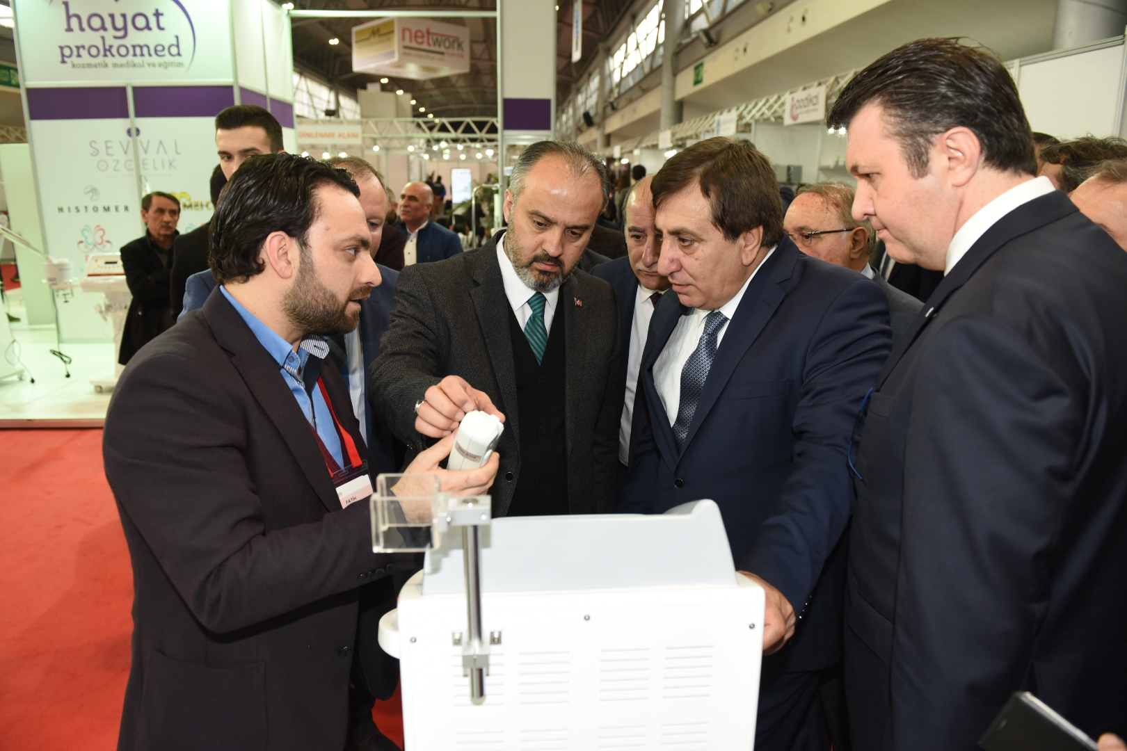 Bursa Valisi İzzettin Küçük ve Büyükşehir Belediye Başkanı Alinur Aktaş ile BTSO Başkan Yardımcısı Cüneyt Şener, BESOB Başkanı Arif Tak, BTB Başkan Yardımcısı İbrahim Özhan, Merinos AKKM Genel Koordinatörü Hasan Çepni, Türkiye Berberler ve Kuaförler Federasyonu Genel Başkanı Bayram Karakaş, Bursa Berberler Odası Başkanı Mustafa Ocak, Bursa Kuaförler Odası Başkanı İlker Hüseyin Tan ve sektör temsilcileri, doktorlar, fuara katılan firmaların temsilcileri ve akademisyenler de açılışa katıldı.