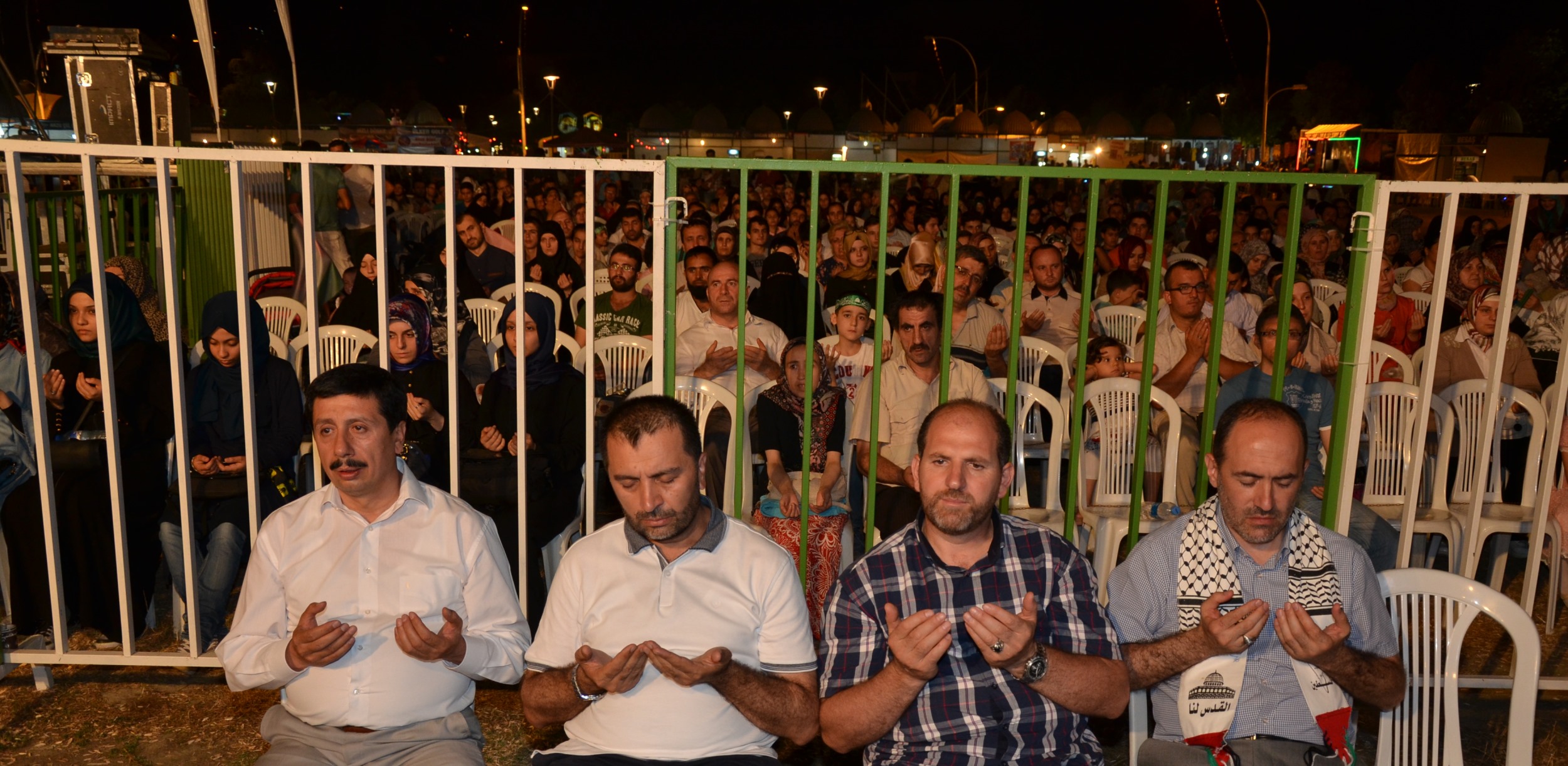 Temaşa-i Ramazan programı kapsamında gerçekleştirilen ‘Filistin Dayanışma Gecesi, Bursalıları Merinos Parkı’nda bir araya getirdi. Kardeşlik, dostluk ve barış mesajlarının iletildiği gecede Gazze’de hayatını kaybedenler için dualar okundu. Ramazan ayında yaşanan acının bir an önce sona ermesini isteyen Bursalılar, geceye katılan İnsan Hak ve Hürriyetleri (İHH) İnsani Yardım Vakfı Genel Başkan Yardımcısı Hüseyin Oruç’un konuşmasını da ilgiyle dinledi.