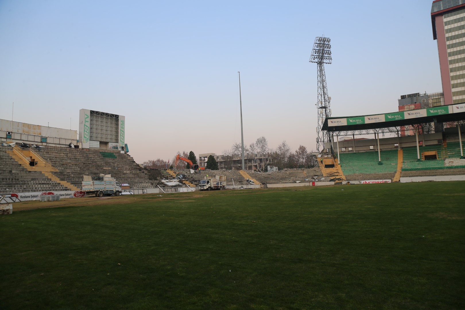 Bursa Büyükşehir Belediyesi tarafından yapılan, 400 bin metrekare proje alanı ve 190 bin metrekarelik inşaat alanıyla Bursa’nın en büyük anıtsal yapılarından biri olan yeni stadyumun geçtiğimiz yıl Cumhurbaşkanı Recep Tayyip Erdoğan tarafından hizmete açılmasının ardından, eski stadyumun bulunduğu alana yapılacak meydan projesinde yıkımlar başladı. Yapımı için 1926 yılında Atatürk’ün bizzat kendisinin 1000 lira bağışta bulunması, 1948 yılında buyana hem resmi törenlere ev sahipliği yapması hem de Bursaspor’un şampiyonluk başta olmak üzere elde ettiği birçok başarıya ev sahipliği yapması nedeniyle Bursa tarihinde aynı bir önemi bulunan stadyum doğal dokusu korunarak ile meydan projesinde yaşatılacak.