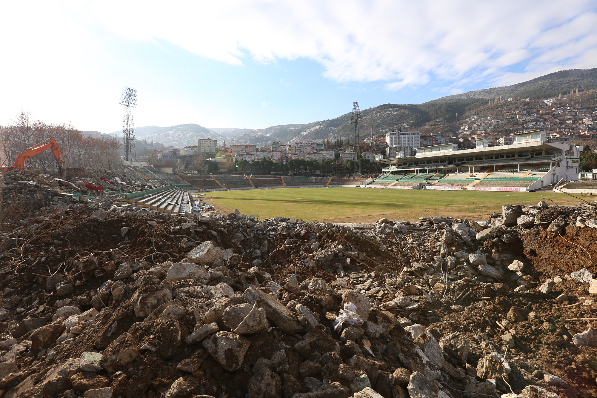 Bursa Büyükşehir Belediyesi tarafından yapılan, 400 bin metrekare proje alanı ve 190 bin metrekarelik inşaat alanıyla Bursa’nın en büyük anıtsal yapılarından biri olan yeni stadyumun Cumhurbaşkanı Recep Tayyip Erdoğan tarafından hizmete açılmasının ardından, eski stadyumun bulunduğu alana yapılacak meydan projesinde yıkımlar hızla sürüyor. Yapımı için 1926 yılında Atatürk’ün bizzat kendisinin 1000 lira bağışta bulunması, 1948 yılında buyana hem resmi törenlere ev sahipliği yapması hem de Bursaspor’un şampiyonluk başta olmak üzere elde ettiği birçok başarıya ev sahipliği yapması nedeniyle Bursa tarihinde aynı bir önemi bulunan stadyum, doğal dokusu korunarak meydan projesinde yaşatılacak.