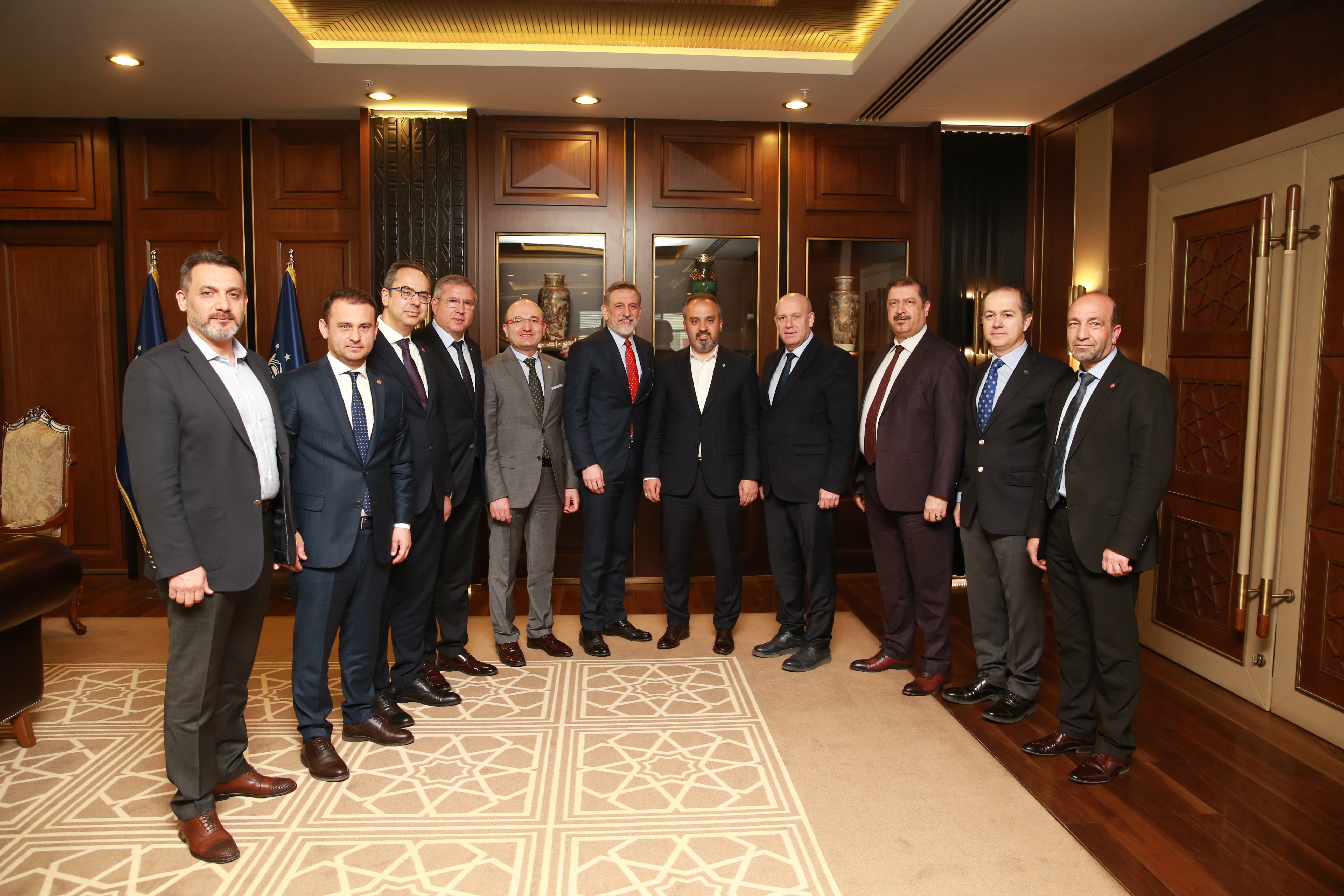 Bursa Büyükşehir Belediye Başkanı Alinur Aktaş, Bursa Ticaret ve Sanayi Odası (BTSO) Başkanı İbrahim Burkay ve Bursaspor Kulübü Başkanı Ali Ay ile yönetim kurulları üyeleriyle Büyükşehir Belediyesi’ndeki makamında bir araya geldi.