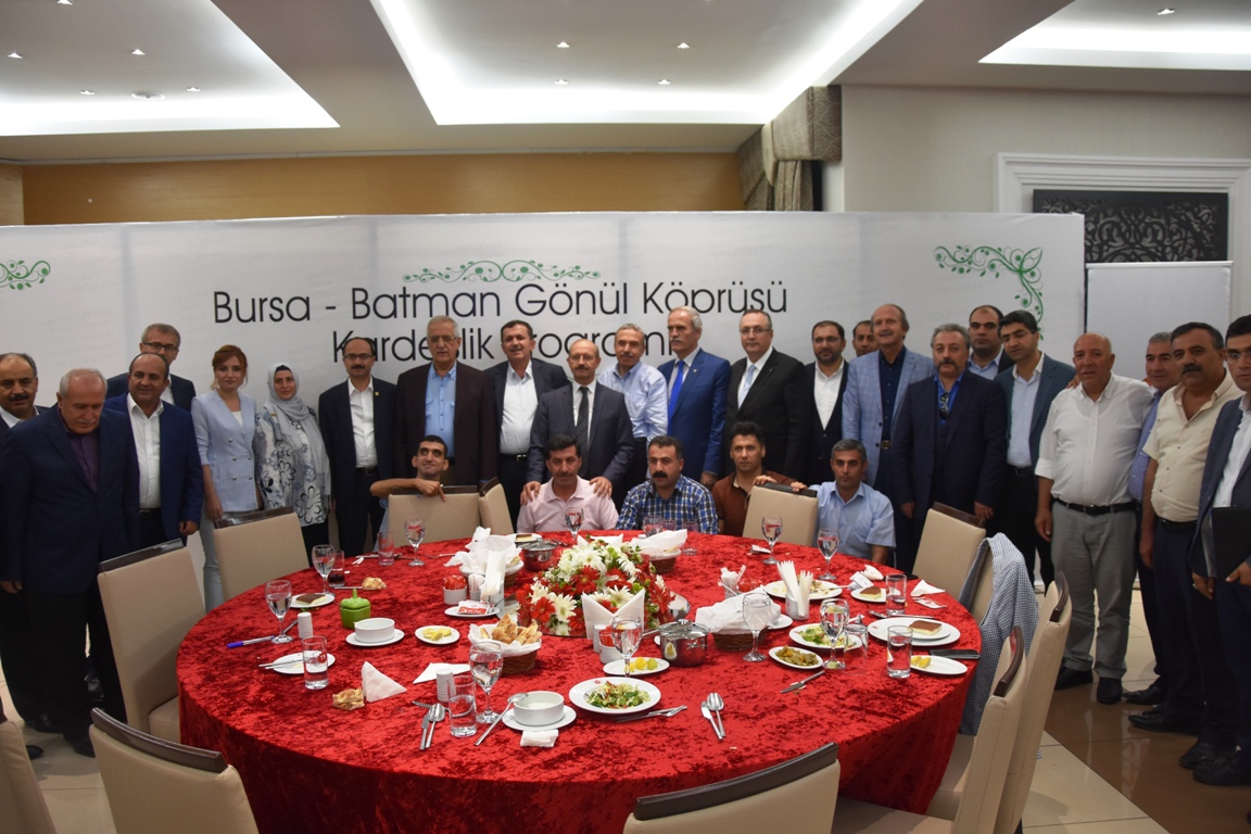 AK Parti Genel Merkez Sivil Toplum ve Halkla İlişkiler Başkanlığı’nca doğu – batı illeri arasındaki kardeşliğin güçlendirilmesi amacıyla başlatılan ‘Gönül Köprüsü Projesi’ kapsamında Bursa’dan kalabalık bir heyet Batman’da ziyaretlerde bulundu. Programa katılan Gümrük ve Ticaret Bakanı Bülent Tüfekçi ve AK Parti Genel Merkez Seçim İşleri Başkanı Ahmet Sorgun ile Bursa Büyükşehir Belediye Başkanı Recep Altepe, milletvekilleri Muhammed Müfit Aydın ve Osman Mesten, AK Parti Bursa İl Sivil Toplum ve Halkla İlişkiler Başkanı Alpaslan Yıldız, il yöneticileri ve Bursa’da hizmet veren bazı işadamları, sivil toplum ve kültür sanat kuruluşlarının temsilcilerinden oluşan heyet, AK Parti Batman İl Başkanı Diyaettin Uçar ve ekibi tarafından karşılandı. Şehir merkezinde esnaf ziyaretleri ile başlatılan programda Batman halkının taleplerini ve şehrin durumunu dinledi. Toplantının ardından Batman Teşkilatı tarafından kardeşlik köprüsünün perçinlenmesi adına düzenlenen ve her iki il temsilcilerini bir araya getiren akşam yemeğine geçildi.