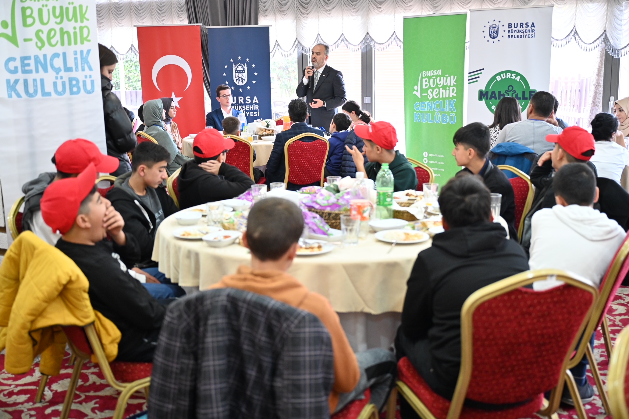 Altyapıdan ulaşıma, çevreden spora kadar her alanda Bursa’yı geleceğe taşıyacak projeleri hayata geçiren Büyükşehir Belediyesi, sosyal belediyecilik alanında örnek projelere imza atmaya devam ediyor. Yetim ve öksüz çocukların gönüllerini alarak hayallerini gerçekleştirmek amacıyla başlatılan ‘Şehirden Şehire Gönül Köprüsü’ projesi kapsamında Samsun, Muş, Batman ve Ağrı’dan gelen çocukları Bursa’da ağırlayan Büyükşehir Belediyesi, son olarak Bingöl’den gelen yetim, öksüz, şehit ve gazi çocuklarını şehirde ağırlıyor. Bingöl Belediyesi işbirliğiyle Bursa’ya gelen 120’ye yakın orta öğretim ve lise öğrencisi, şehrin tarihi, turistik ve doğal güzelliklerini yakından görme fırsatını buldu. Bursa Büyükşehir Belediye Başkanı Alinur Aktaş da Merinos Gölpark’ta gençlerle bir araya gelerek sohbet etti. Bingöl Genç Kaymakamı Yusuf Kaptanoğlu ve Büyükşehir Belediyesi Genel Sekreteri Ulaş Akhan’ın da yer aldığı buluşmada Başkan Alinur Aktaş, gençlerle Bursa ve Türkiye üzerine muhabbet etti.
