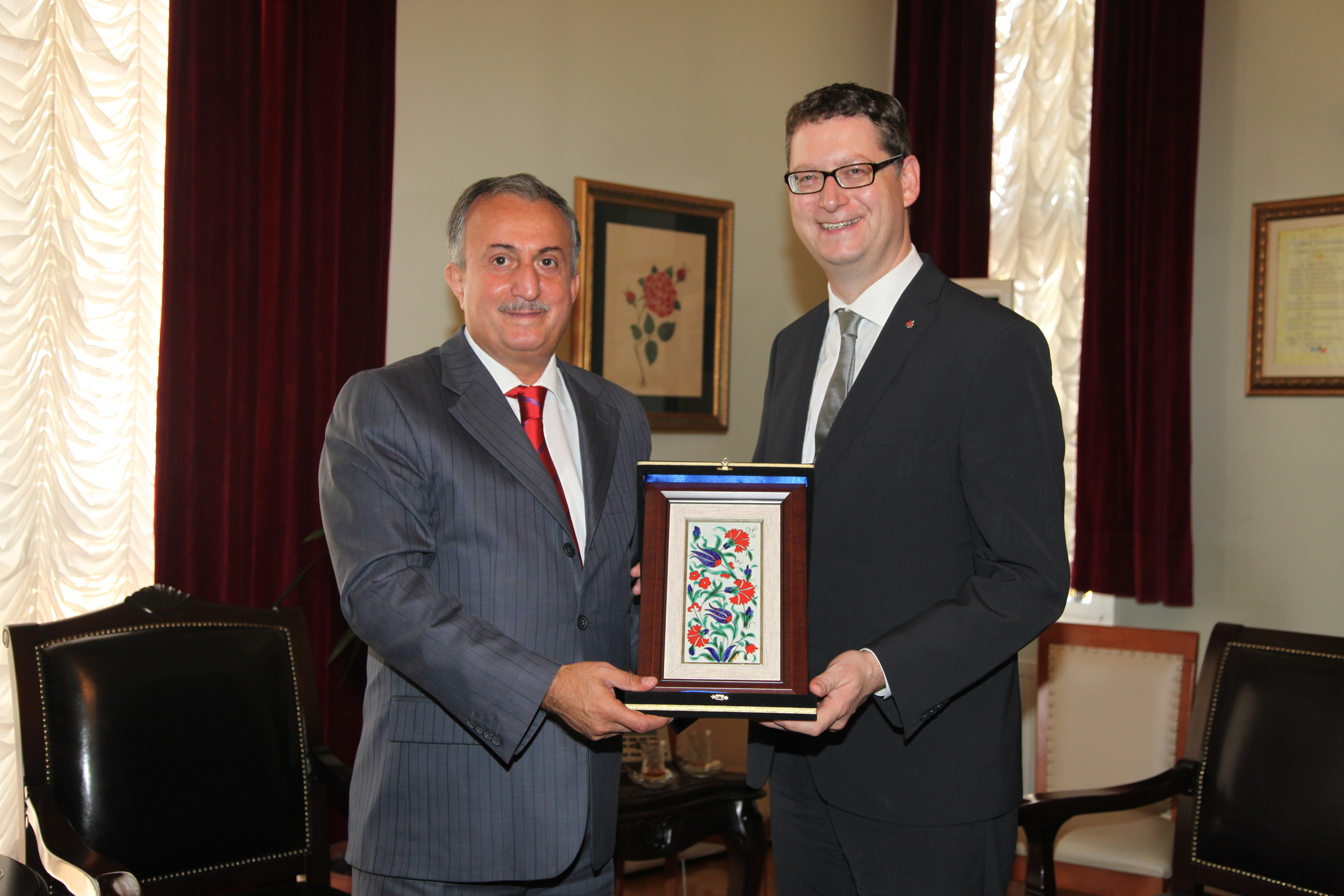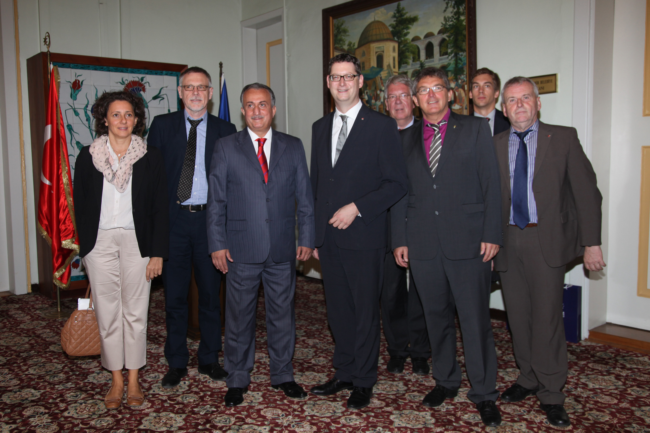 Avrupa Politikası Sorumlusu Dr Michael Reuter, Avrupa Komisyonu Üyesi Dieter Franz, Uyum Politikaları Sorumlusu Gerhard Merz, Uyum Komisyonu Üyesi Ernst Ewald Roth, SPD Hessen Eyaleti Avrupa Politikası Uzmanı Christian Lips, Friedrich Ebert Vakfı Türkiye Temsilcisi Alexander Geiger ve Bursa Almanya Fahri Konsolosu Sabine Sibel Cura Ölçüoğlu da ziyarette hazır bulundu. Ziyaretin sonunda Schaefer, Başkanvekili Karadağ’a kravat; Karadağ da konuklarına çini, Bursa kitabı ve Bursaspor kravatı hediye etti.