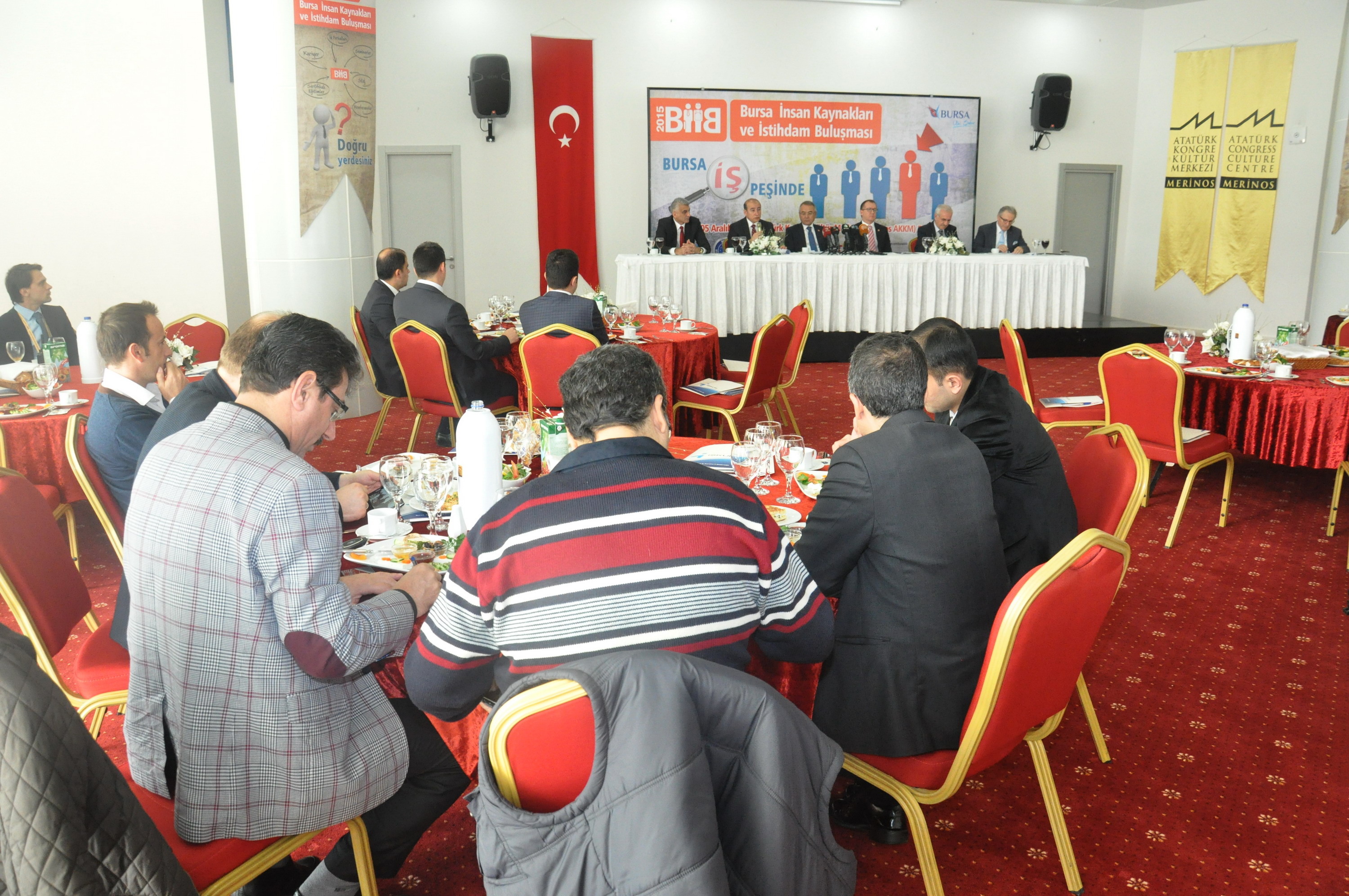İş-Kur Bursa İl Müdürü Kasım Tilki, istihdamın korunması, artırılması ve yaygınlaştırılmasına yönelik çalışmalar yaptıklarını ifade etti. BİİB’in amacını, sanal ortamda buluşan iş arayanlar ile iş verenleri fiziki ortamda buluşturmak, iş arayanları aynı ortamda birden fazla işverenle görüştürmek, iş vereninin de iş arayanlarla kısa sürede bir araya gelebilmesini sağlamak olarak anlatan Tilki, “Buluşmalarının yapıldığı ilk seneden itibaren bu zamana kadar insan kaynaklarının aradıkları insanlarla üç gün içerisinde görüşerek temin edebildikleri görüldü. Buluşmalarda her sene 500 ile 1000 arasında insan iş bulabilmektedir. 30 binin üzerinde öz geçmiş hazırlanıp sunulabilmektedir. Her sektörden firmayı almaya gayret ettik. Müracaat edip buluşmaya katamadığımız firmalar da oldu. Buluşmanın düzenlenmesinde emeği geçen Büyükşehir Belediyesi’ne, Valiliğe, BKK’ye ve BTSO’ya teşekkür ediyorum” dedi.