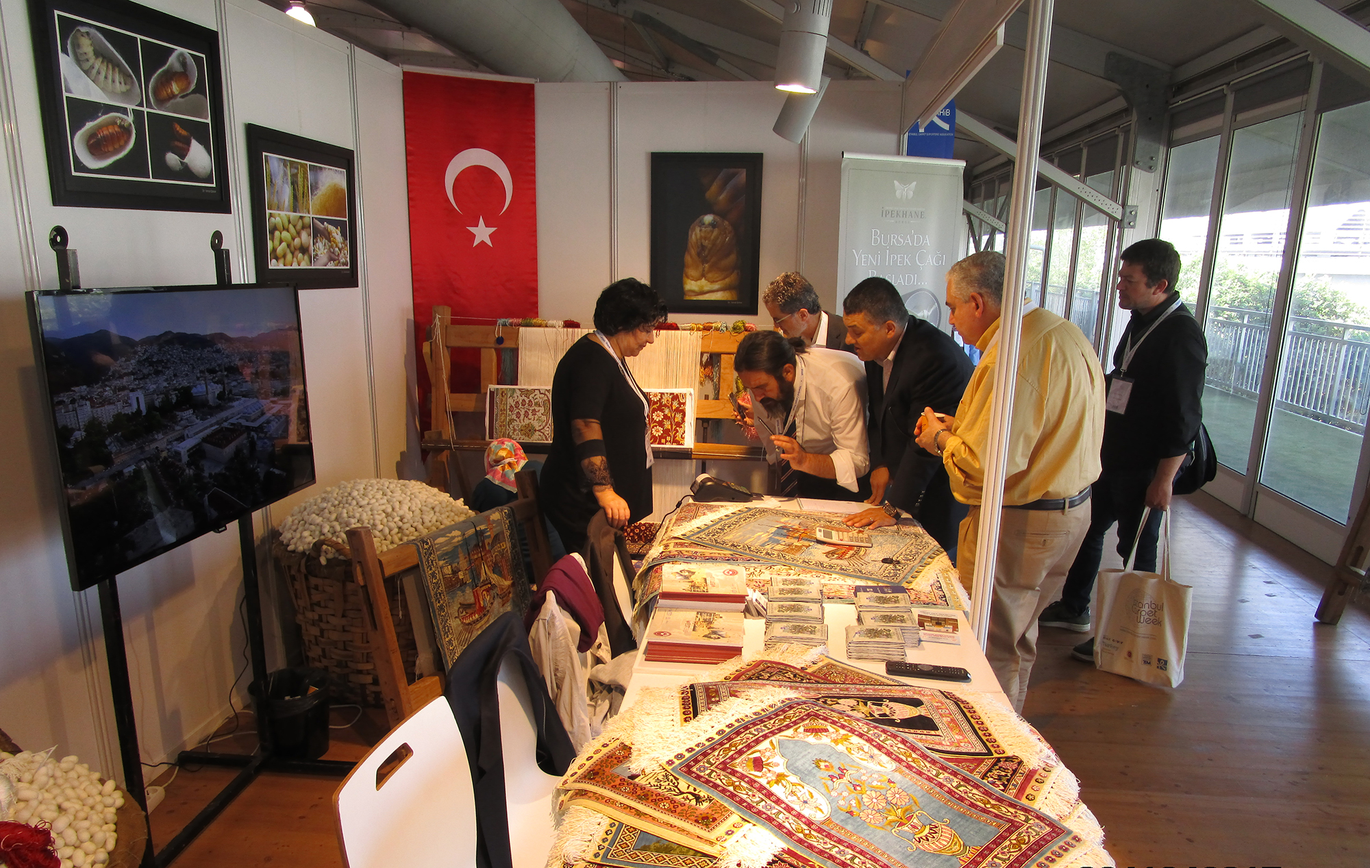 İstanbul Halı İhracatçıları Birliği tarafından düzenlenen İstanbul Halı Haftası’nda yerini alan Umurbey İpek Üretim ve Tasarım Merkezi, fuara gelen ziyaretçilere proje kapsamında yapılan çalışmalar hakkında bilgi verirken, ürün teşhiri konusunda da tepme mancınık ile ipek çekimi, devdah ile ipek bükümü ve ipek halı dokuma hakkında canlı anlatımlar yaptı.