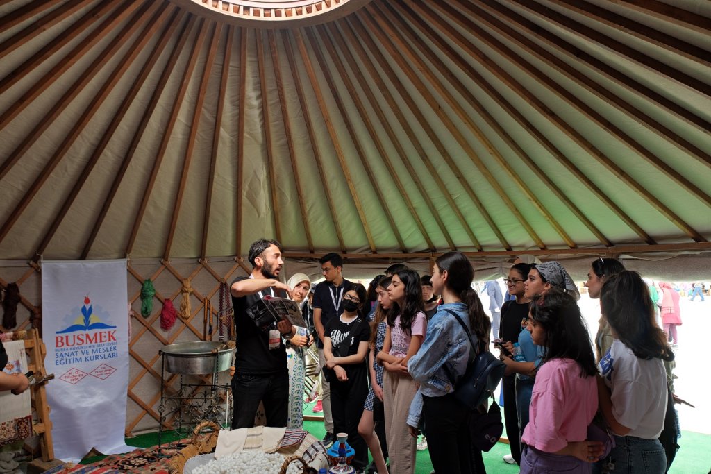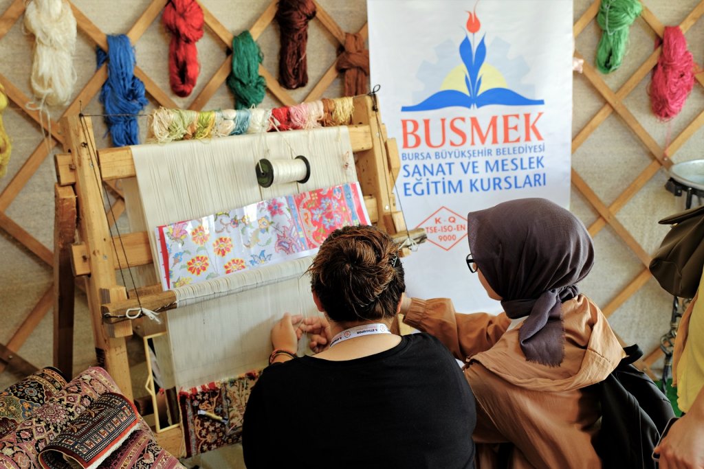 Bursa Büyükşehir Belediyesi de festivalde BUSMEK olarak yer aldı ve ziyaretçilere Bursa’nın coğrafi işaretli değerlerinden Bursa İpeği ve İznik Çinisini tanıttı. Festivale gelen ziyaretçiler, ipekböceği kozalarından tepme mancınık ile ip çekimini ve ipek halı dokuma, ipek kumaş dokuma tezgâhlarındaki canlı performansları yakından izleme fırsatı buldular. Ayrıca çini sanatını yakından inceleyip yapım aşamalarında kullanılan malzemeler hakkında bilgi edindiler.